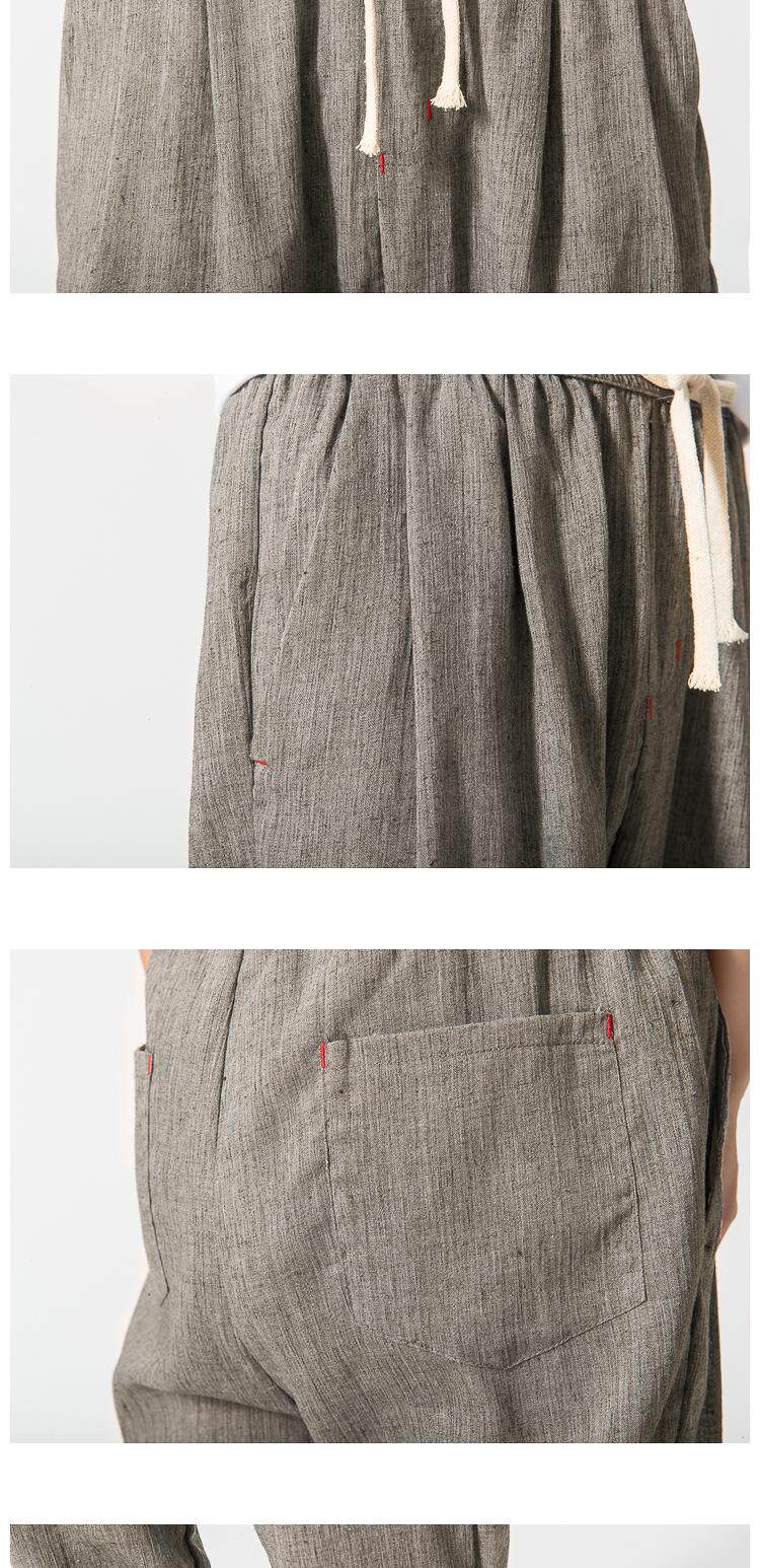 Китайские штаны, фонарь, китайский стиль, свободный крой, из хлопка и льна, большой размер