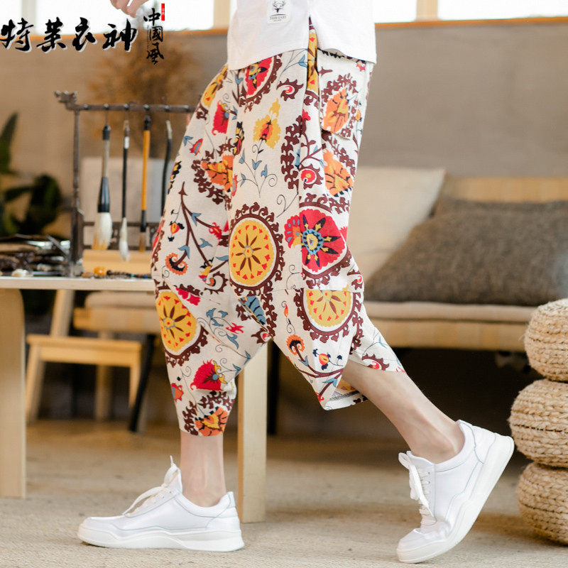 Летние шорты для отдыха, пляжные штаны, оверсайз, китайский стиль, большой размер, из хлопка и льна
