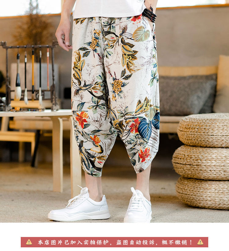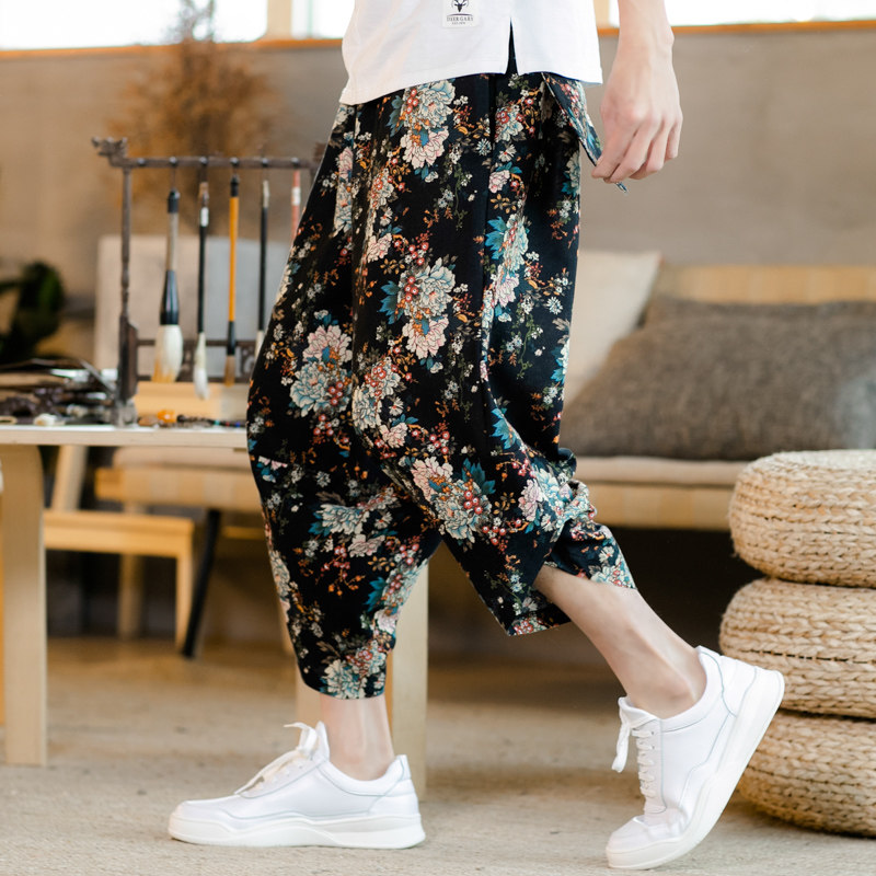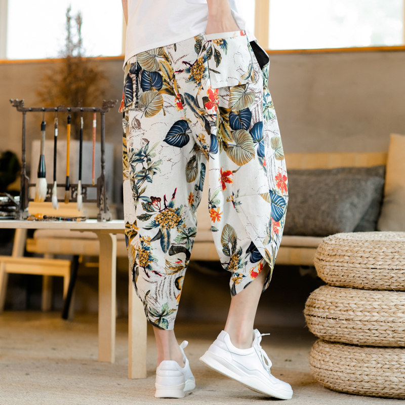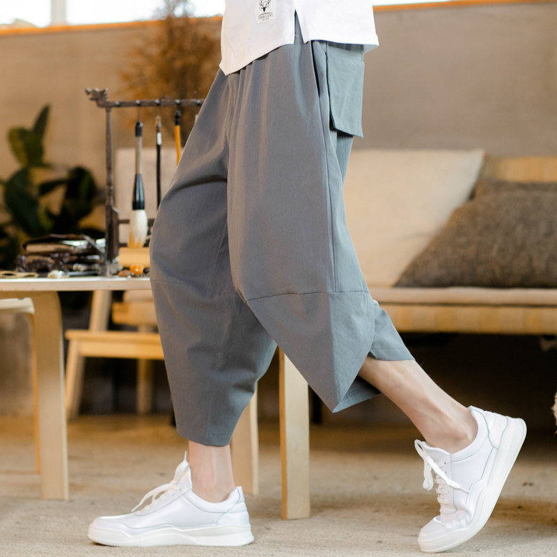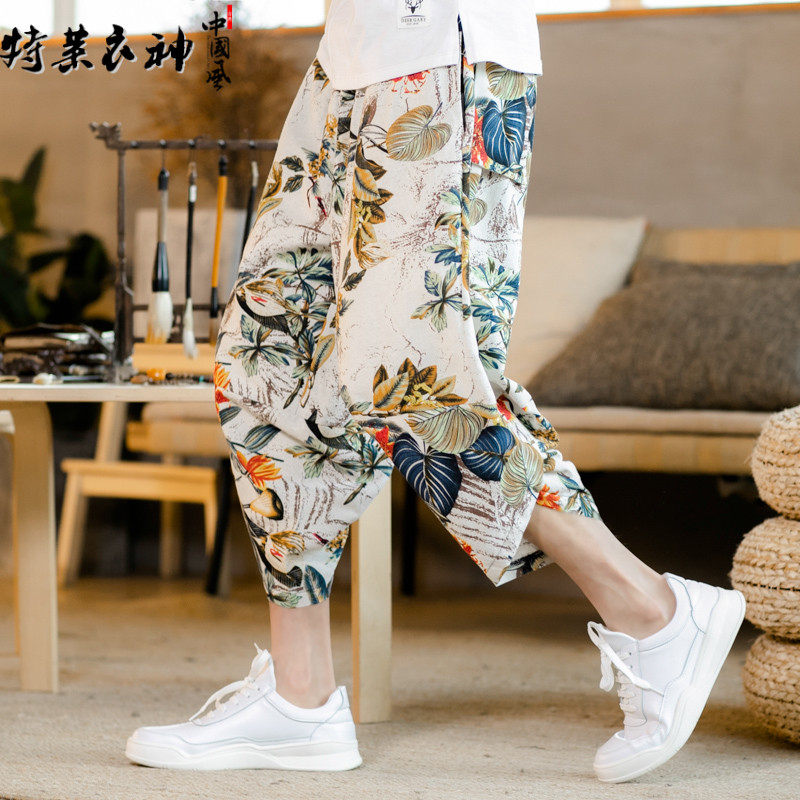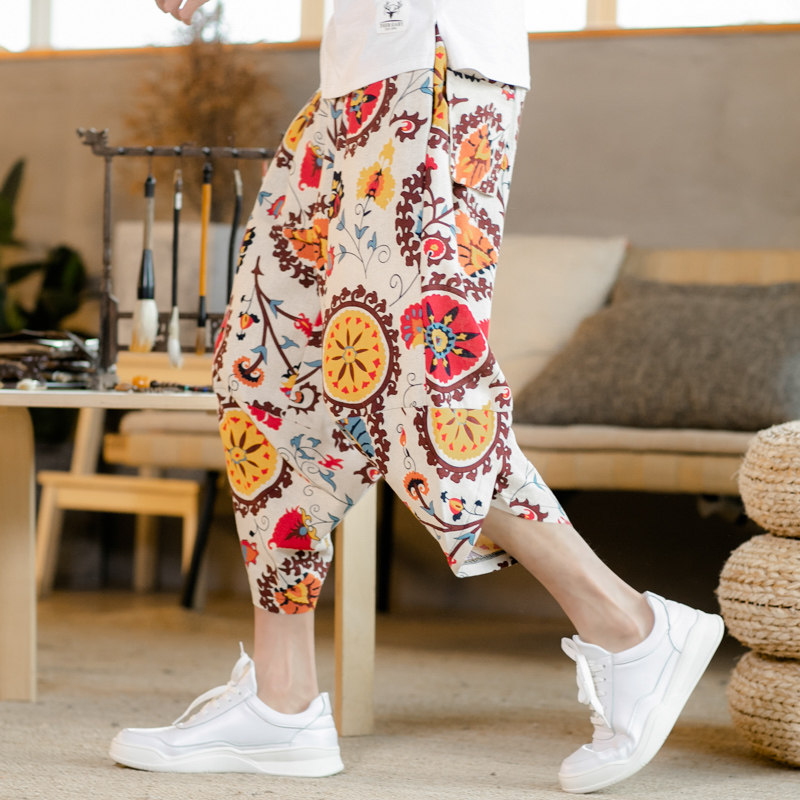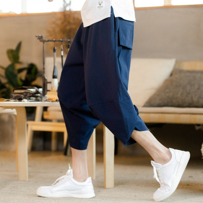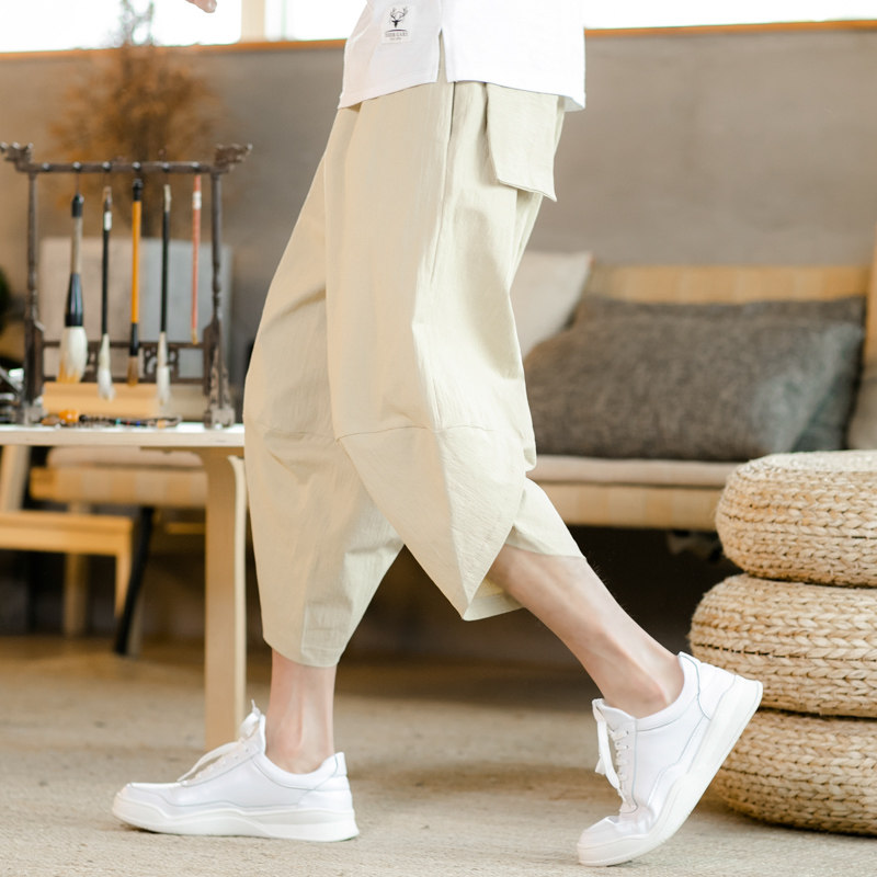 Летние штаны, китайский фонарь, пляжные шорты, китайский стиль, оверсайз, из хлопка и льна, свободный крой