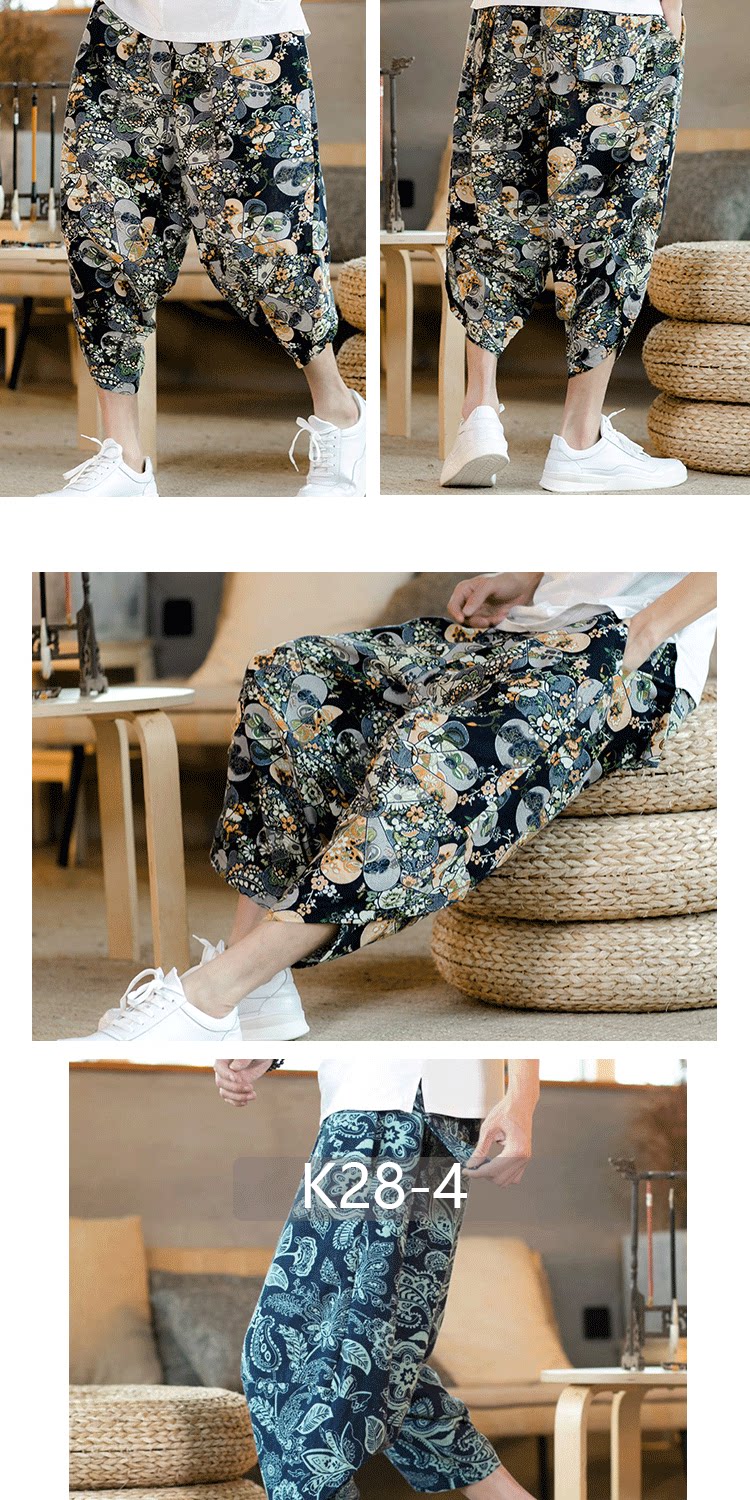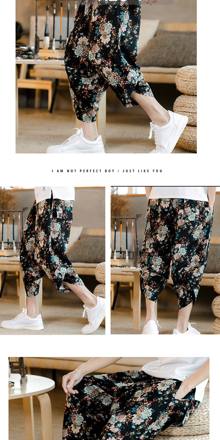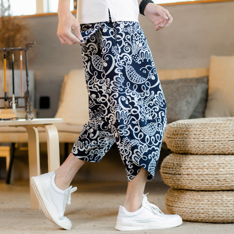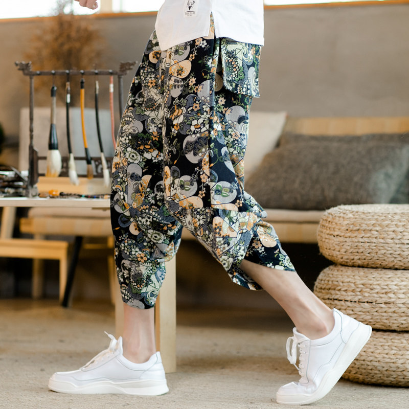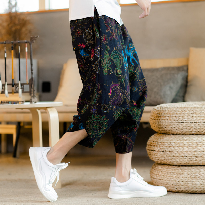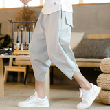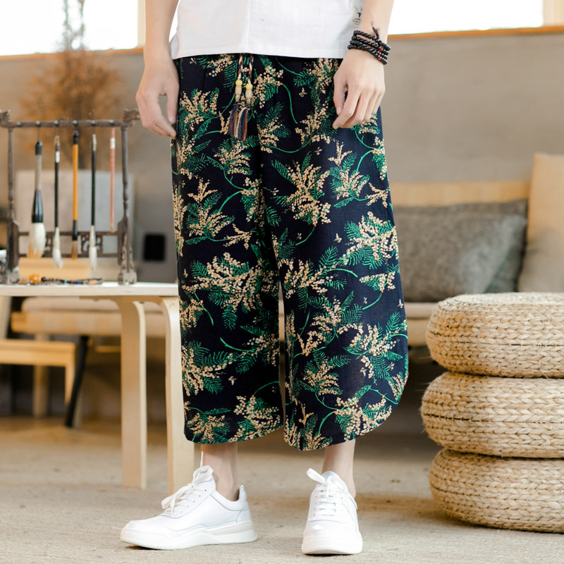 Летние штаны, китайский фонарь, пляжные шорты, китайский стиль, оверсайз, из хлопка и льна, свободный крой
