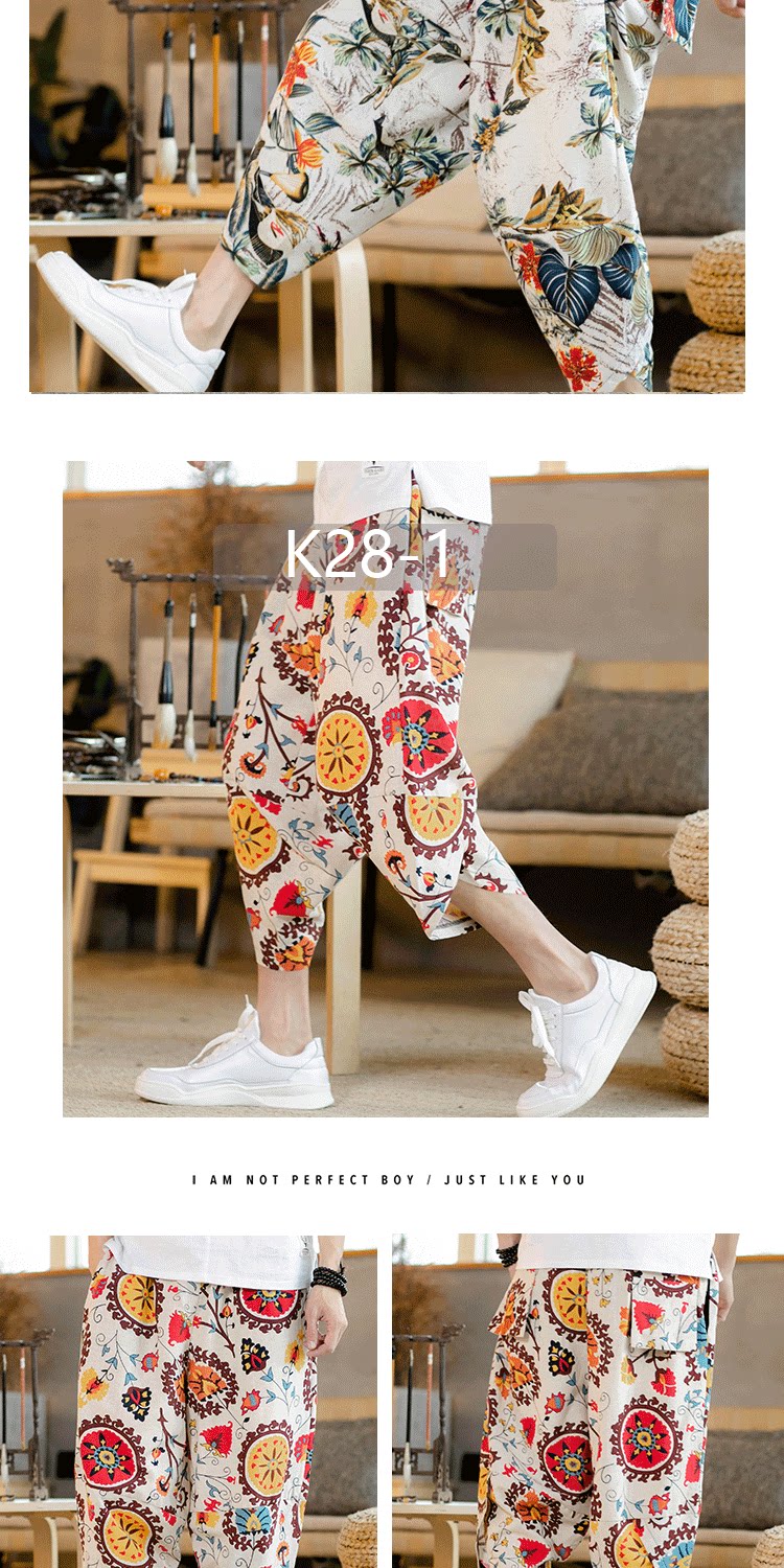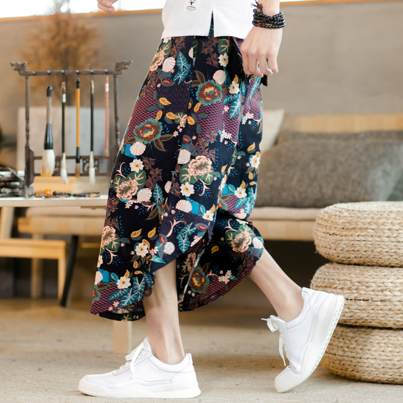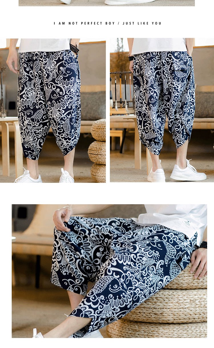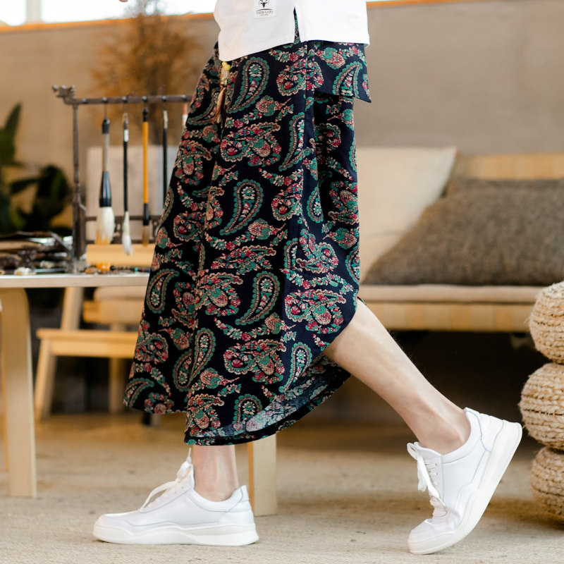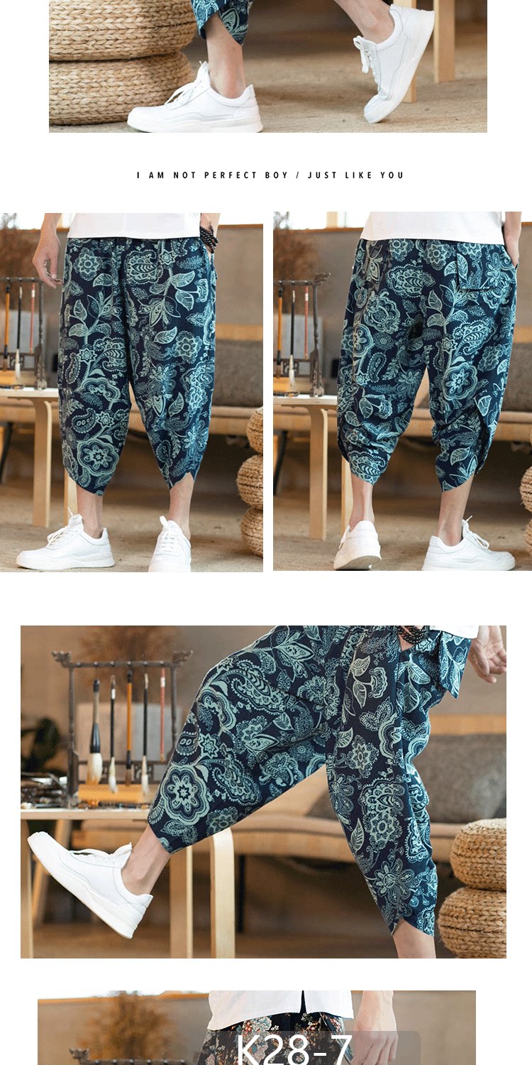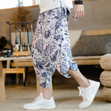 Летние штаны, китайский фонарь, пляжные шорты, китайский стиль, оверсайз, из хлопка и льна, свободный крой