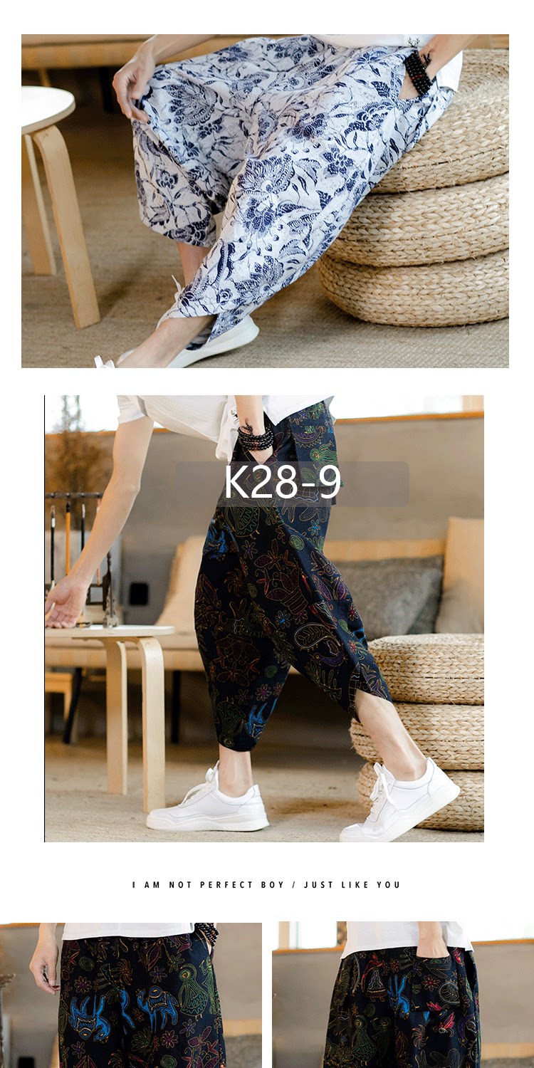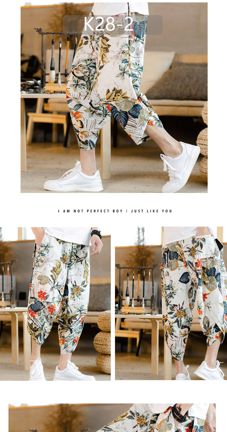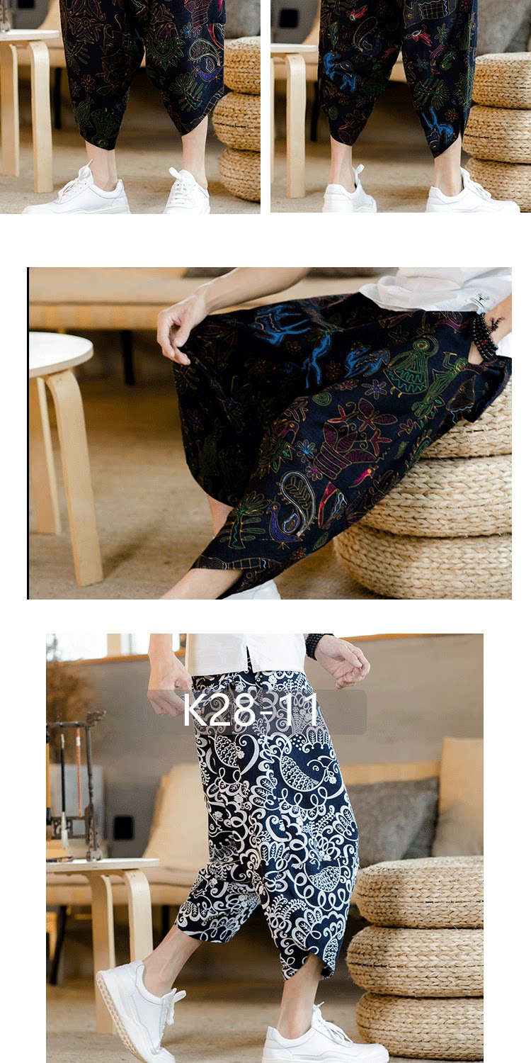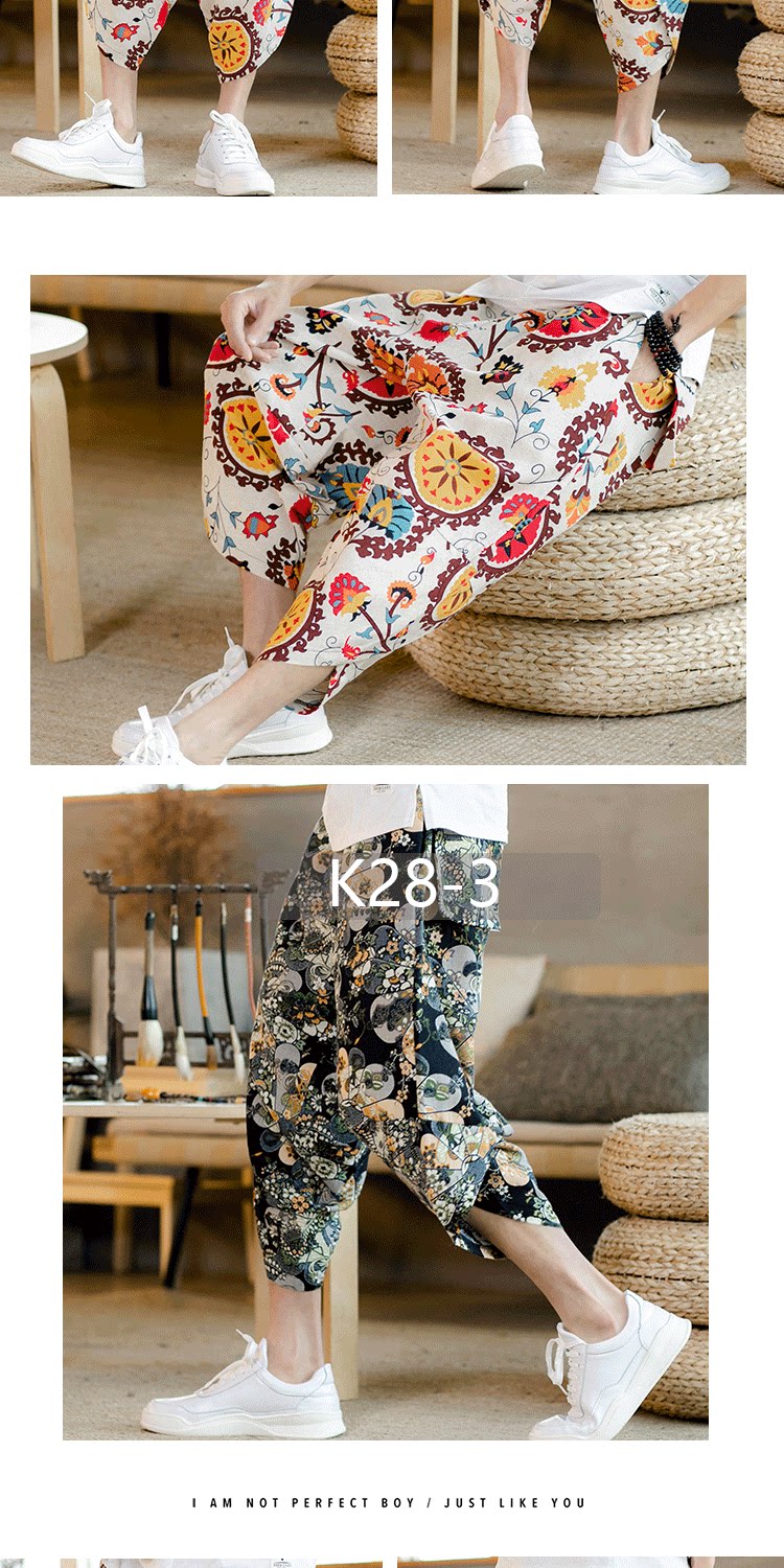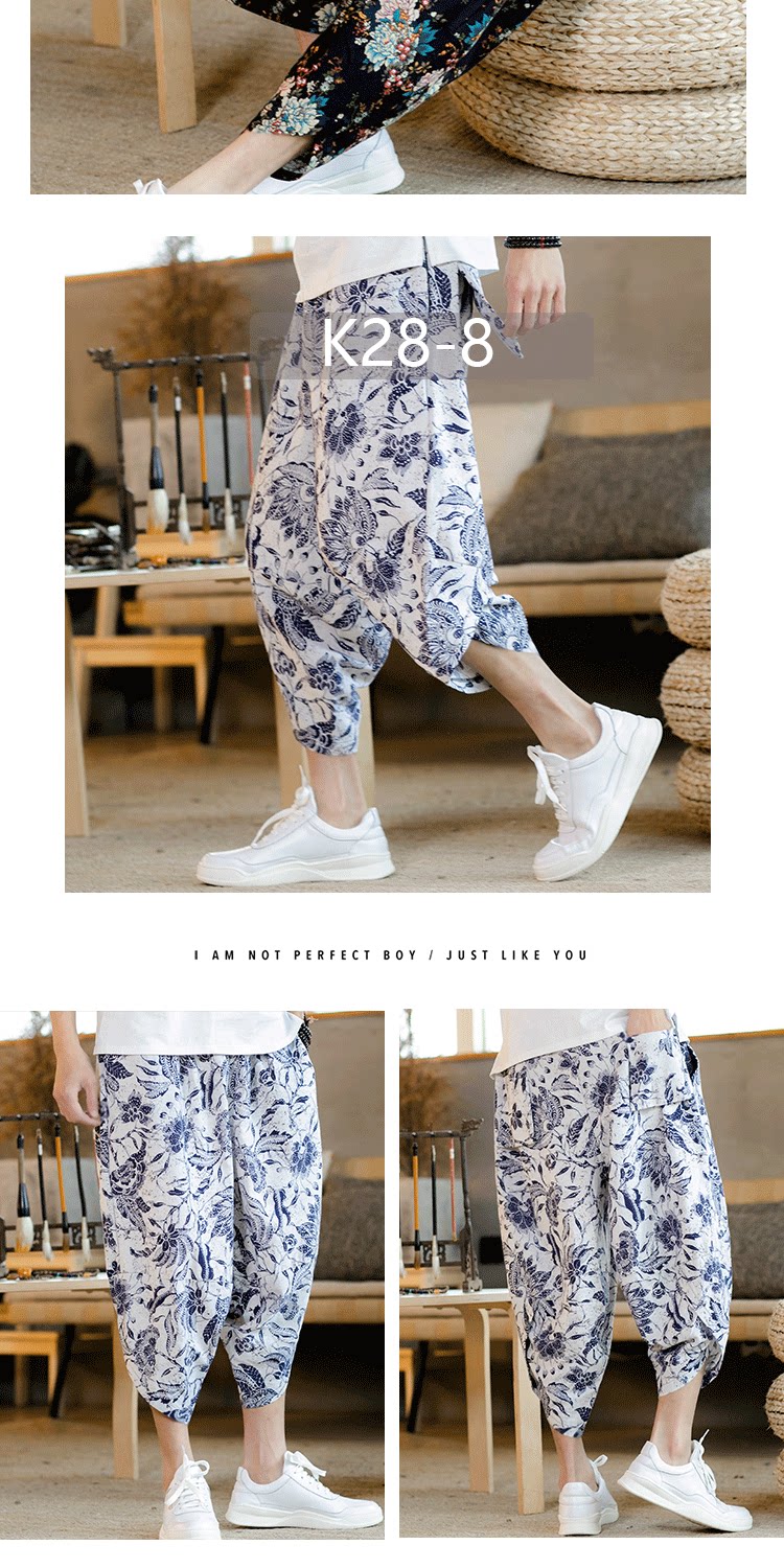 Летние штаны, китайский фонарь, пляжные шорты, китайский стиль, оверсайз, из хлопка и льна, свободный крой