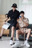 Лето с короткими рукавами мужской красивая модная мужская одежда мужской костюм с тем же стилем, что и Douyin