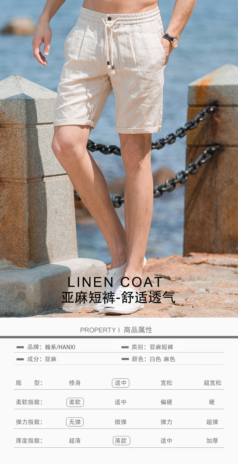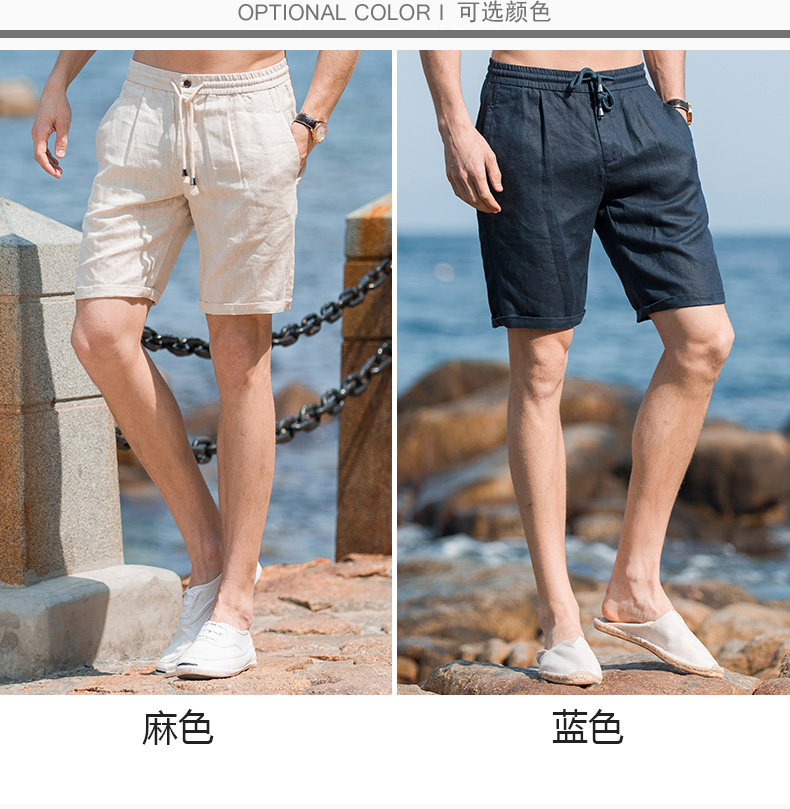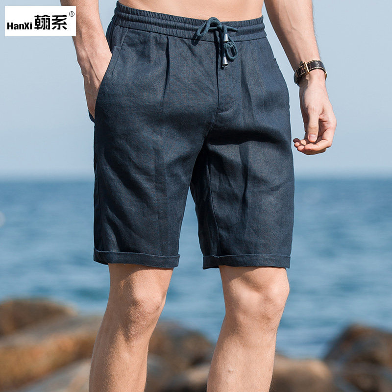 Шорты, тонкие дышащие пляжные штаны, городской стиль, из хлопка и льна, облегающий крой