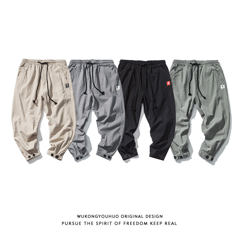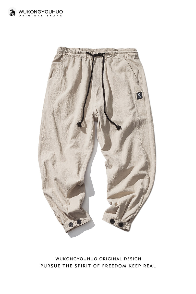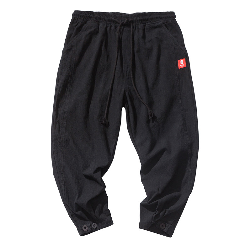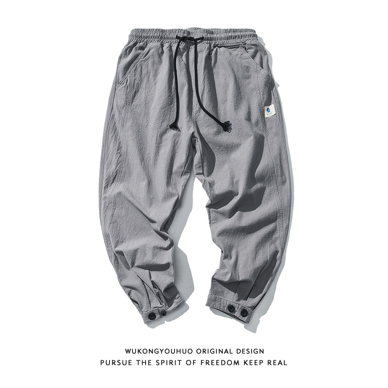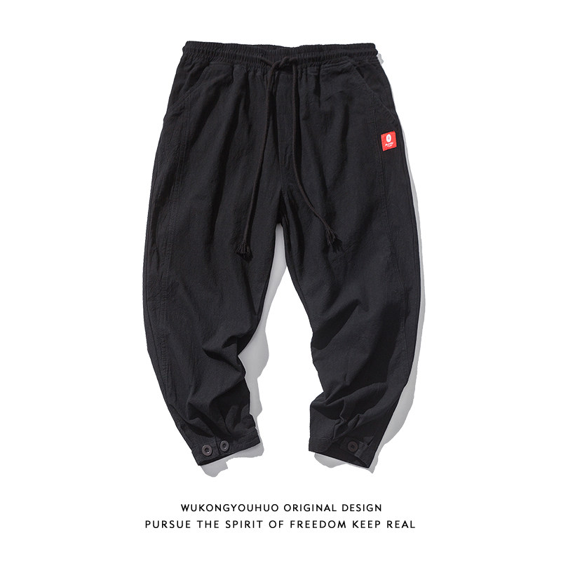 Японские хлопковые штаны для отдыха, на шнурках, эластичная талия, свободный крой
