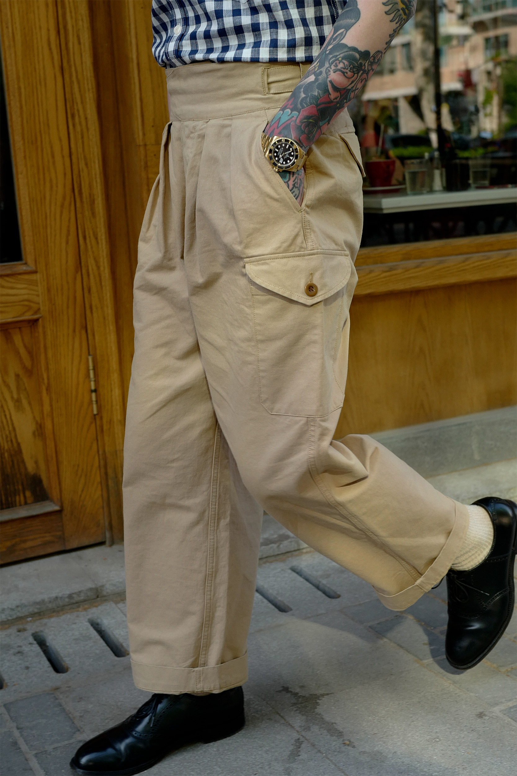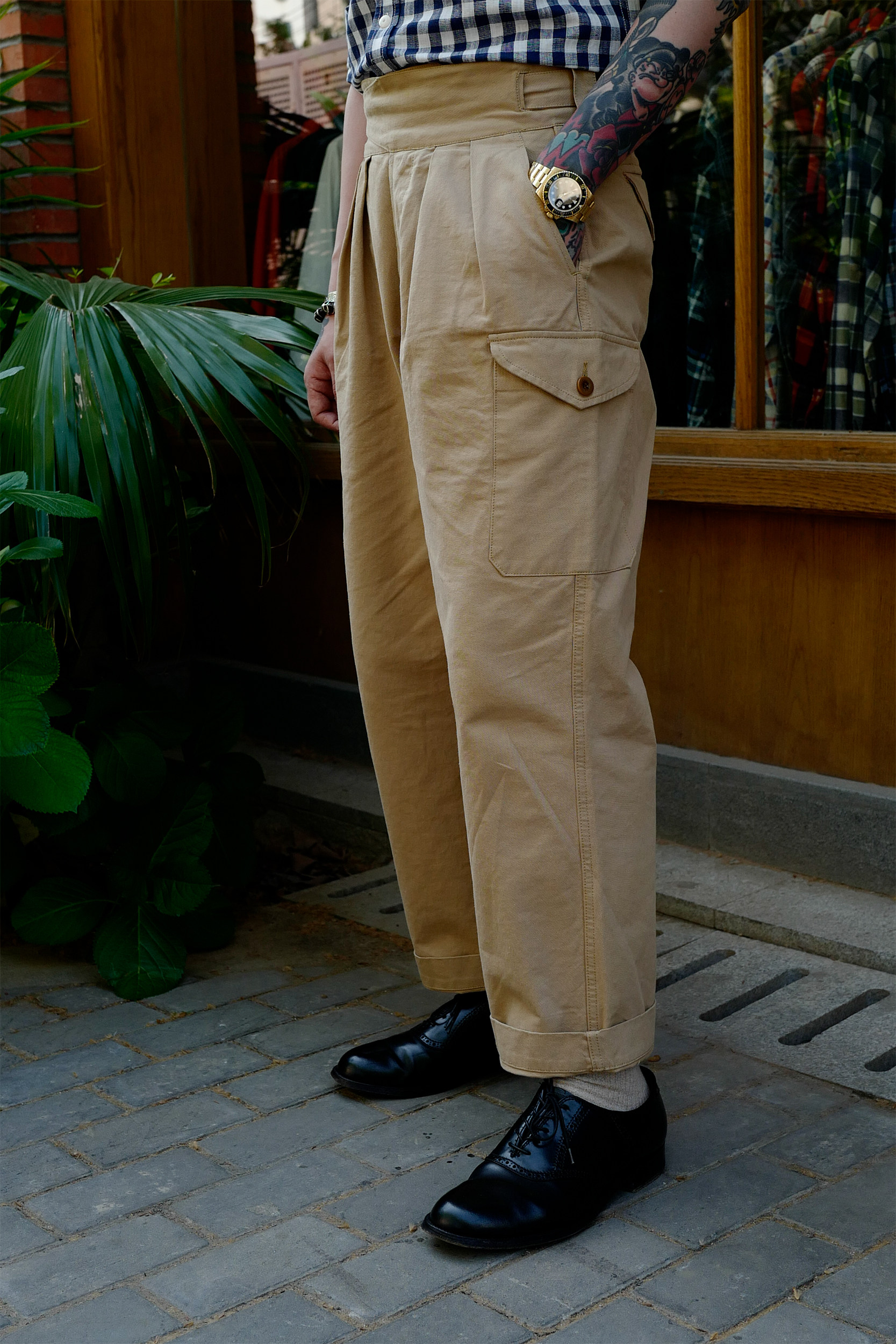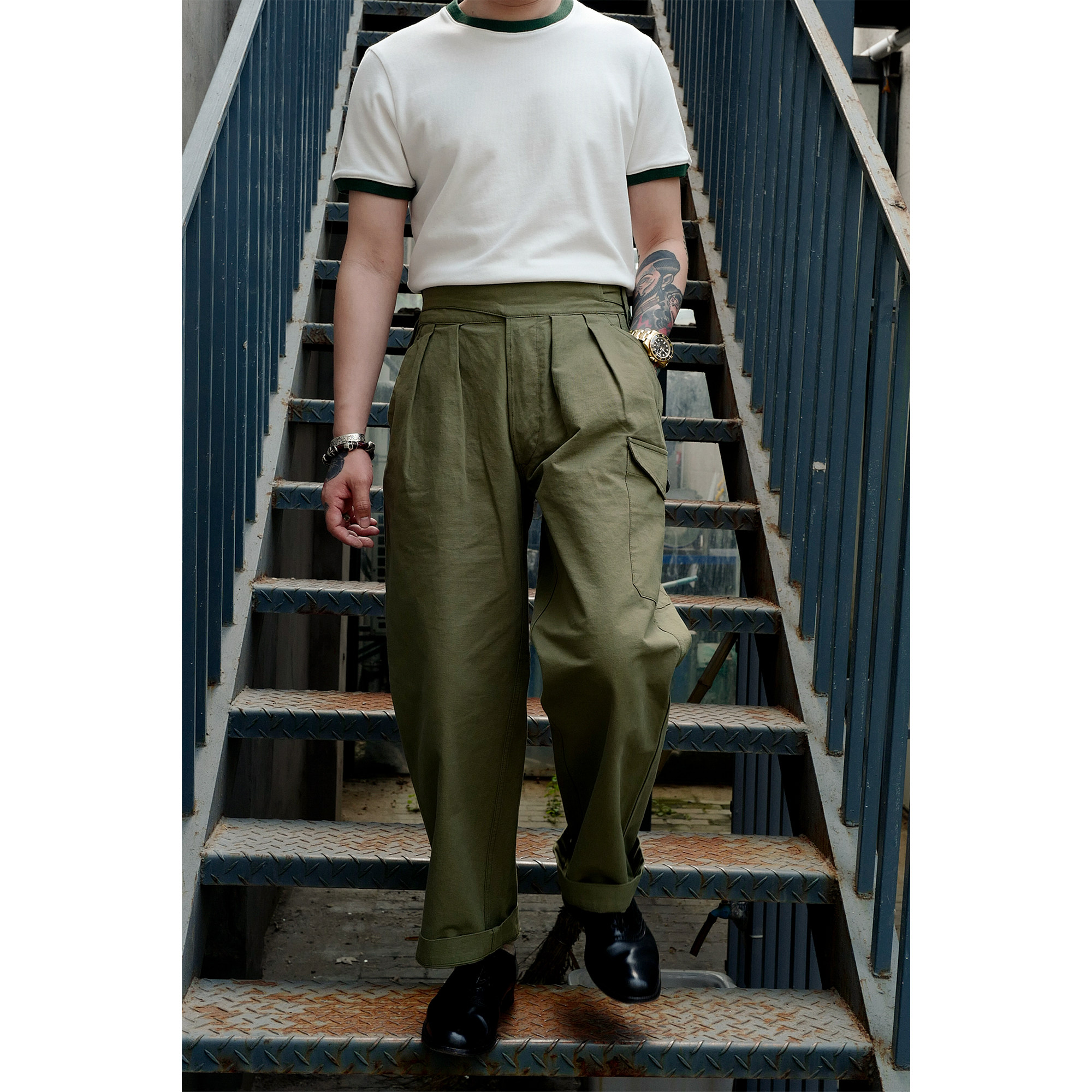 Брюки армии Гурки Гурка дважды плиссированные брюки Chino Nissan High -плотность ткань Lu79