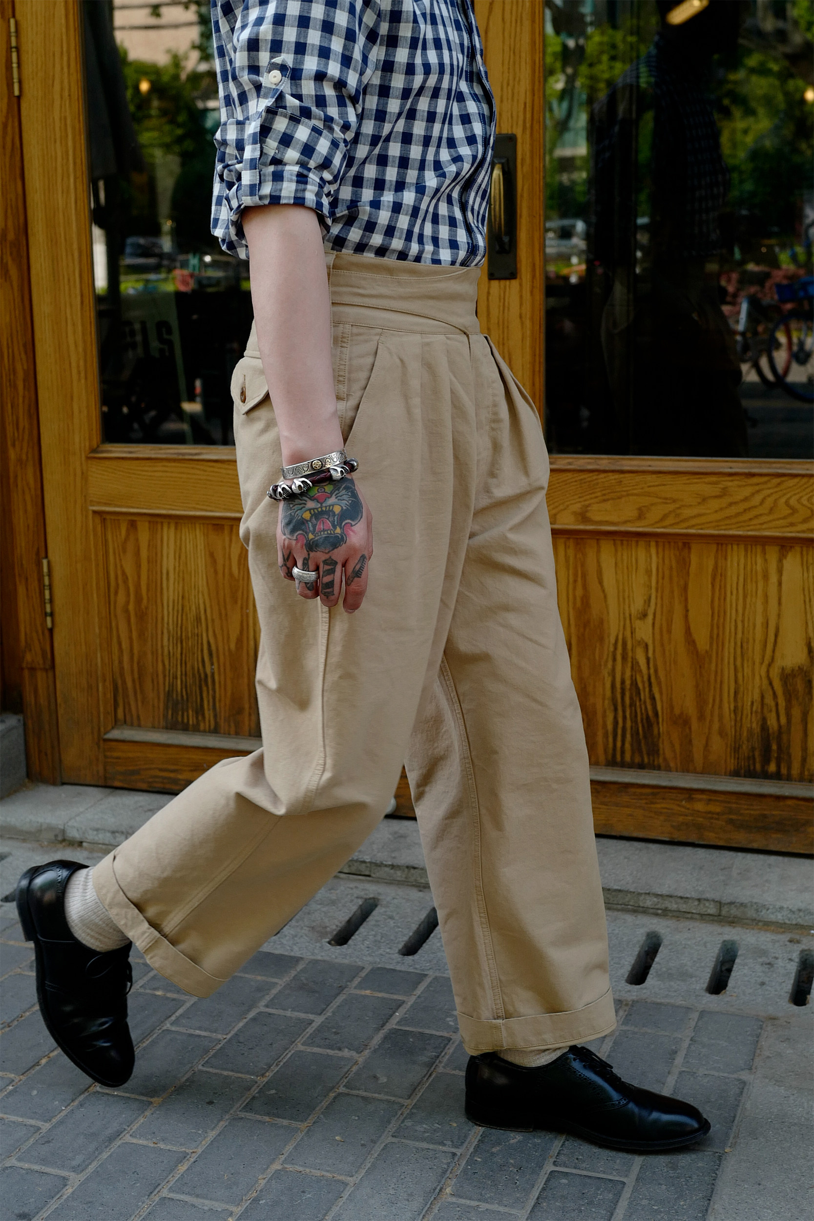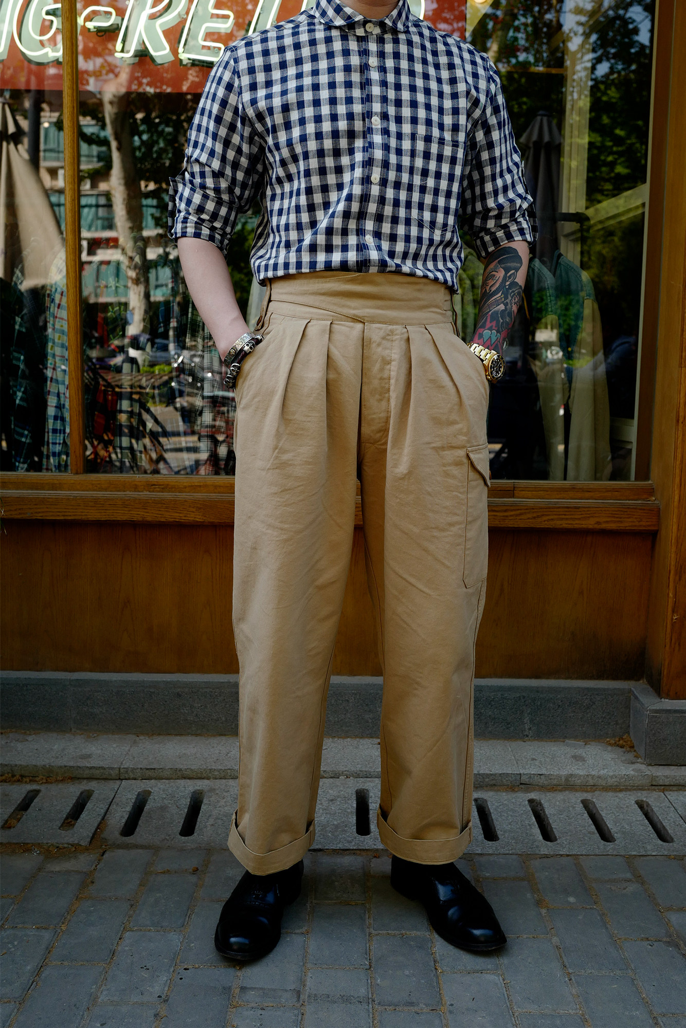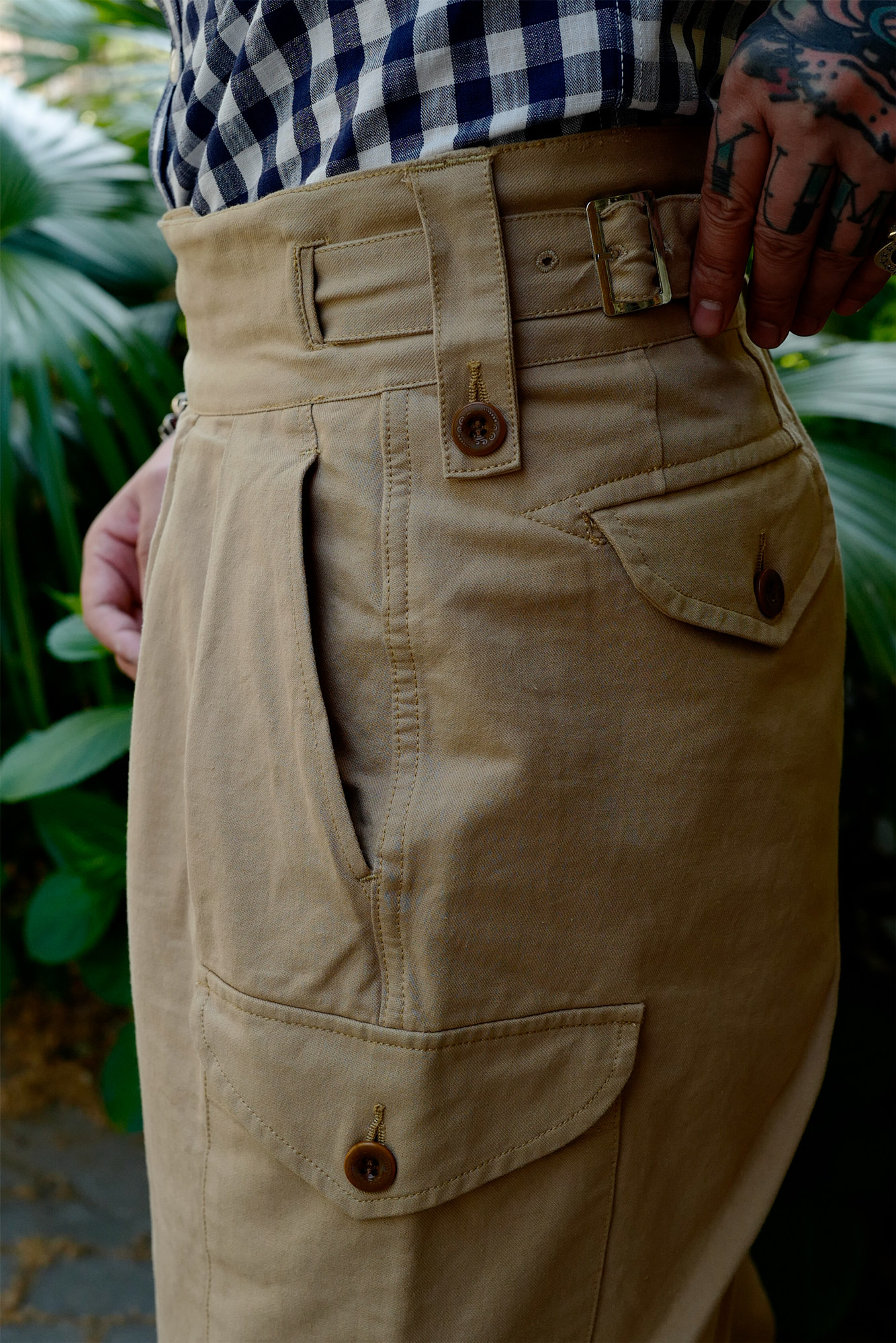 Брюки армии Гурки Гурка дважды плиссированные брюки Chino Nissan High -плотность ткань Lu79
