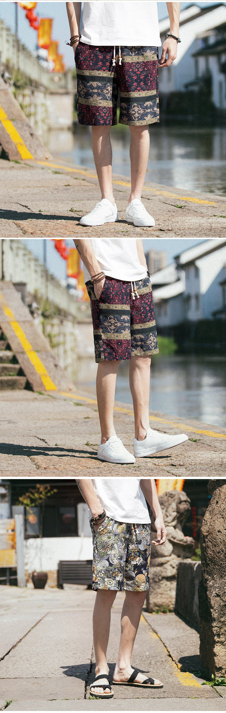 Этнические шорты, пляжные ретро штаны, китайский стиль, оверсайз, большой размер