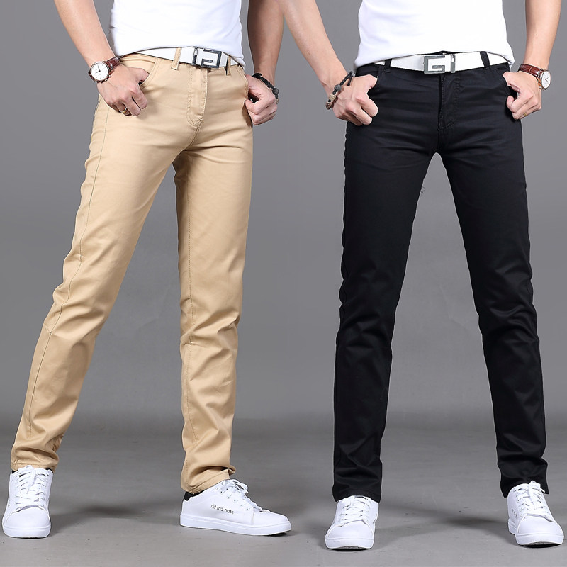 Летние мужские черные трендовые осенние тонкие штаны, свободный прямой крой, в корейском стиле
