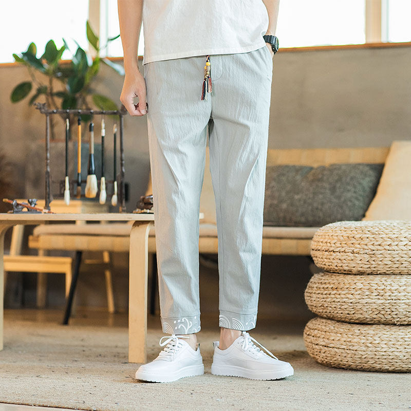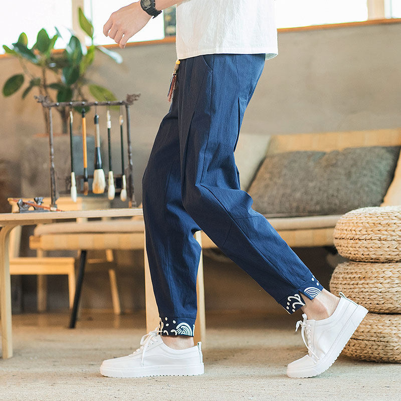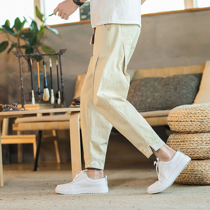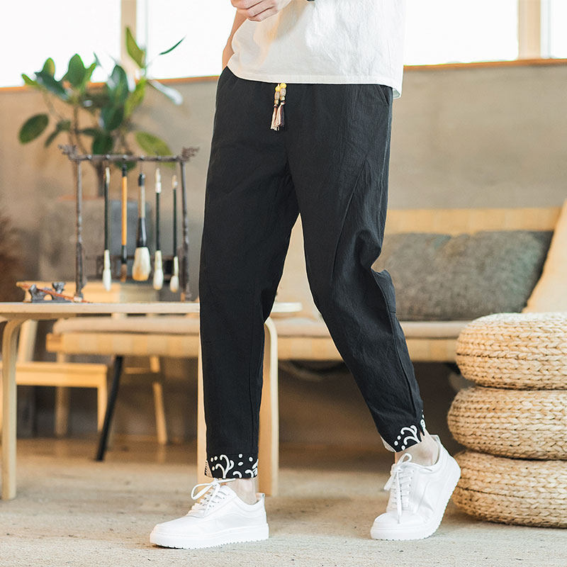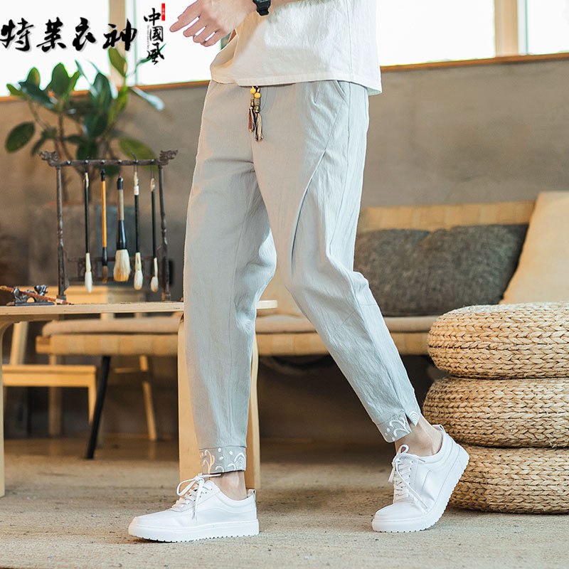 Тонкие прохладные ретро штаны, китайский стиль, из хлопка и льна, свободный крой