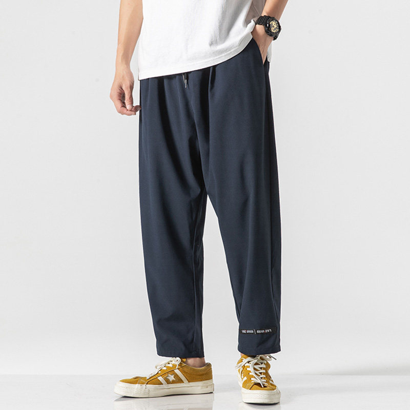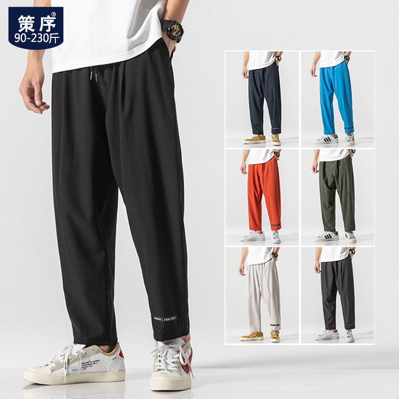 Мужские летние тонкие эластичные спортивные трендовые штаны для школьников и студентов для отдыха, большой размер, свободный крой