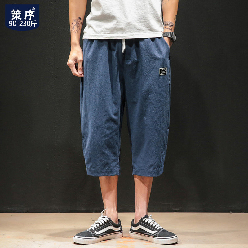 Японские трендовые штаны, свободный прямой крой, большой размер, оверсайз, из хлопка и льна