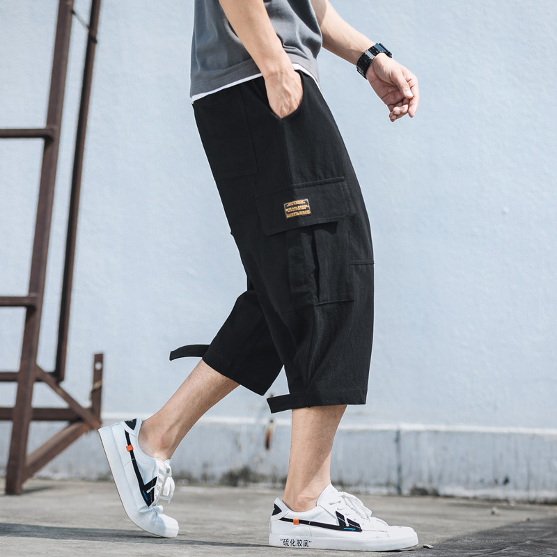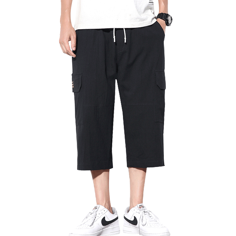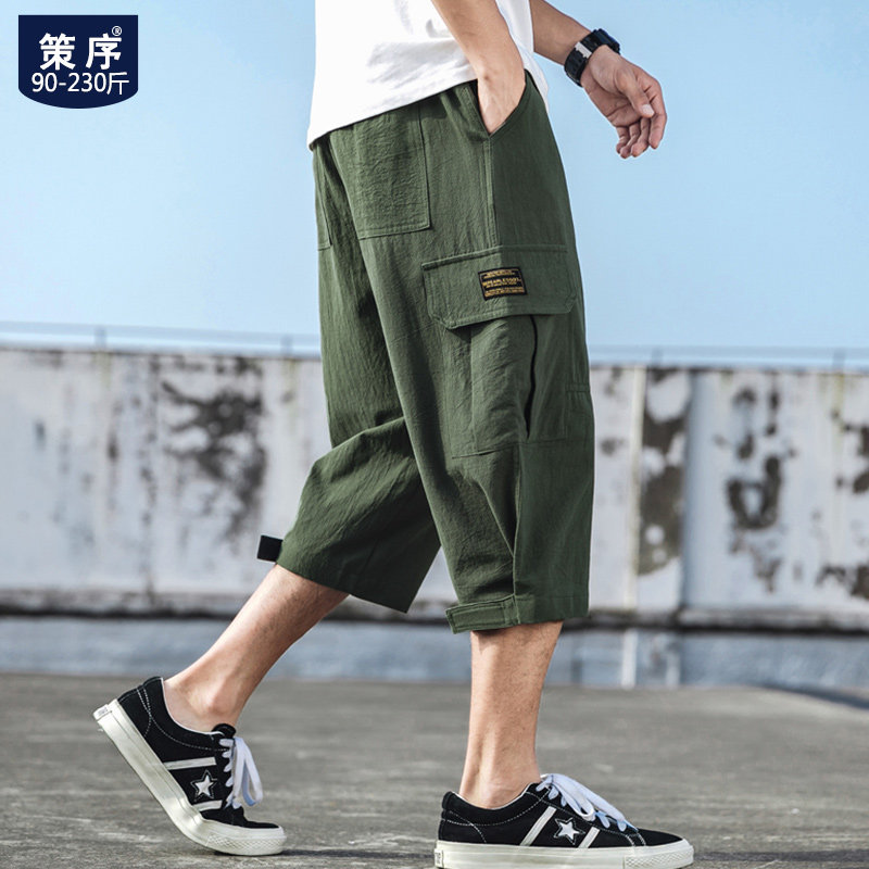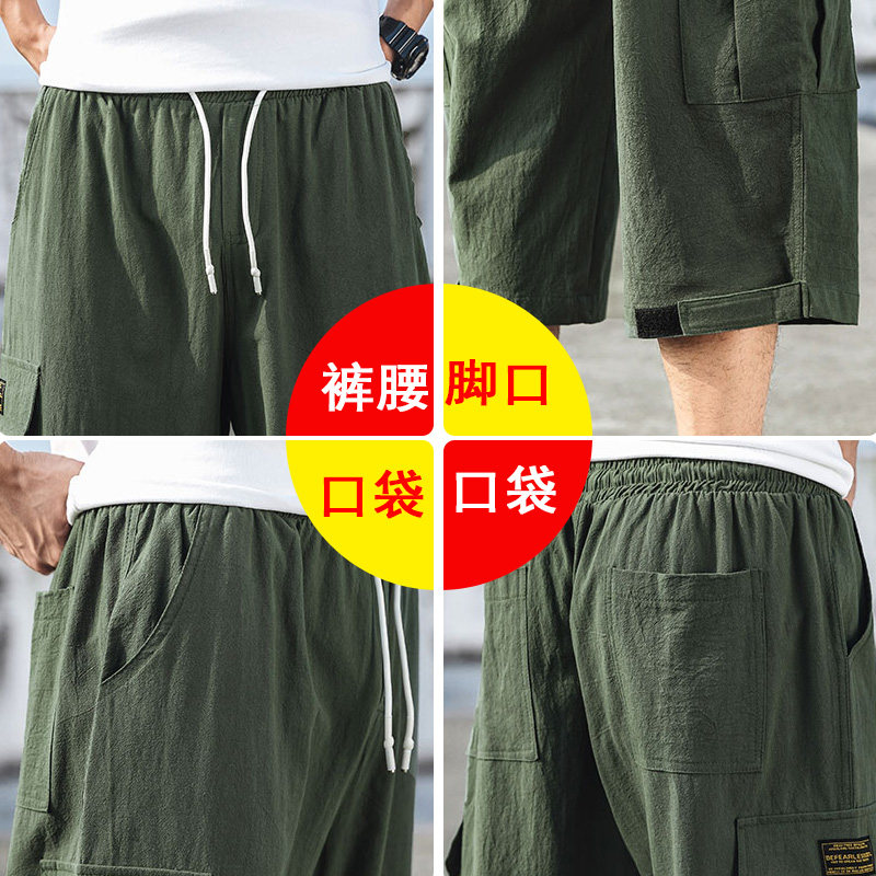 Штаны, летние шорты на липучке, большой размер, свободный прямой крой, из хлопка и льна