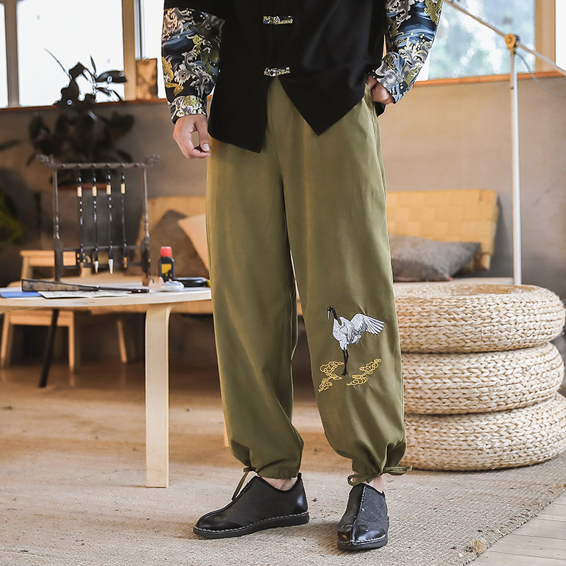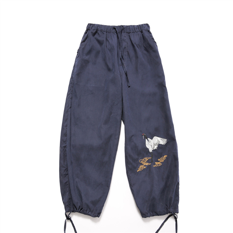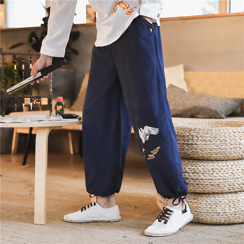 Осенние ретро штаны, китайский стиль, оверсайз, с вышивкой, свободный крой