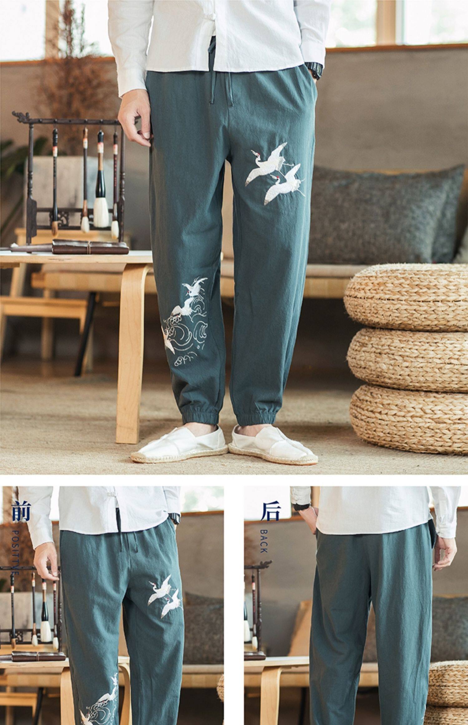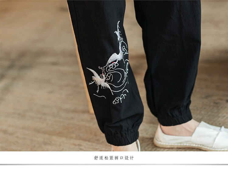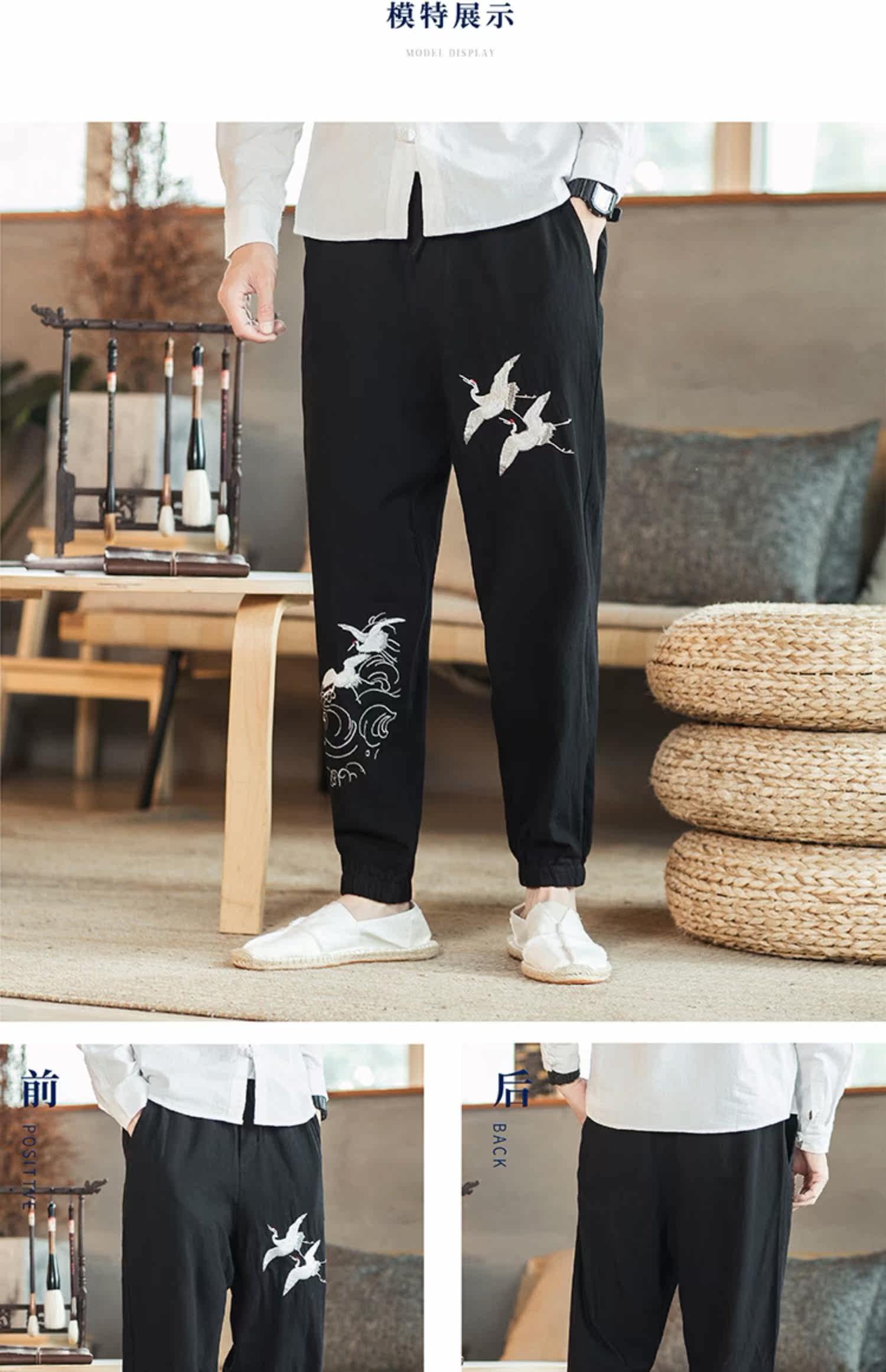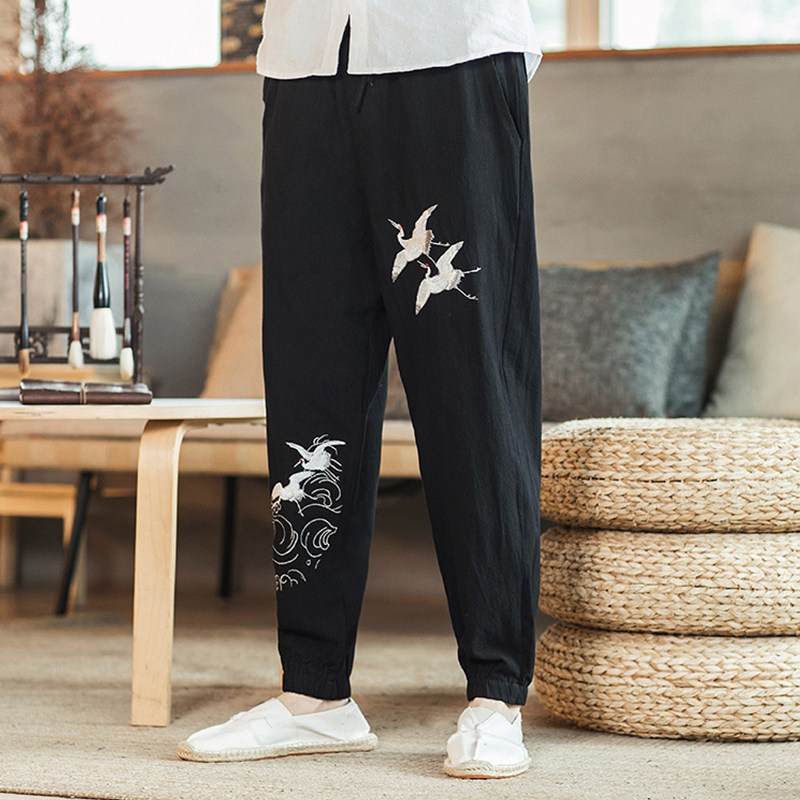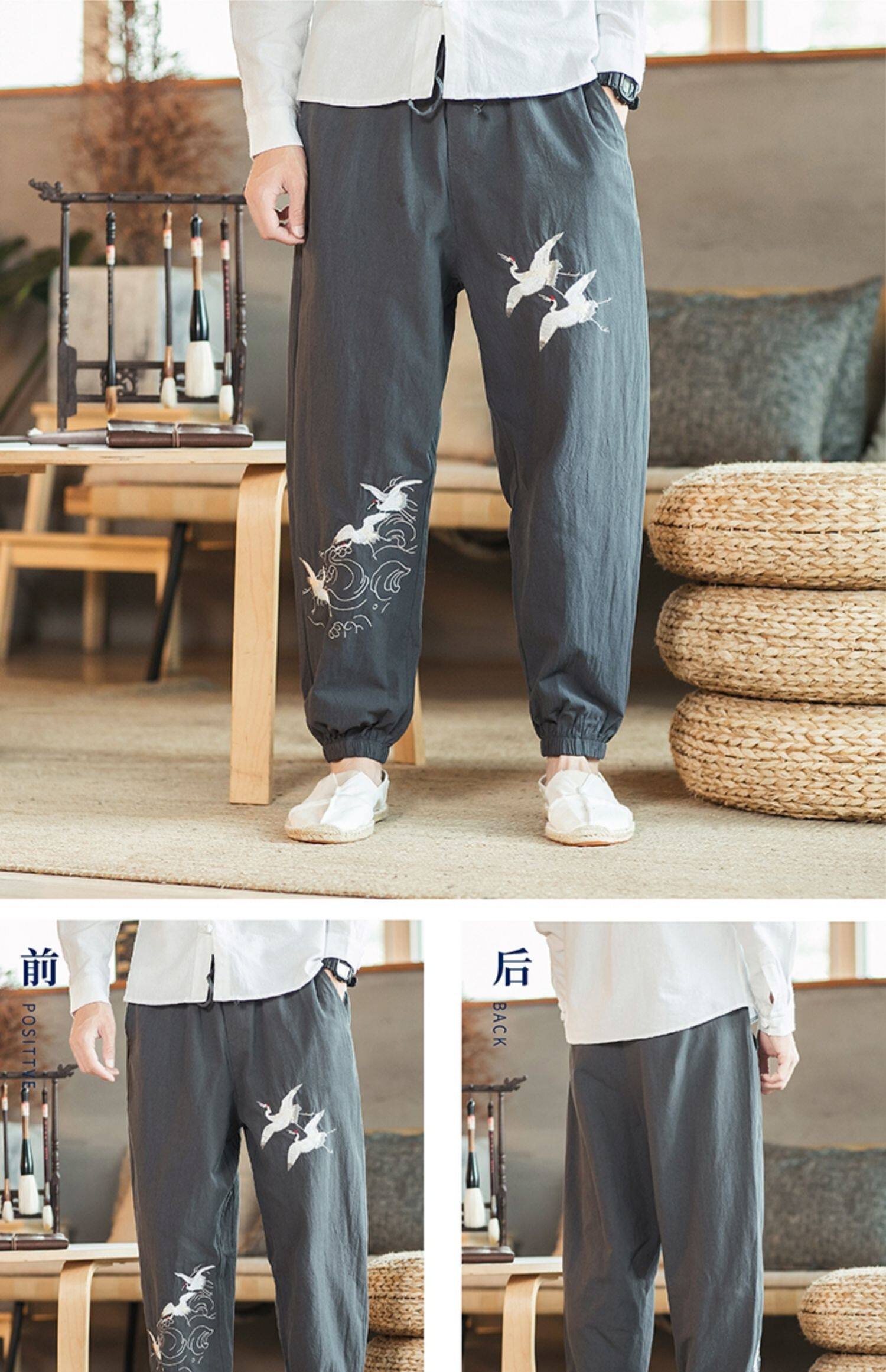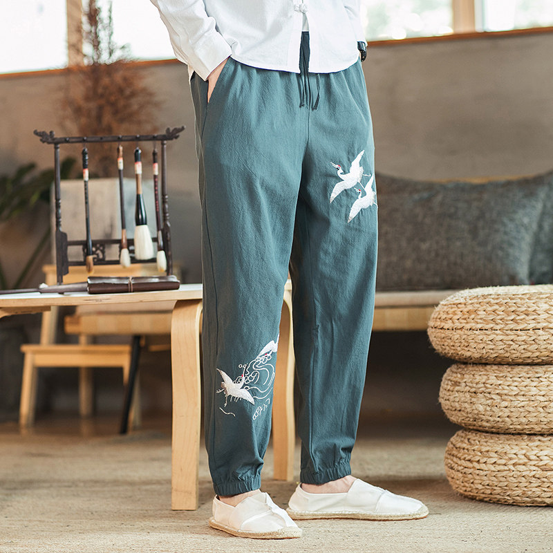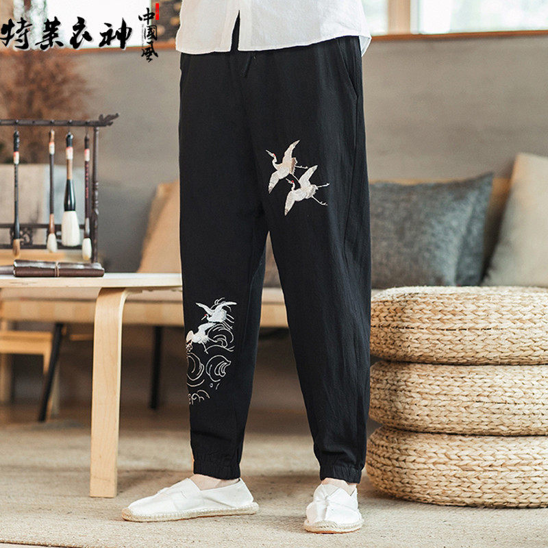 Осенние мужские штаны для отдыха, большой размер, китайский стиль, свободный крой, с вышивкой