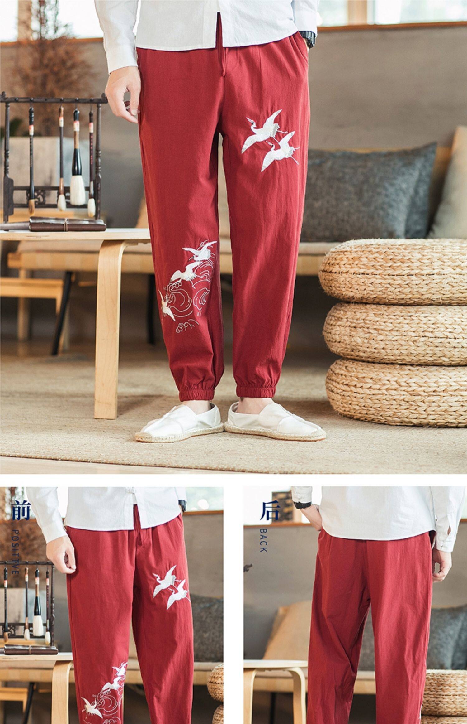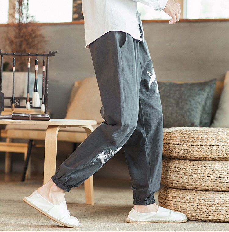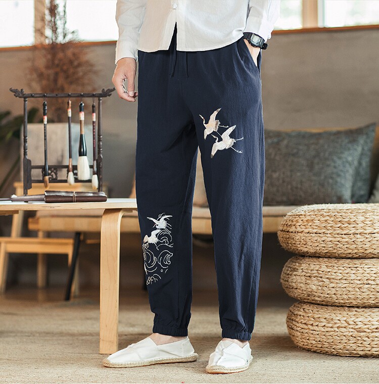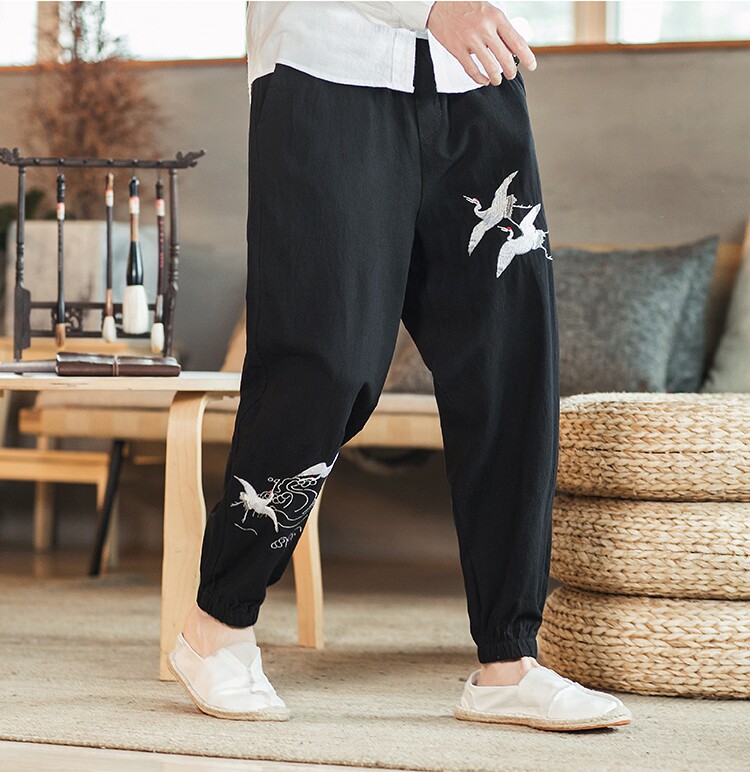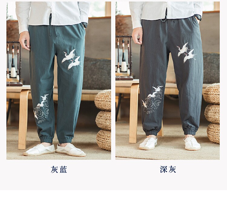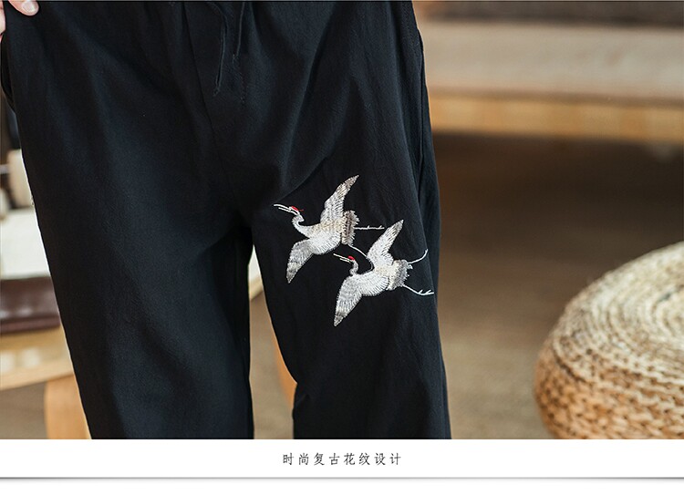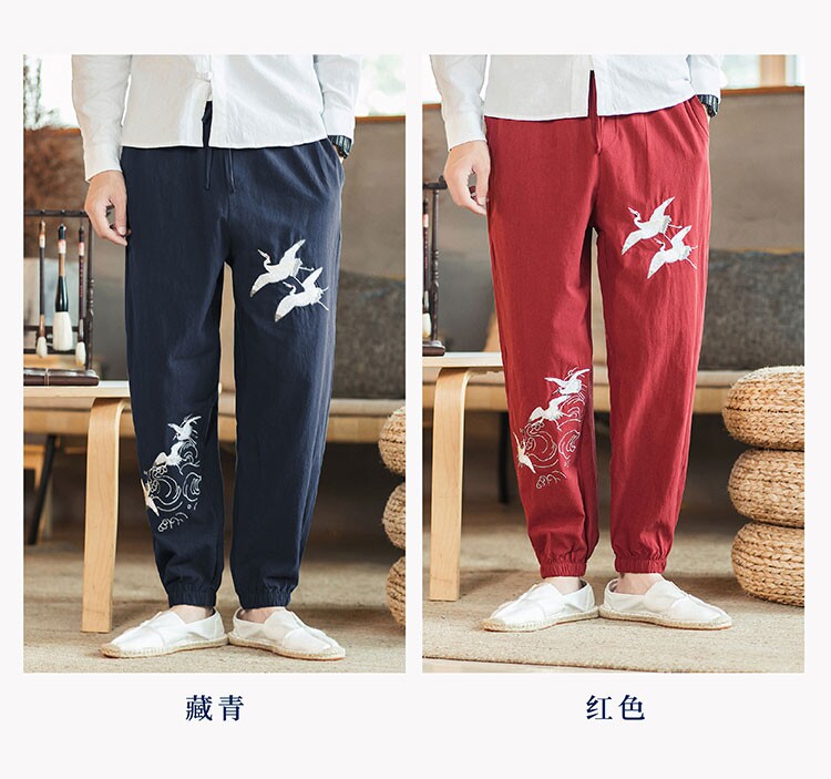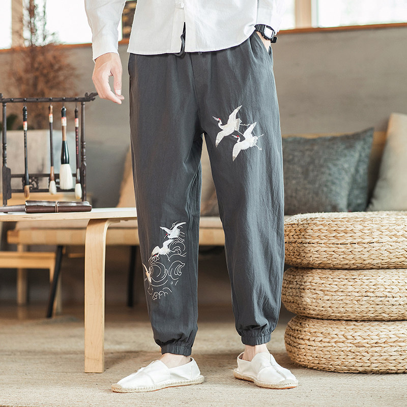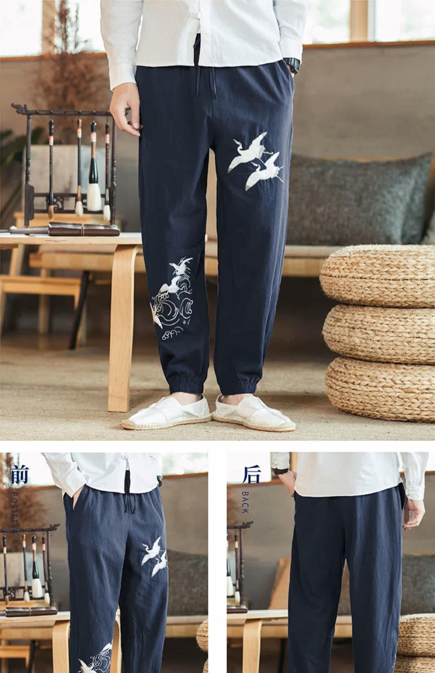 Осенние мужские штаны для отдыха, большой размер, китайский стиль, свободный крой, с вышивкой