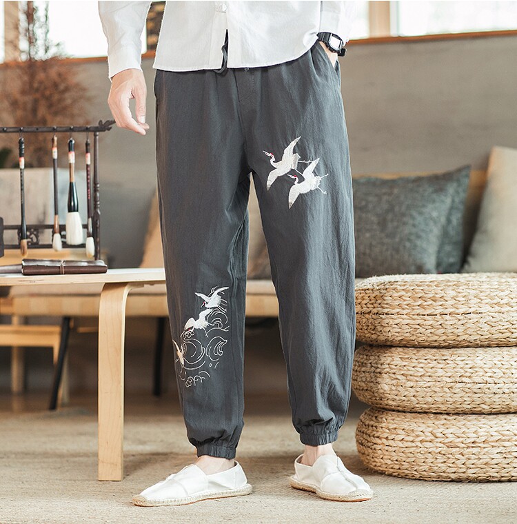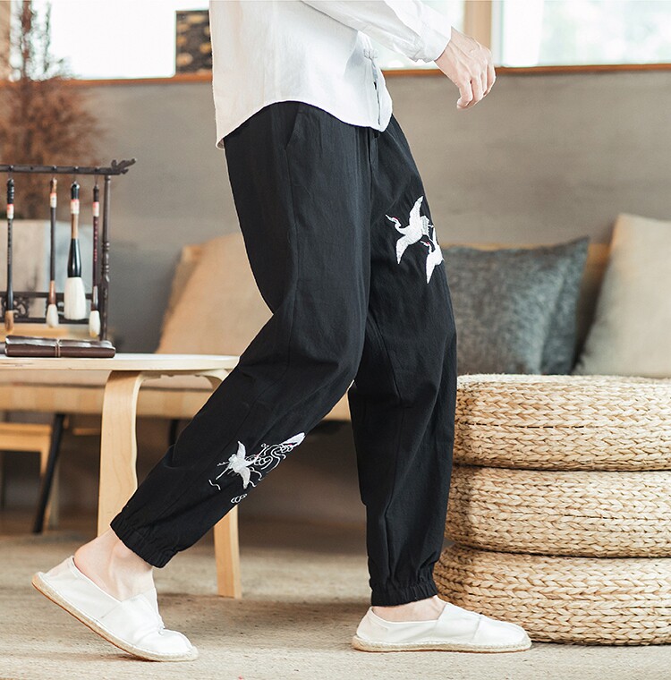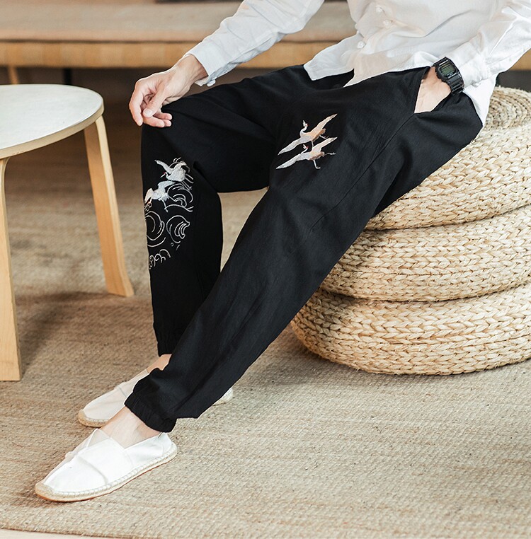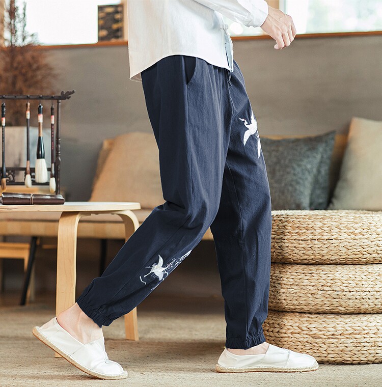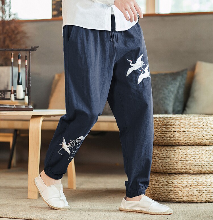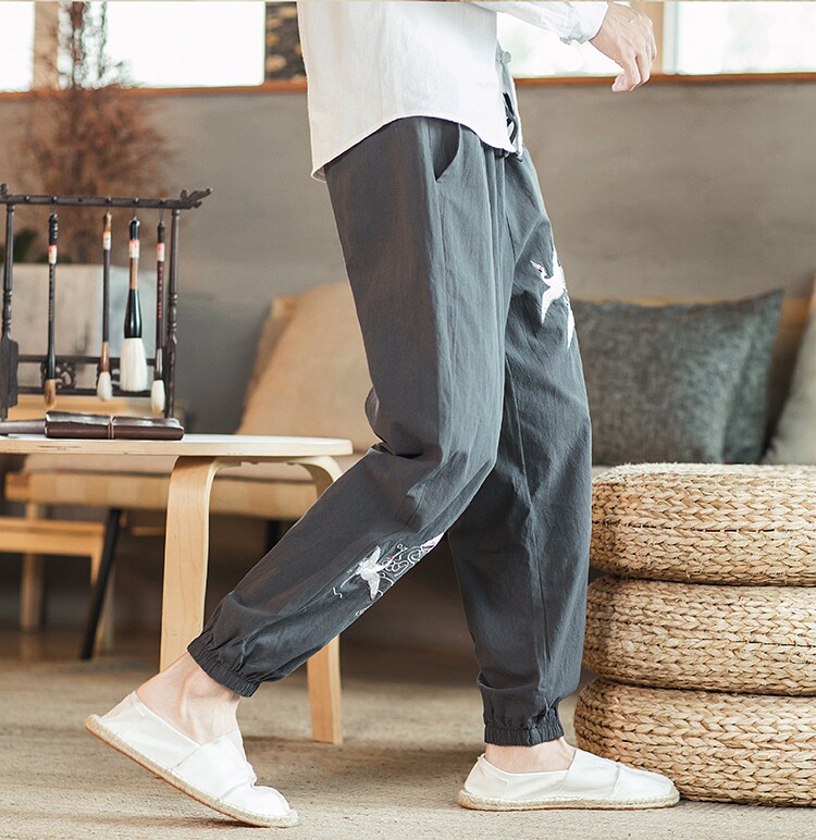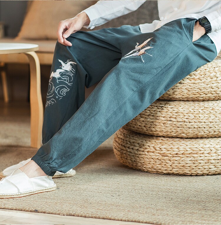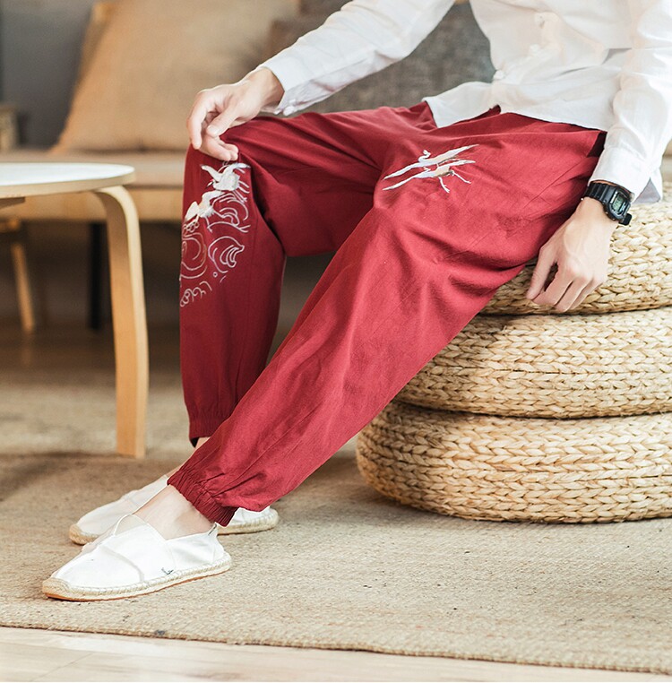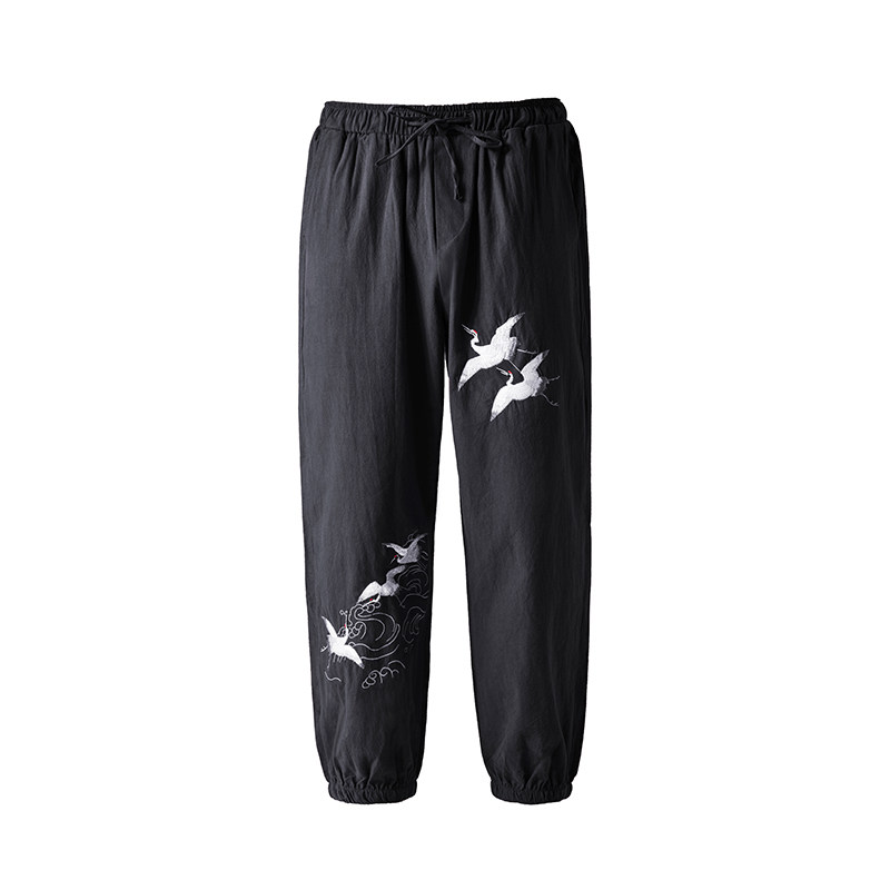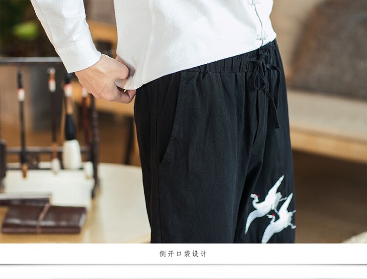 Осенние мужские штаны для отдыха, большой размер, китайский стиль, свободный крой, с вышивкой
