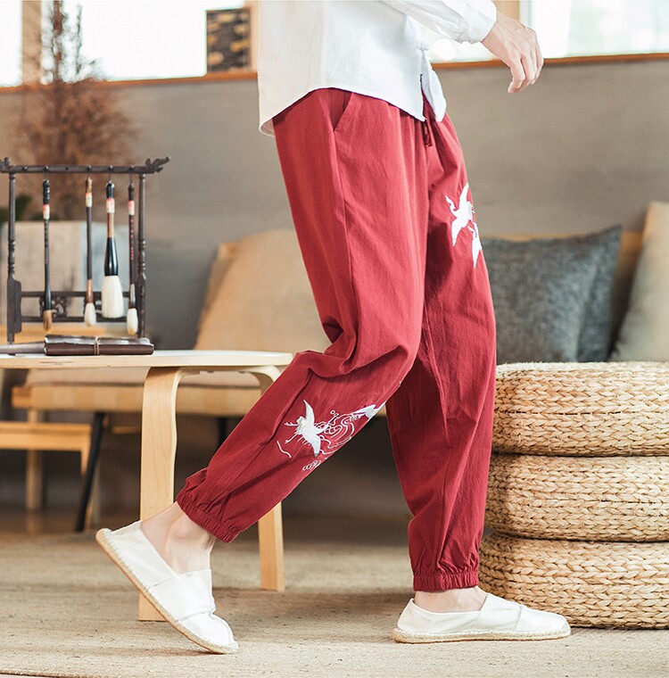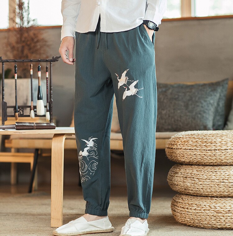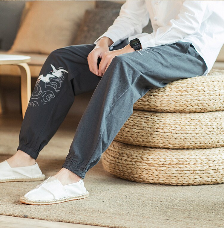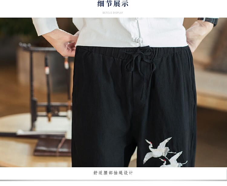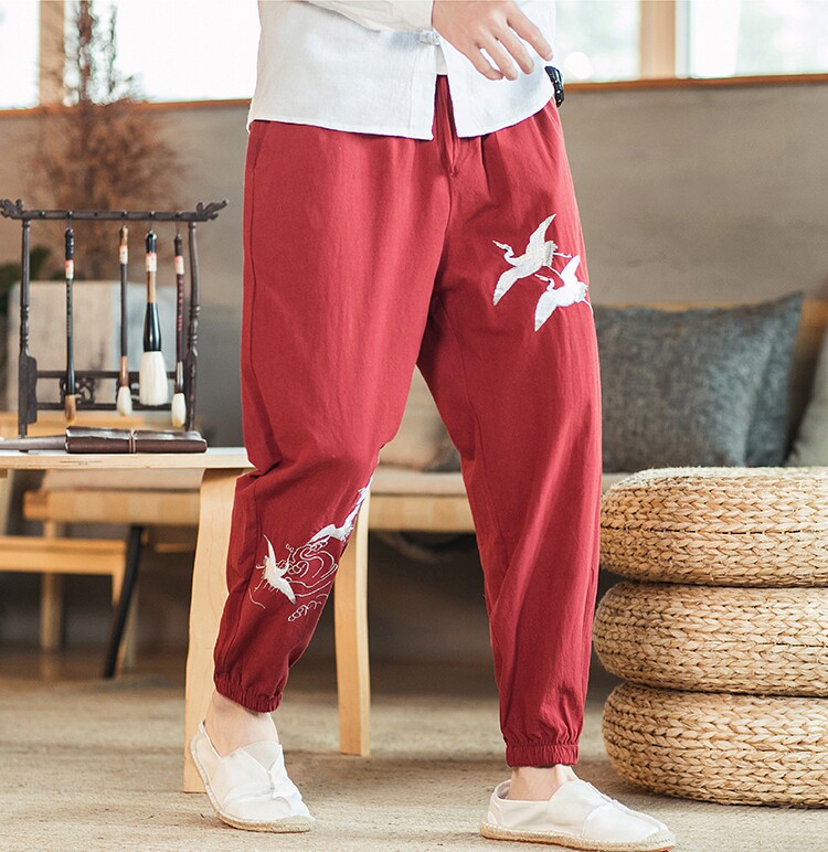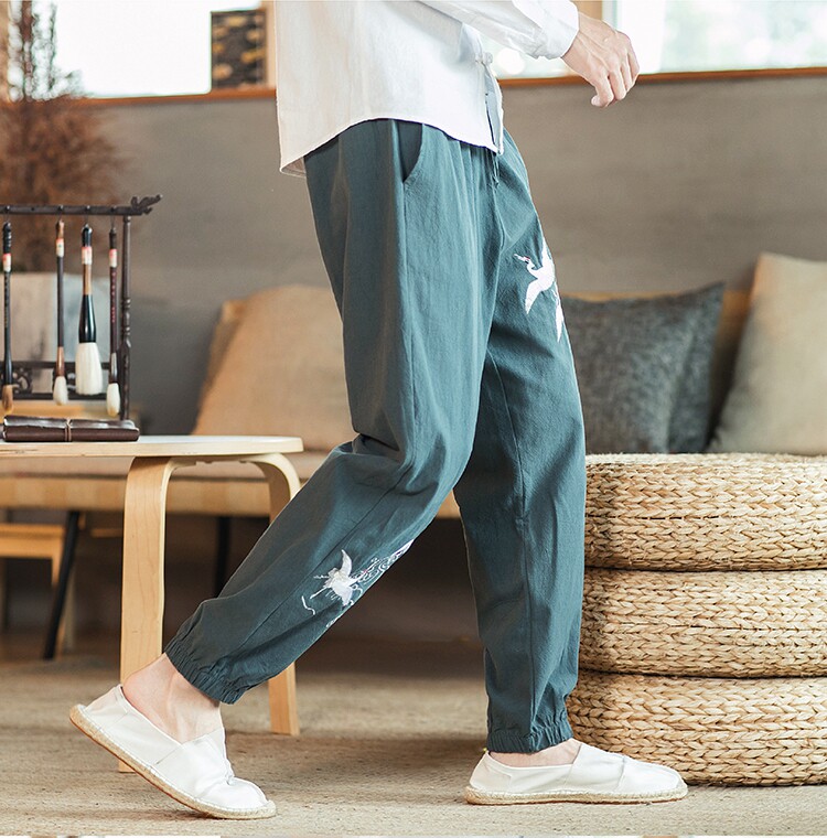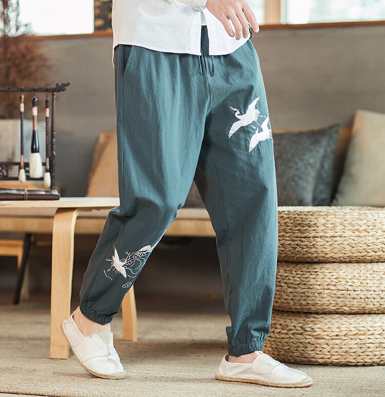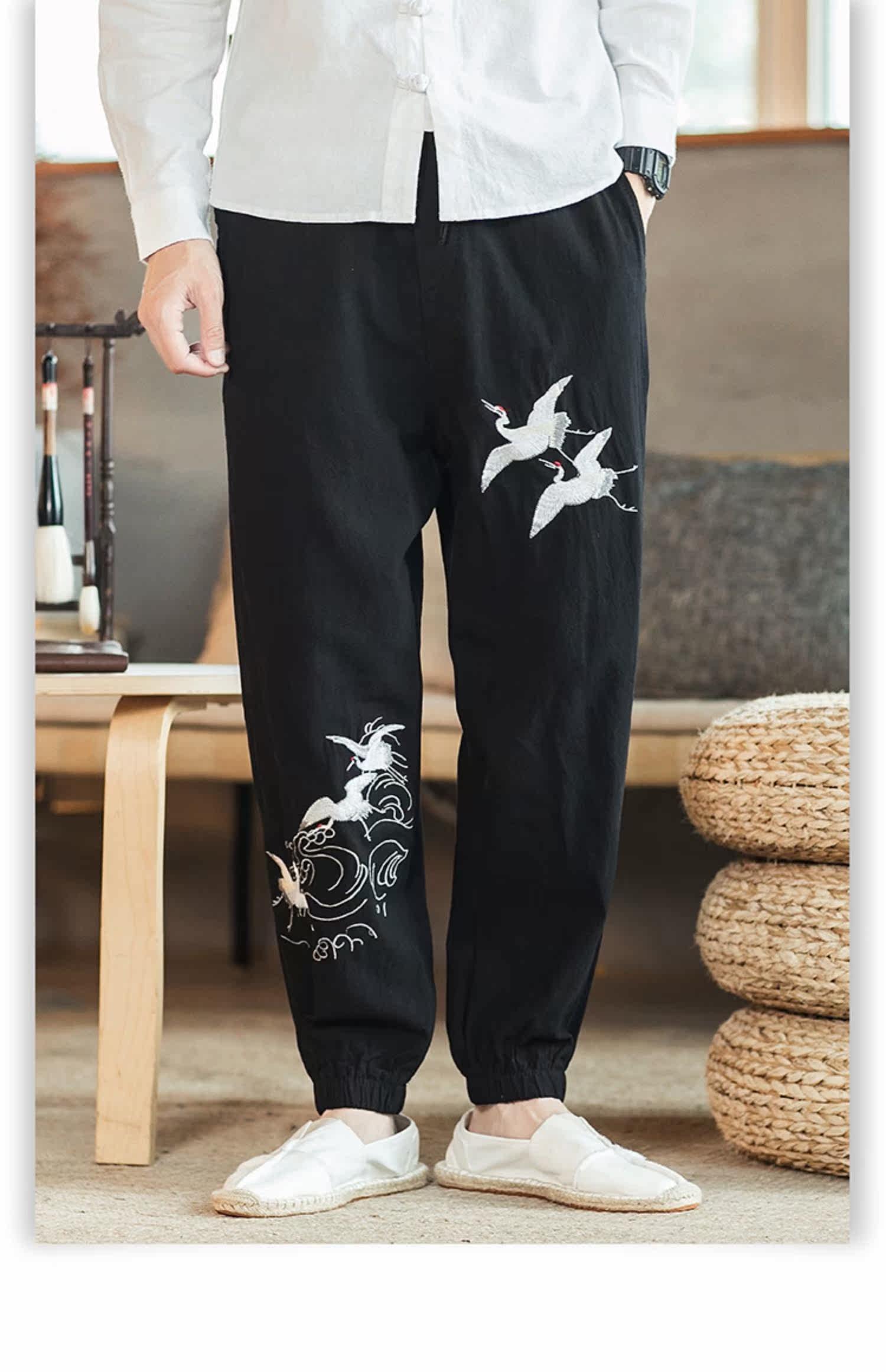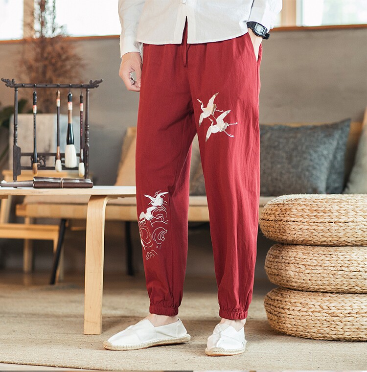 Осенние мужские штаны для отдыха, большой размер, китайский стиль, свободный крой, с вышивкой