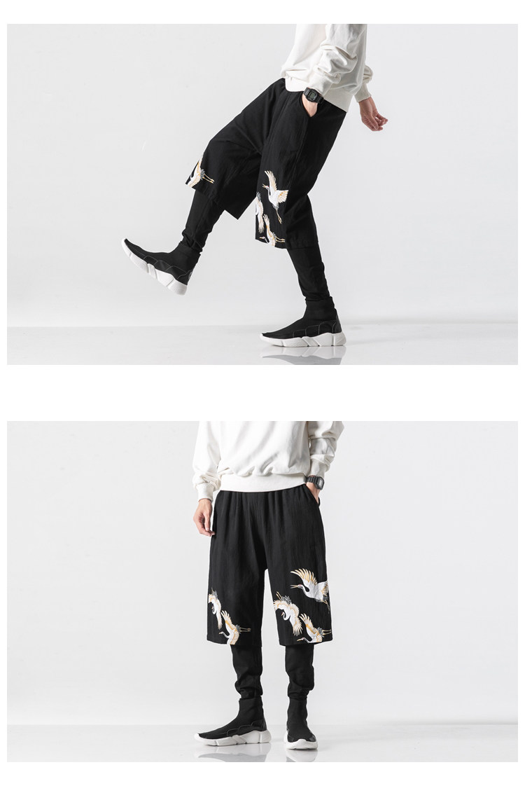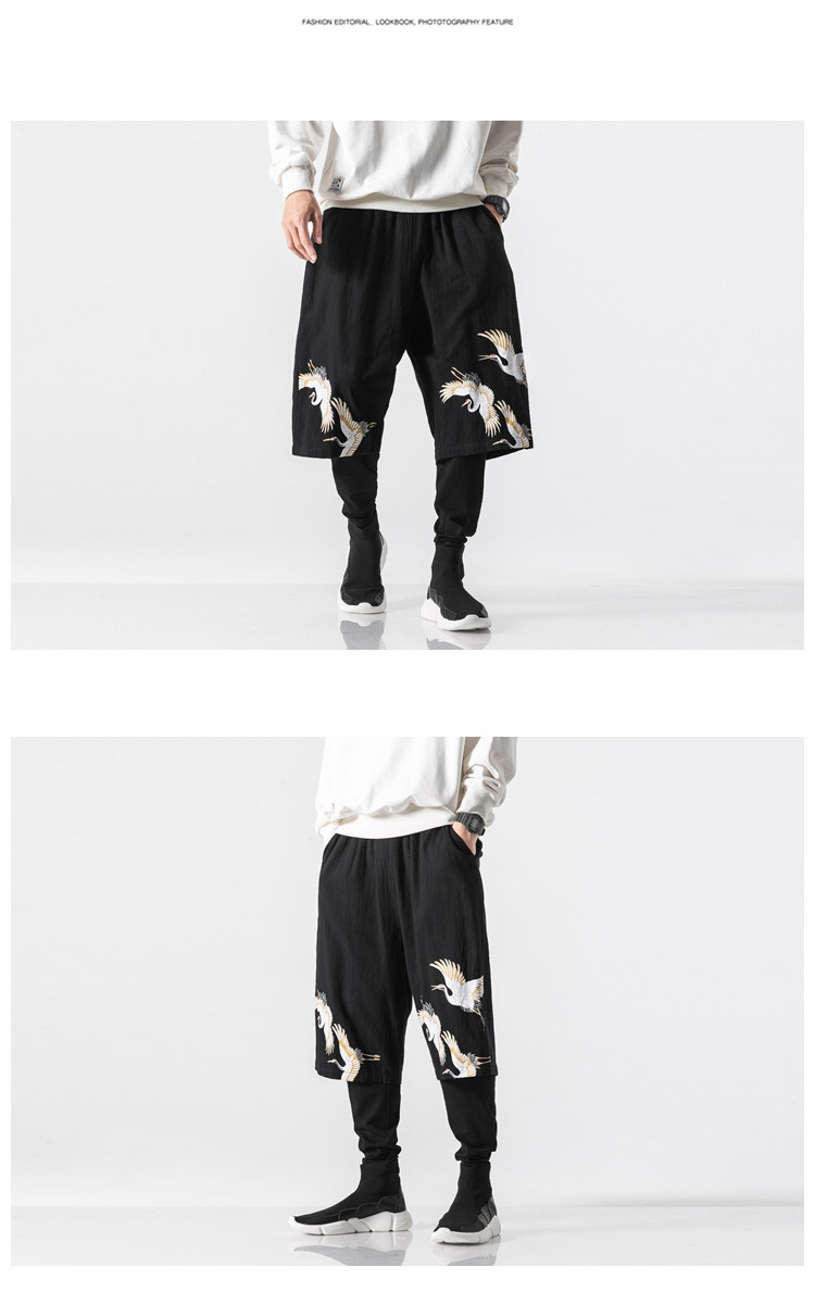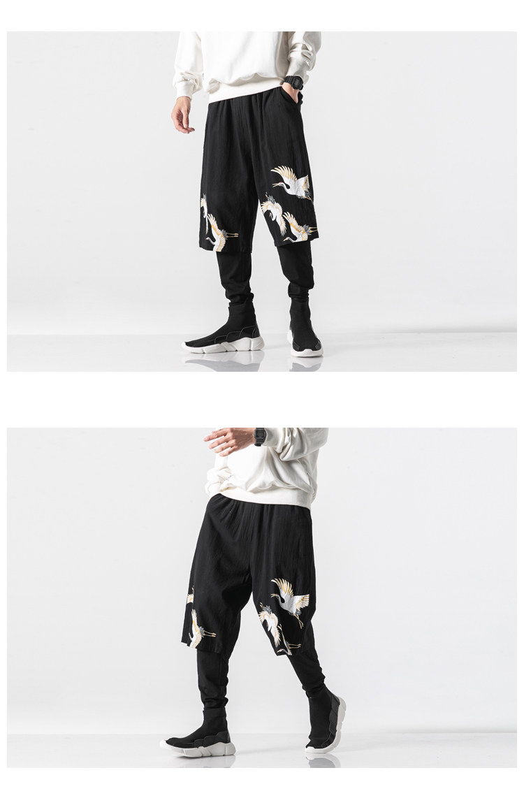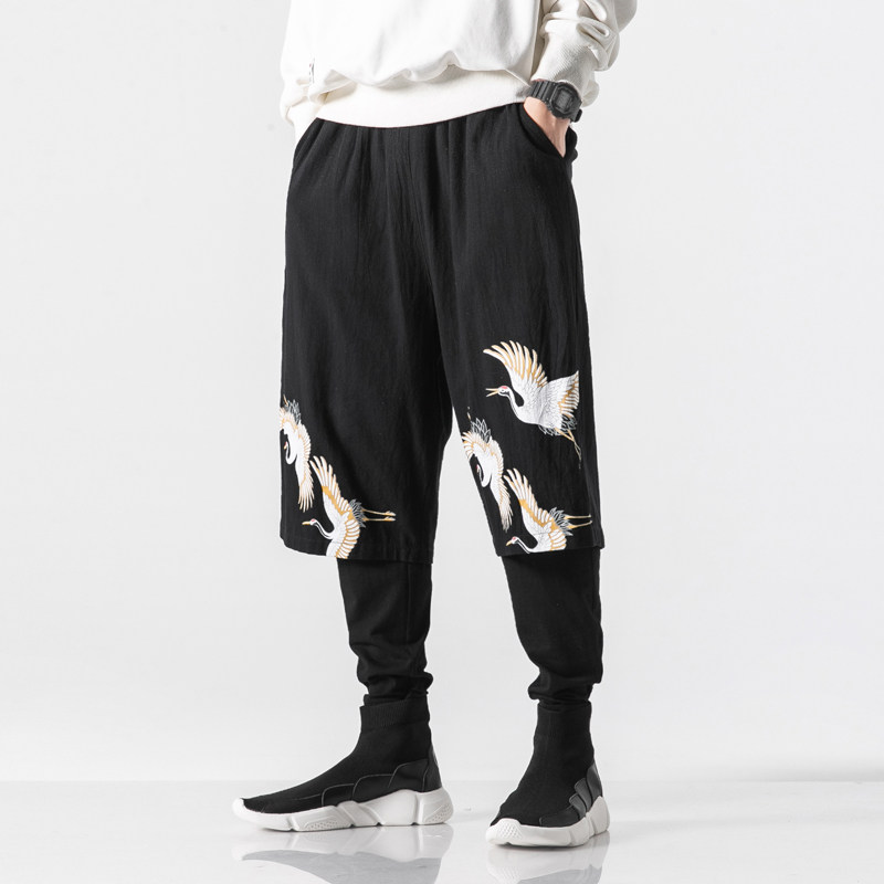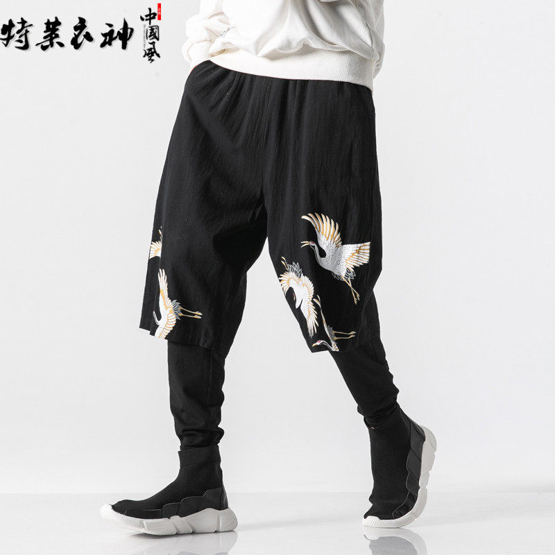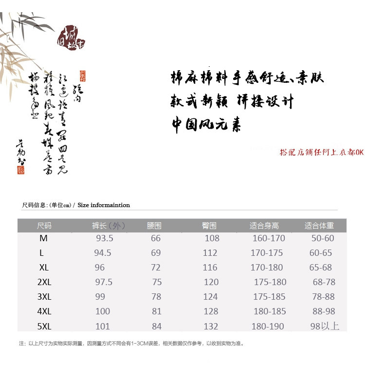 Осенние штаны, комплект, китайский стиль, большой размер, из хлопка и льна
