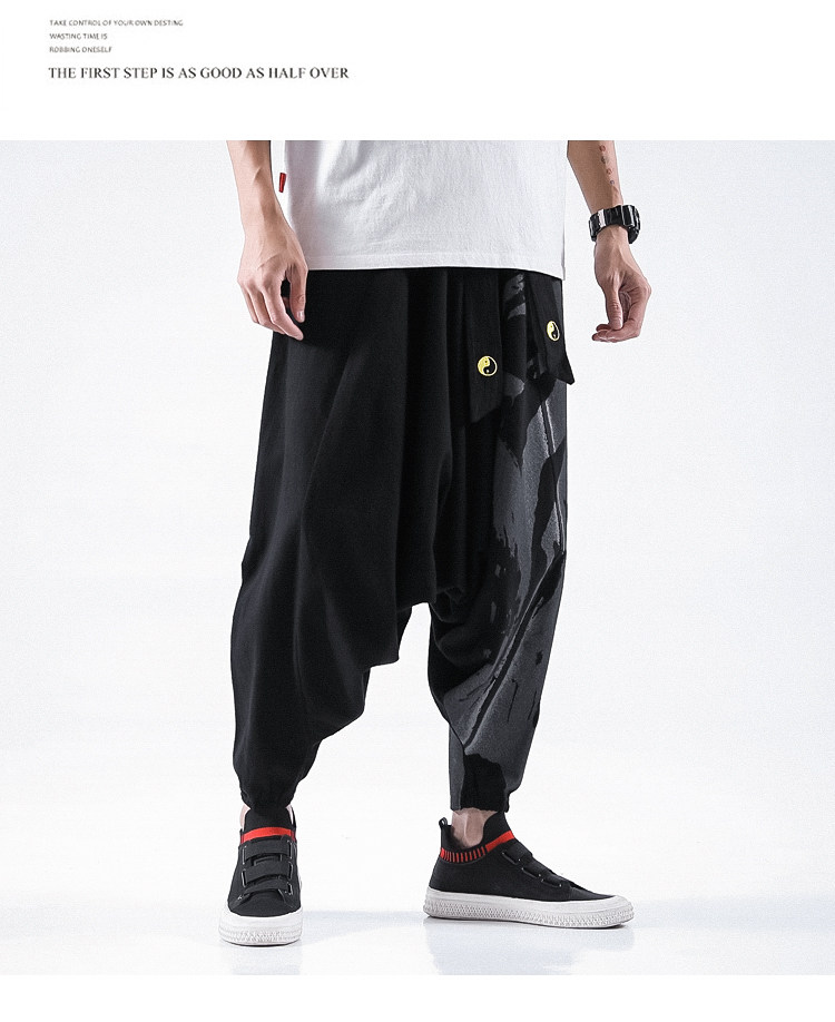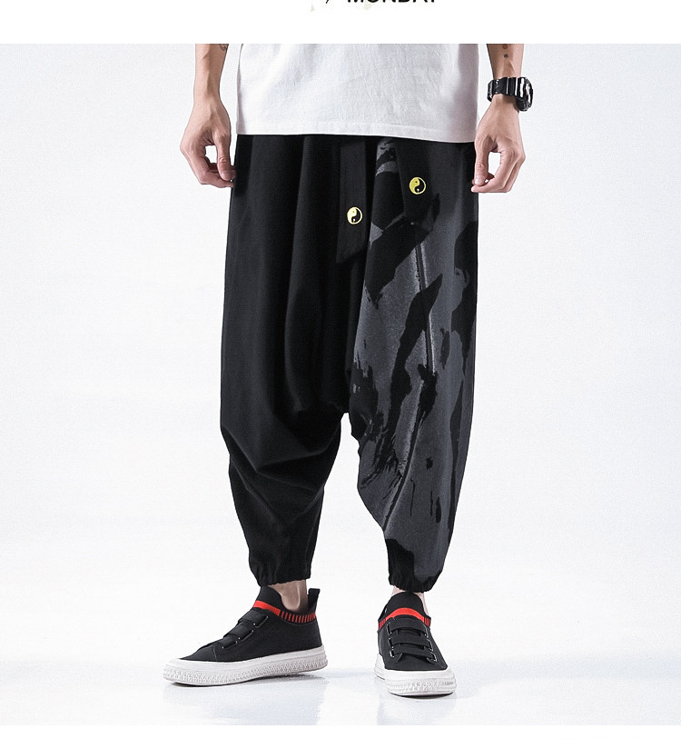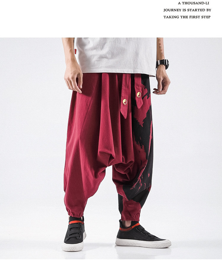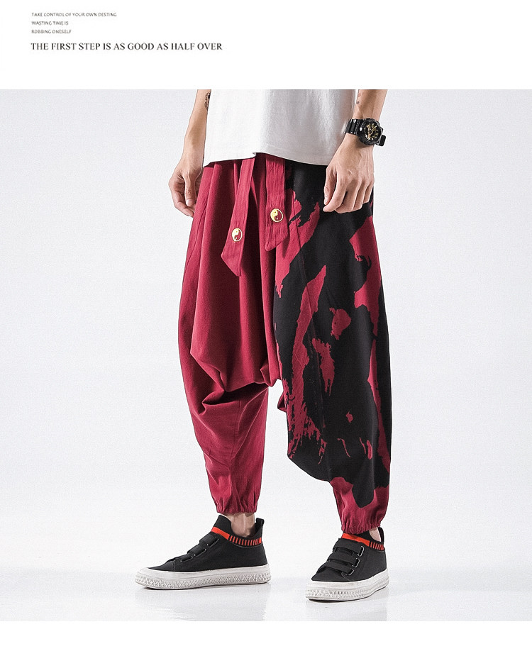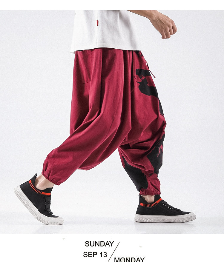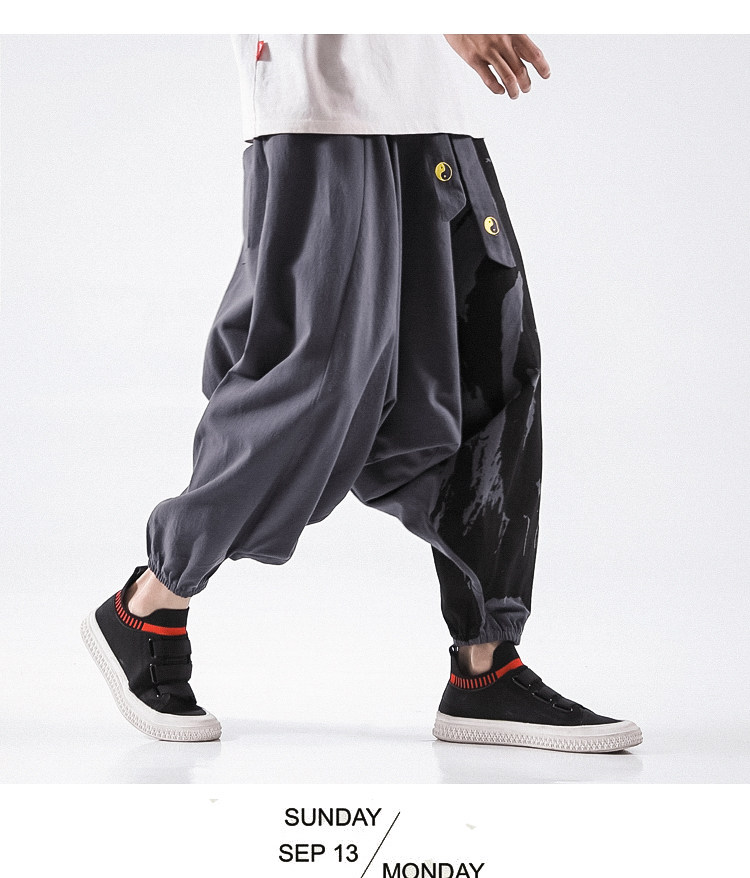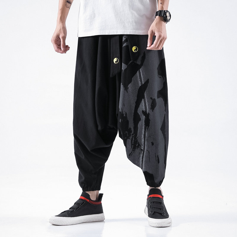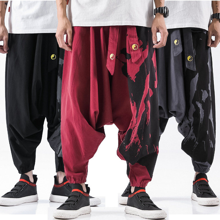 Осенние штаны в стиле хип-хоп, китайский стиль, свободный крой