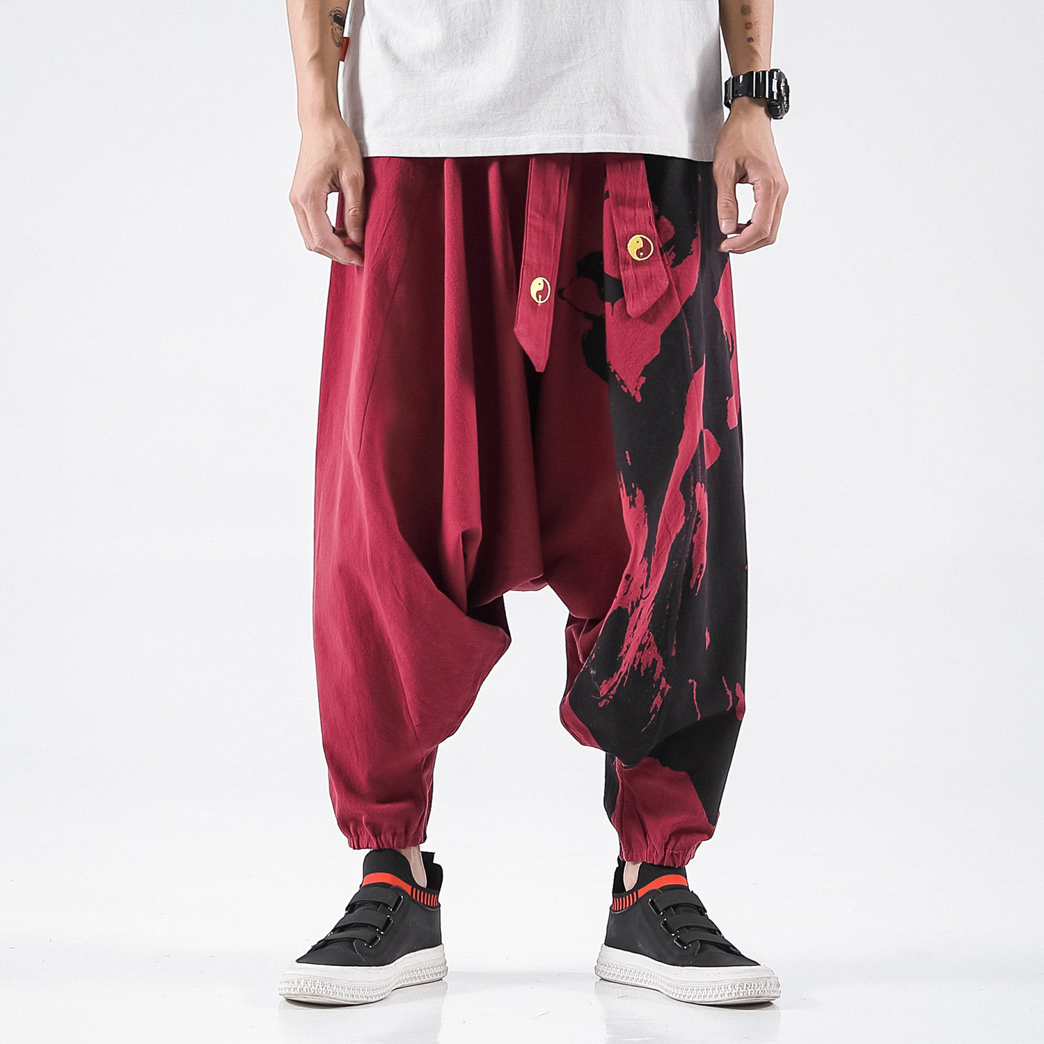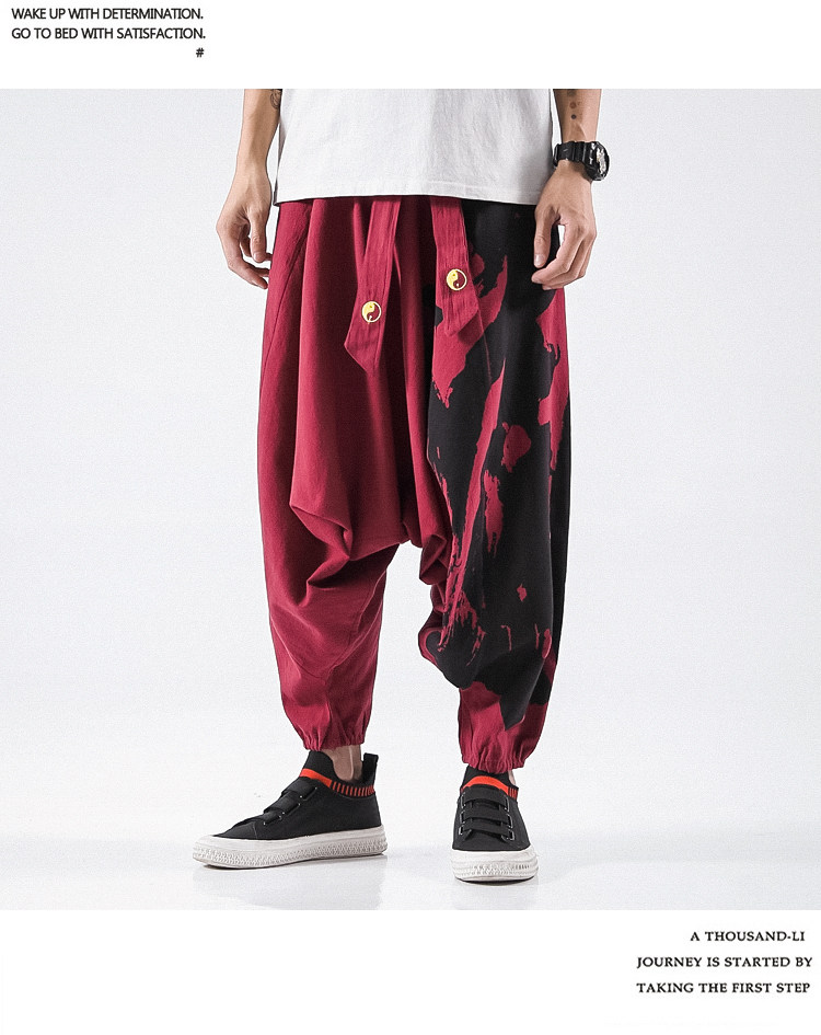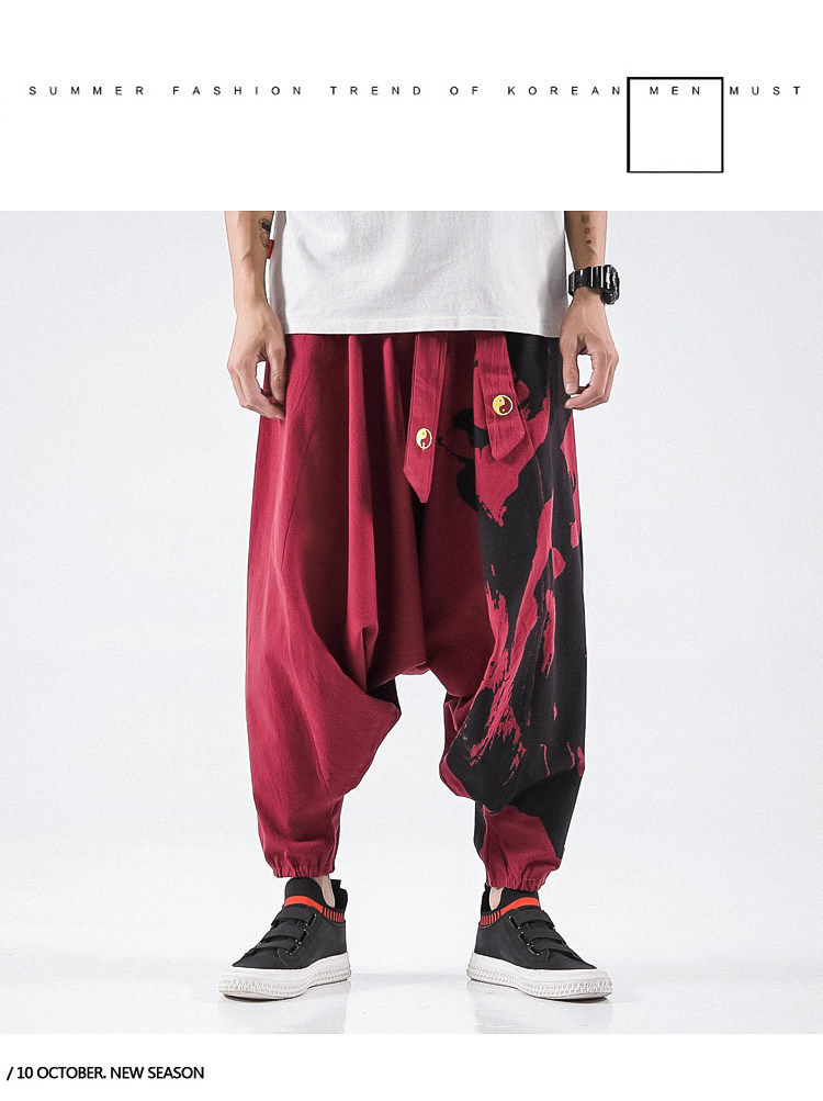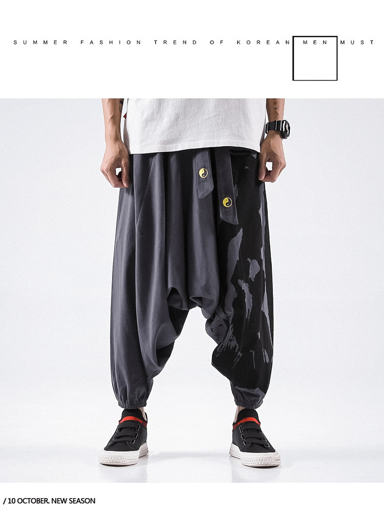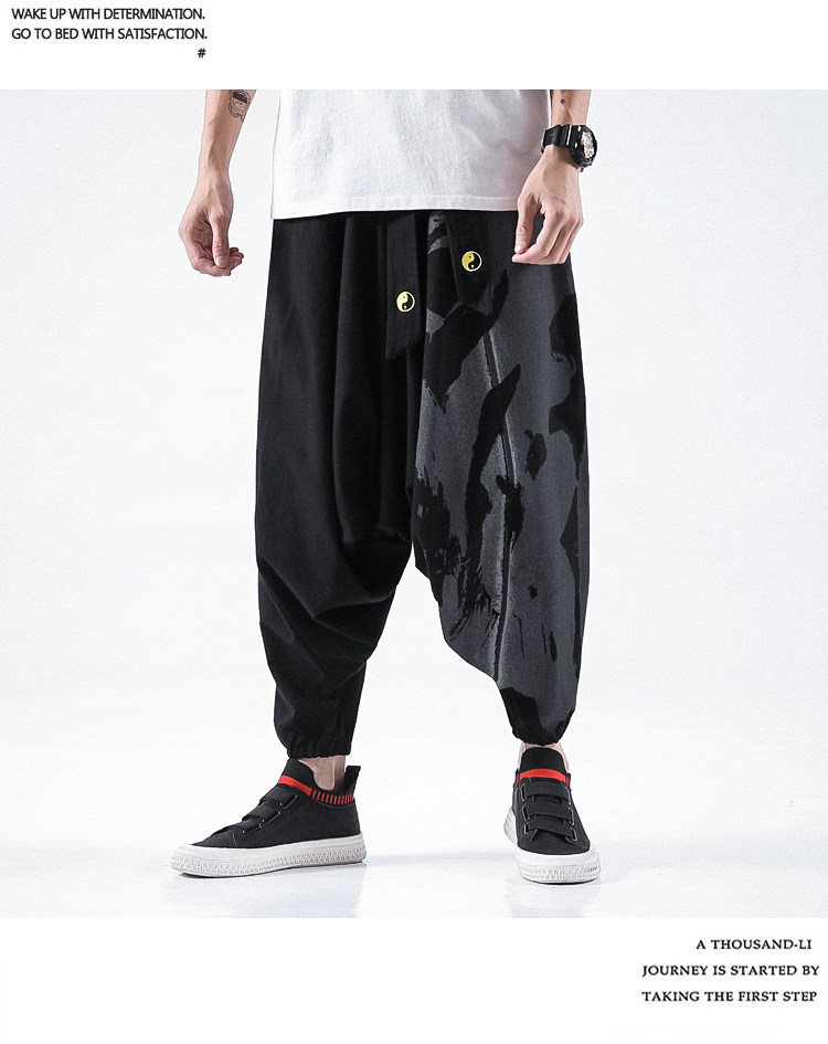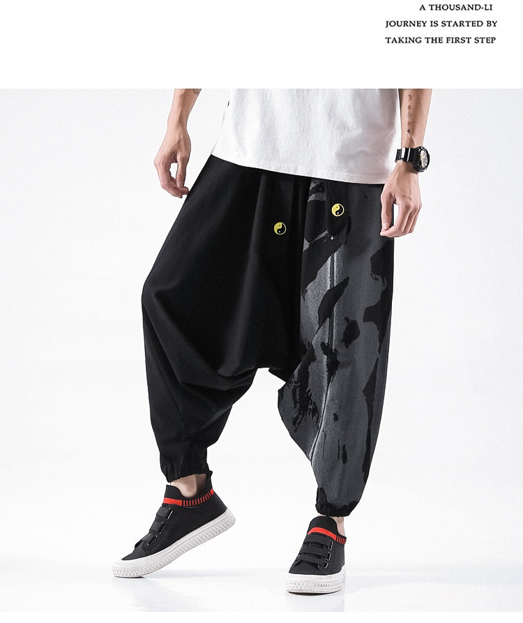 Осенние штаны в стиле хип-хоп, китайский стиль, свободный крой