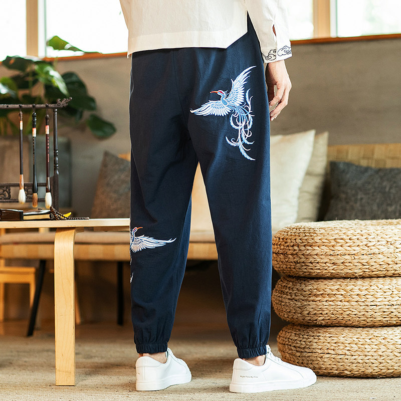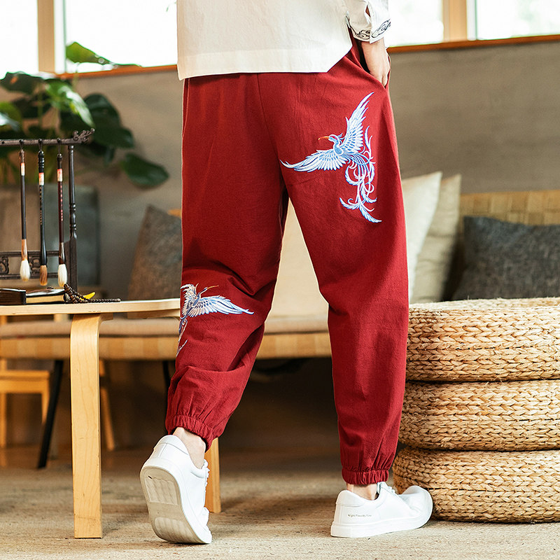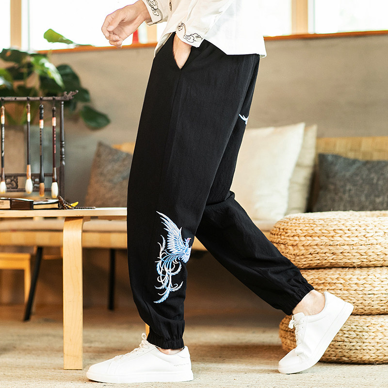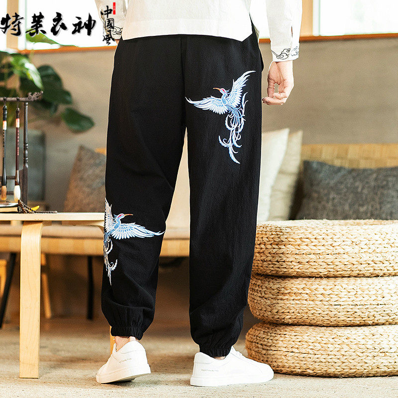 Мужские штаны, большой размер, китайский стиль, с вышивкой, оверсайз