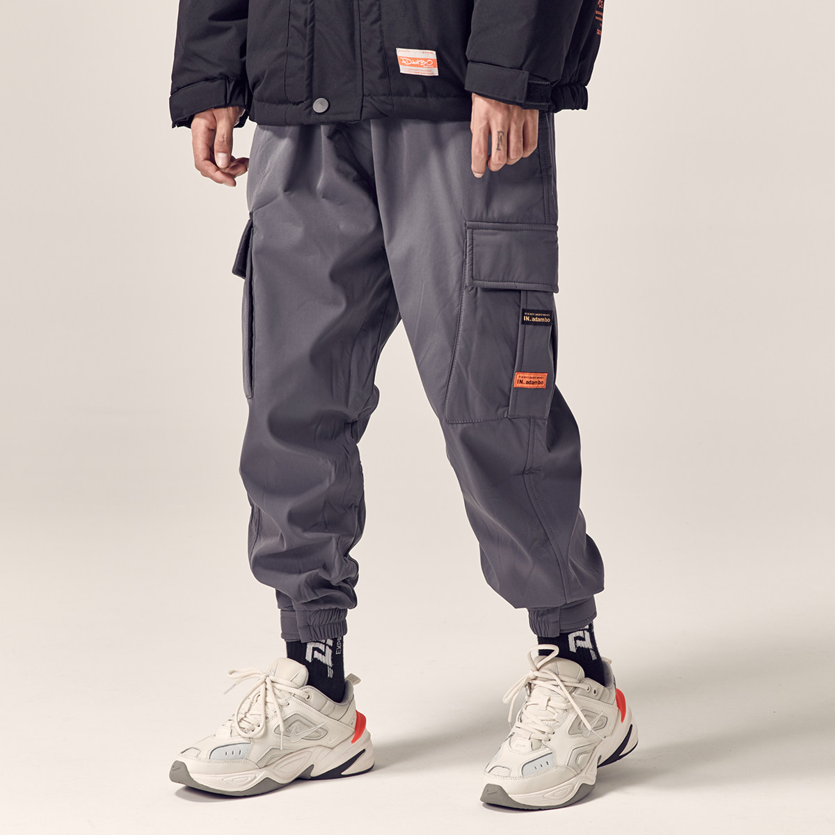 Мужские утепленные трендовые универсальные брендовые штаны на липучке, оверсайз