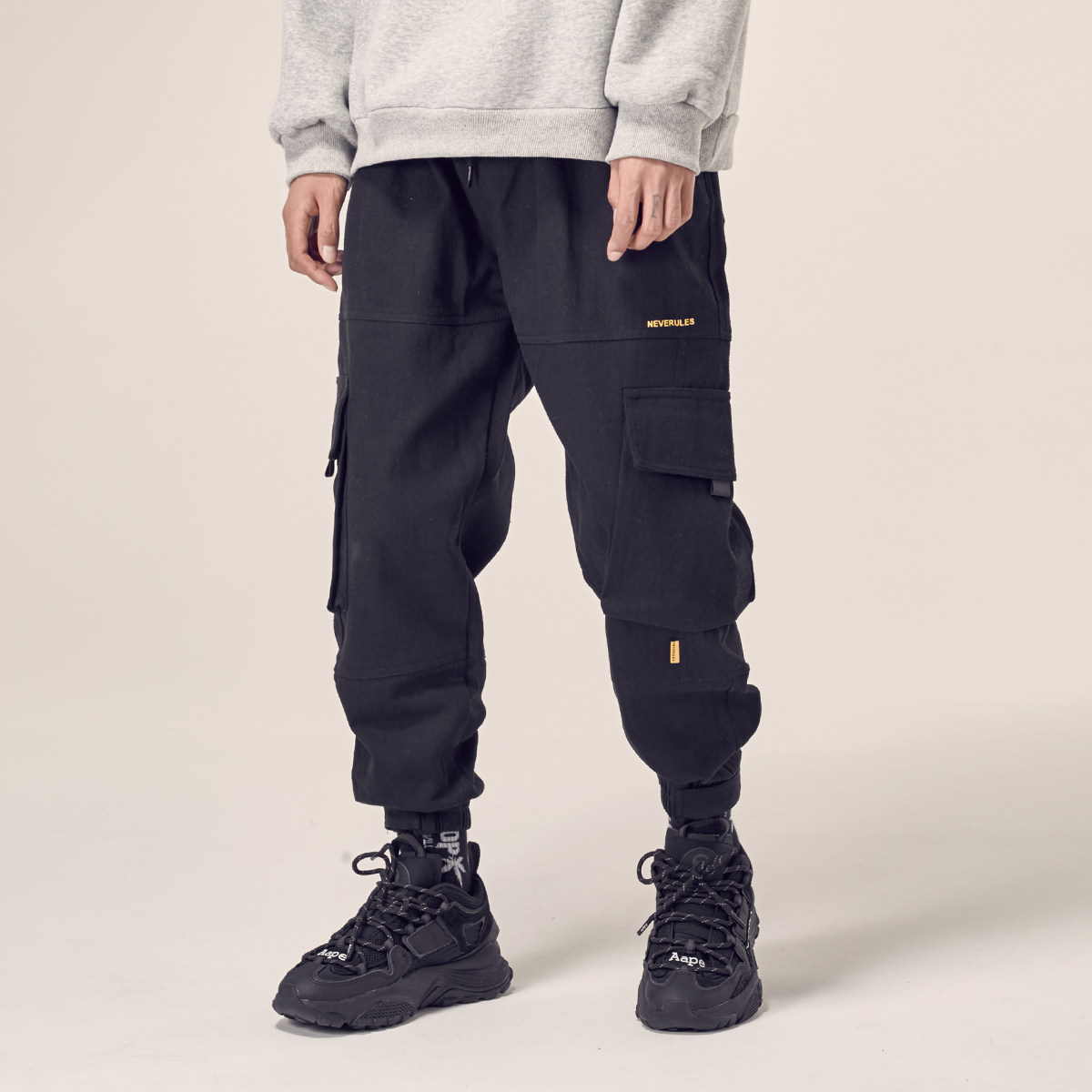 Мужские зимние трендовые штаны на липучке, в американском стиле, оверсайз