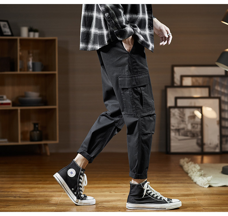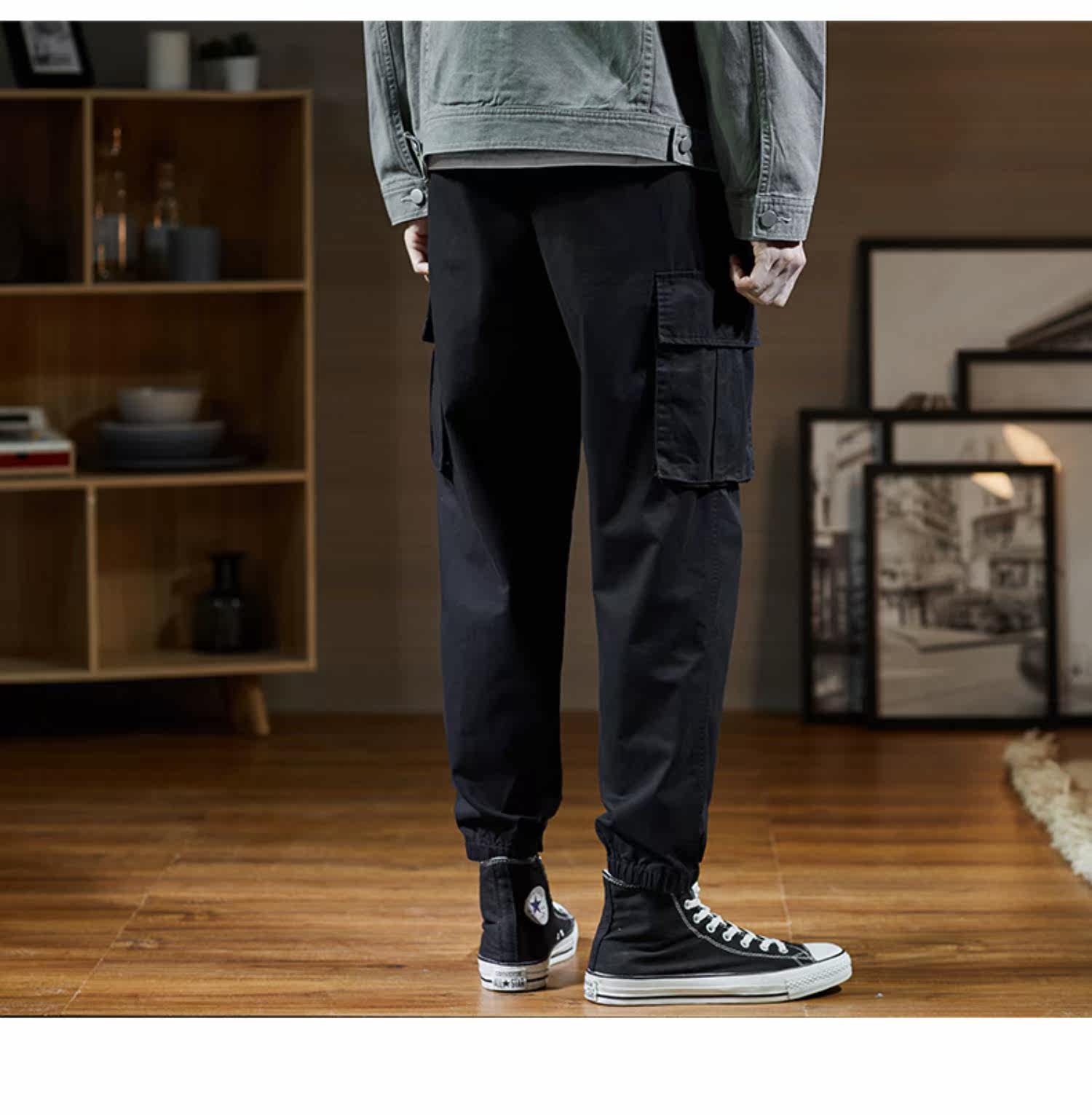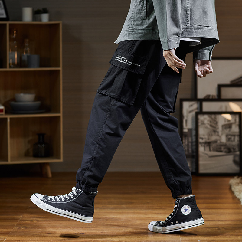Черные трендовые штаны, 2020, в корейском стиле, свободный прямой крой