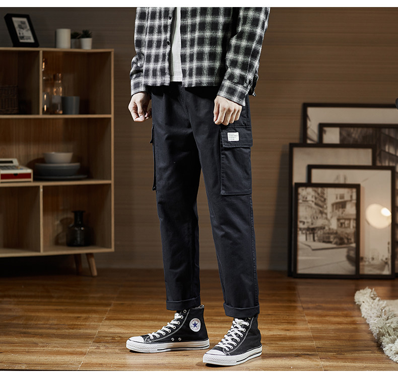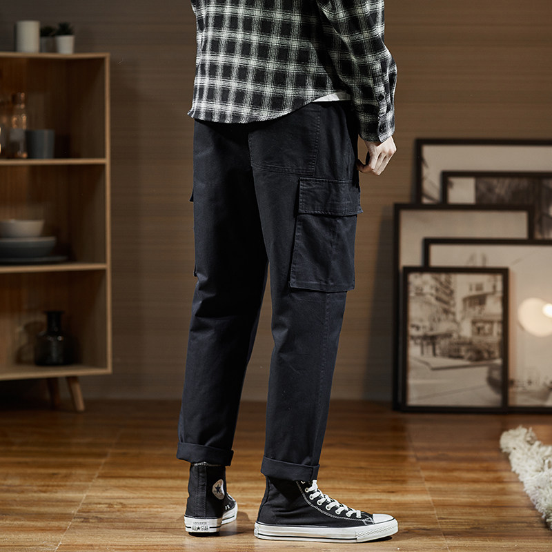 Весенние черные трендовые штаны для отдыха, свободный прямой крой, в корейском стиле