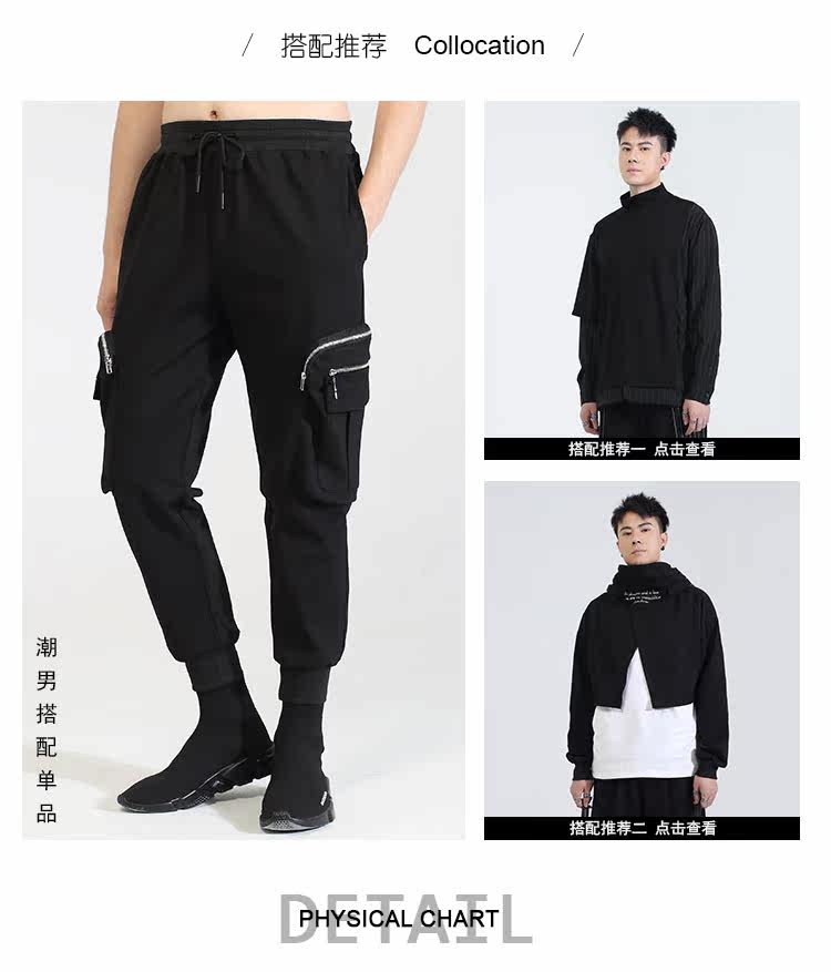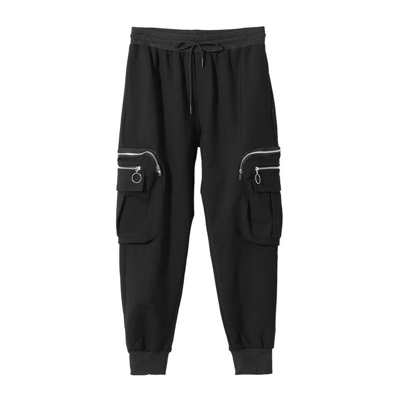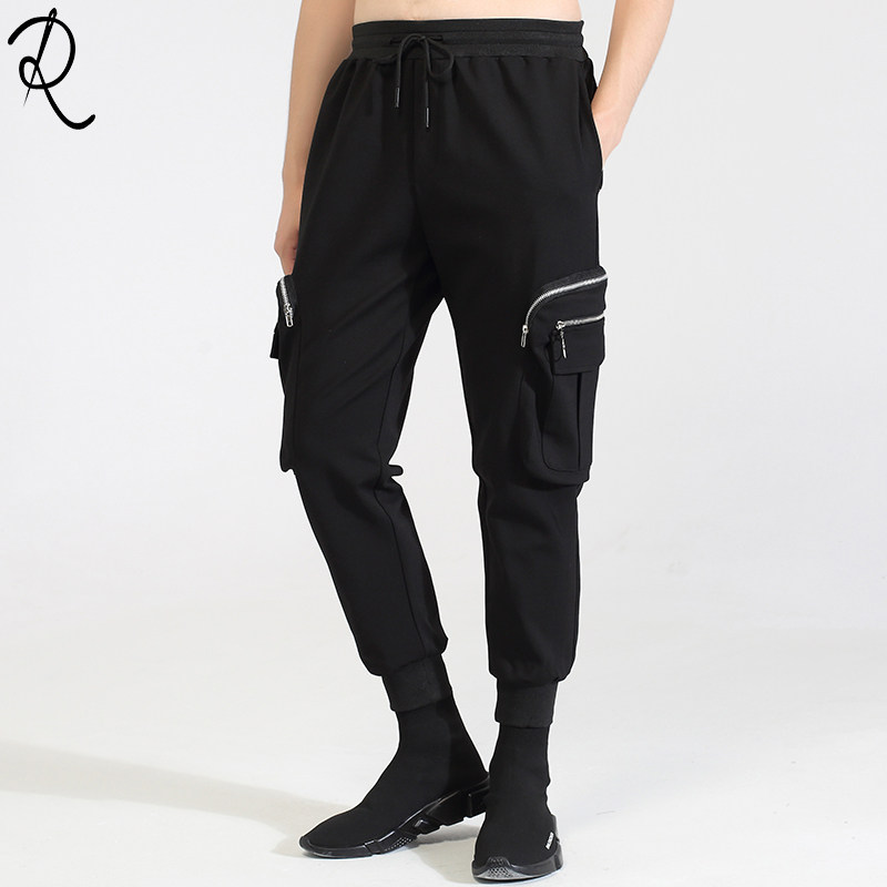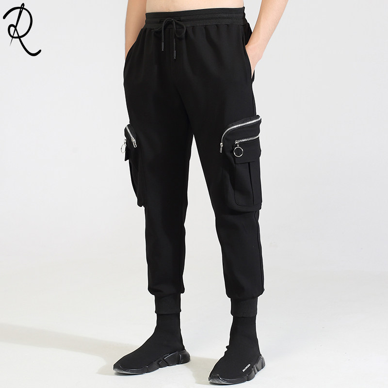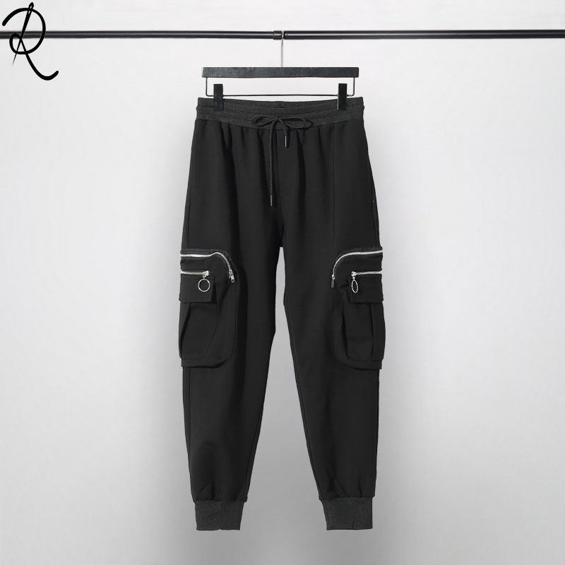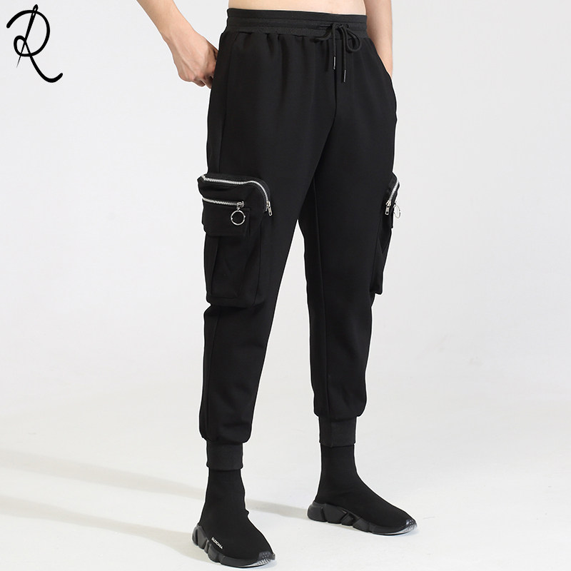 Модная мужская осенне-зимняя одежда, оригинальный модный бренд, темный стиль, индивидуальное вшивание карманов на молнии, повседневный галстук на щиколотке, брюки-девятиминутки на небольшую ногу для мужчин.
