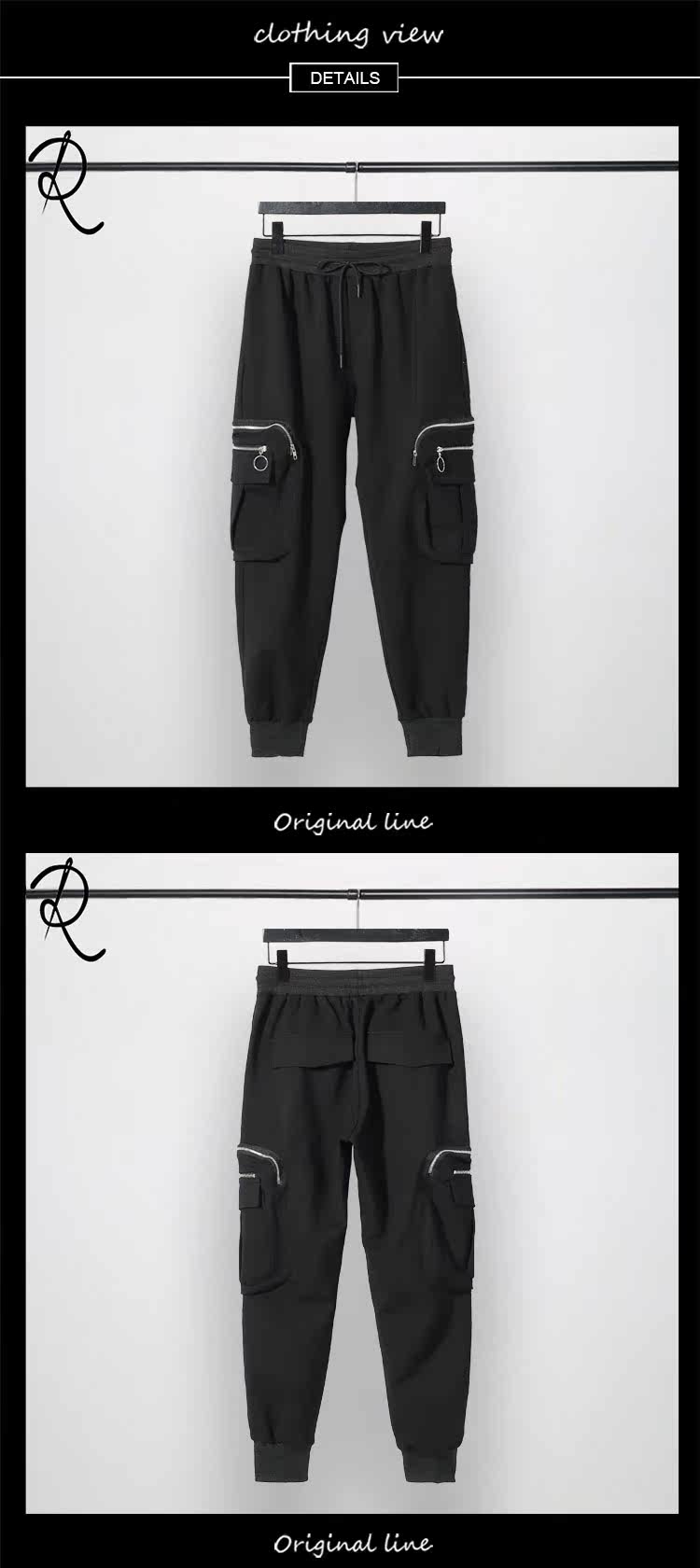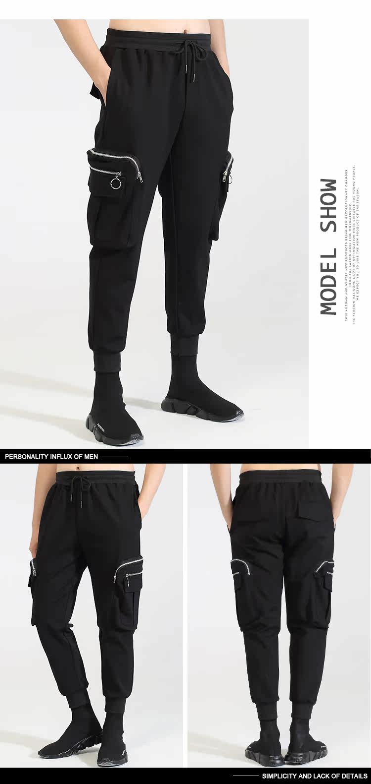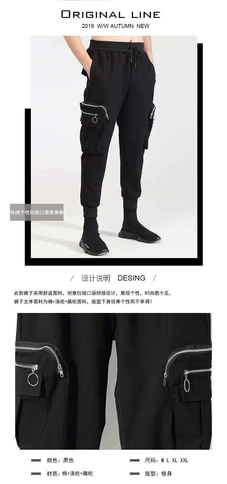 Модная мужская осенне-зимняя одежда, оригинальный модный бренд, темный стиль, индивидуальное вшивание карманов на молнии, повседневный галстук на щиколотке, брюки-девятиминутки на небольшую ногу для мужчин.