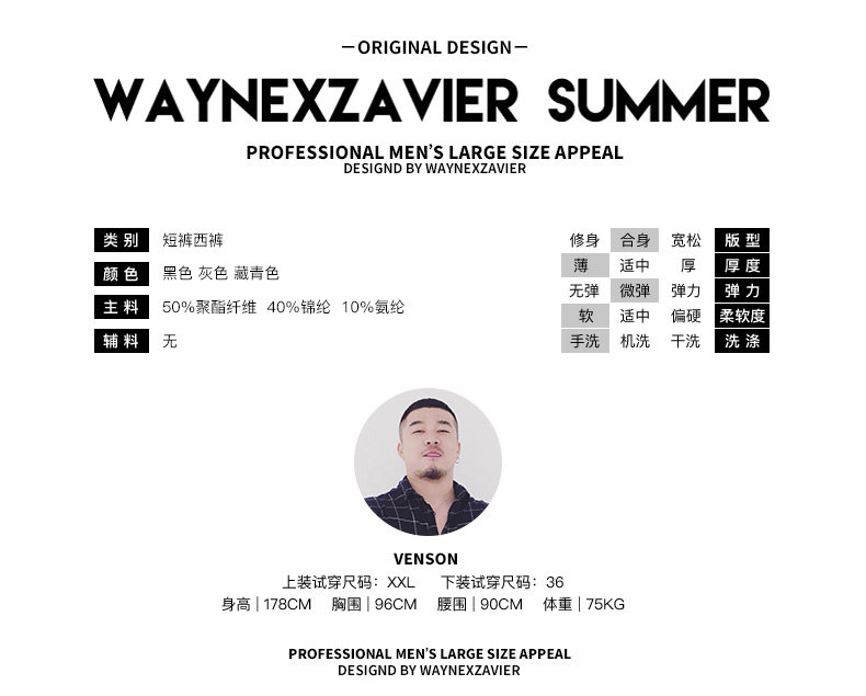 Уэйневиль плюс удобрения увеличивает деловое повседневное комбинация больших размеров, анти -wrinke, тонкие шорты с тонкими шортами, мужчины 6320