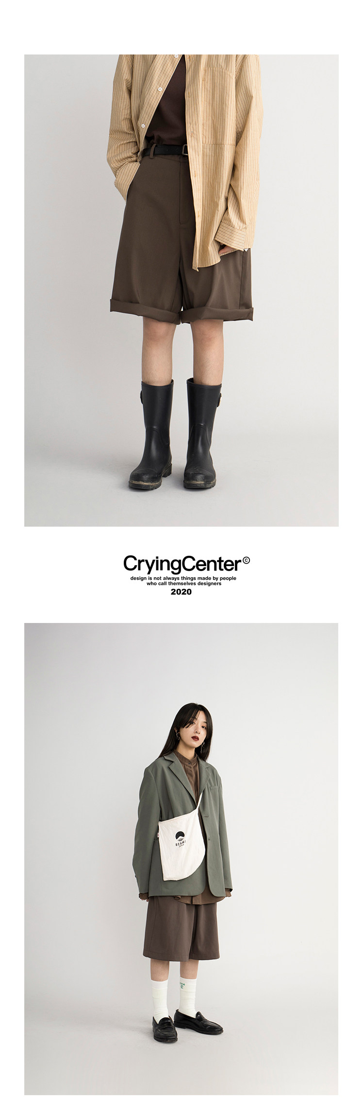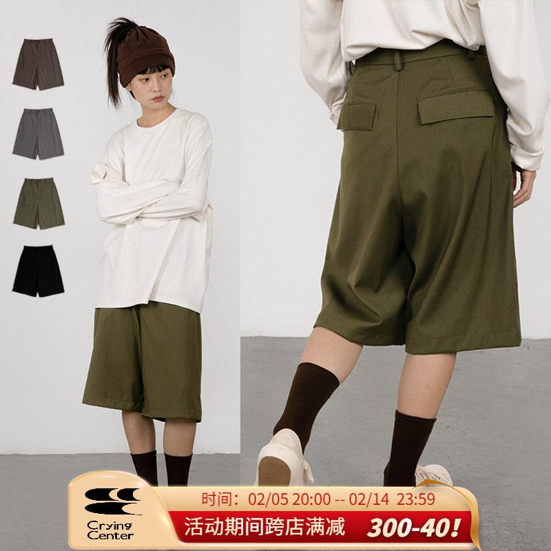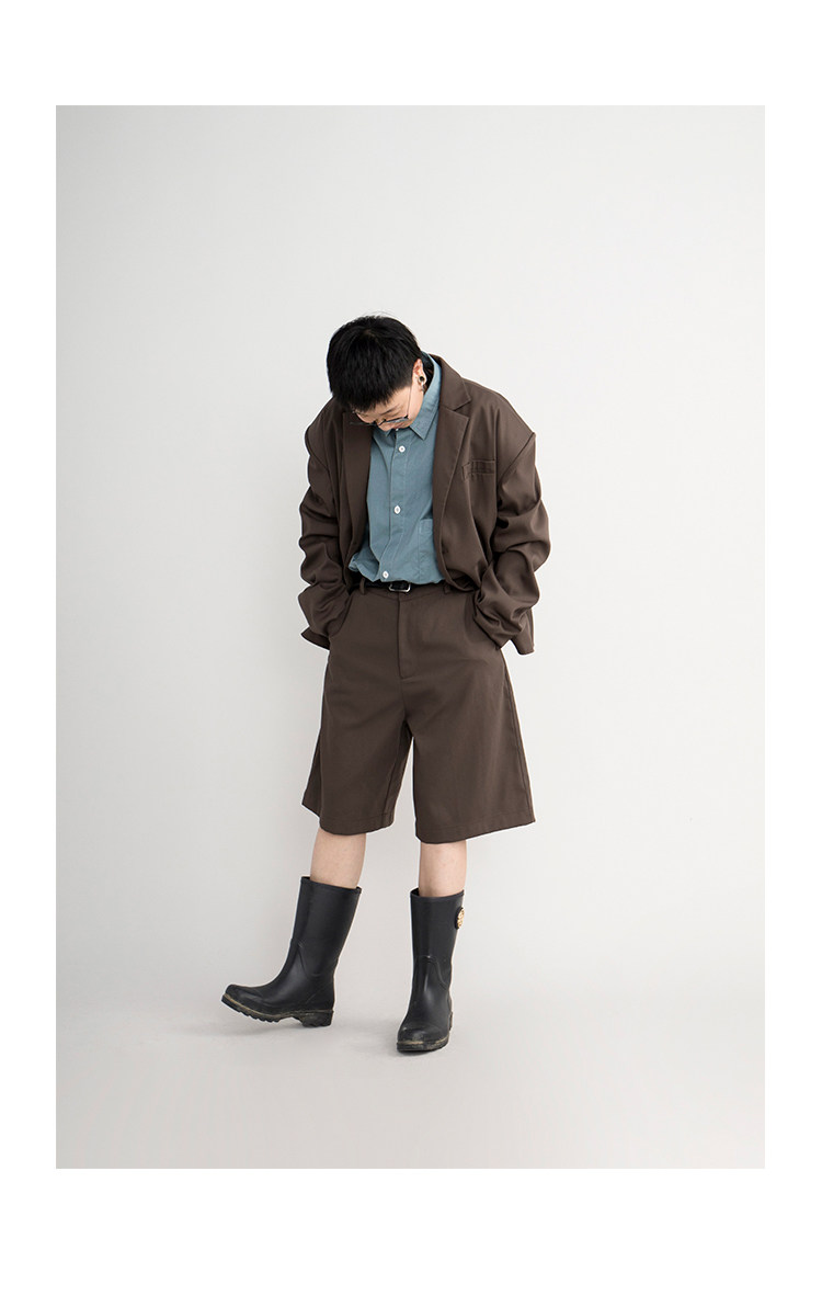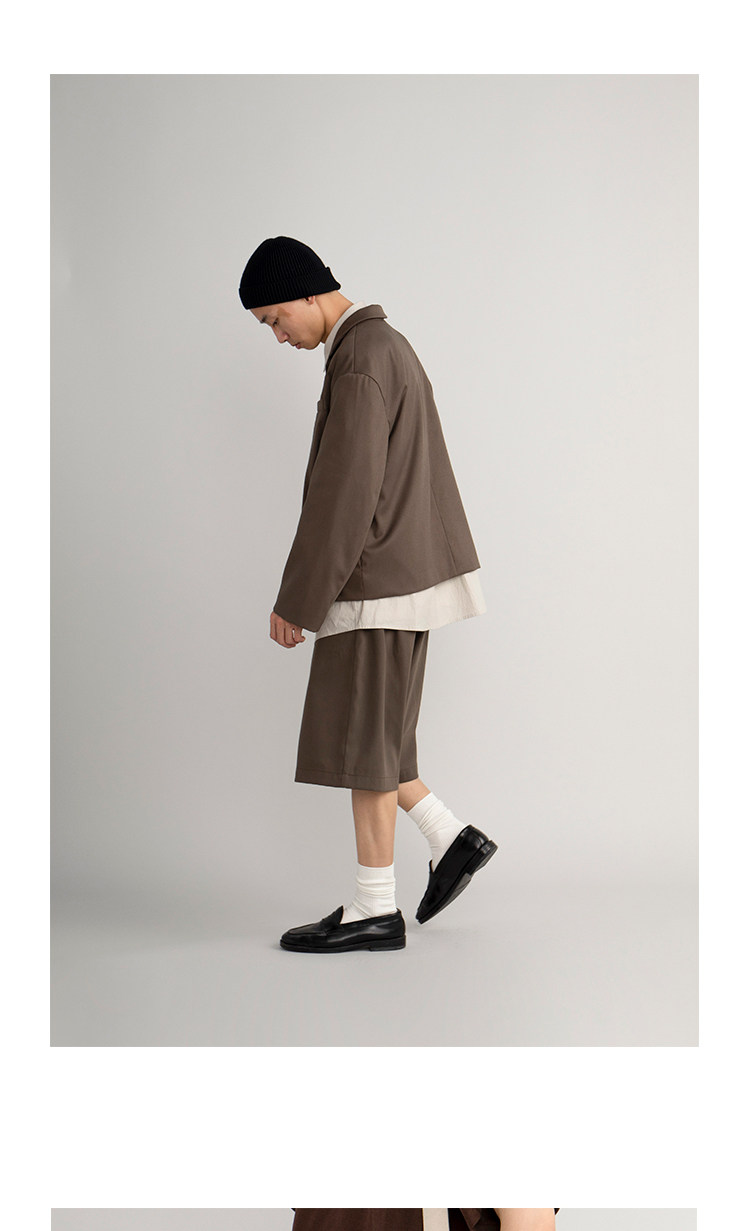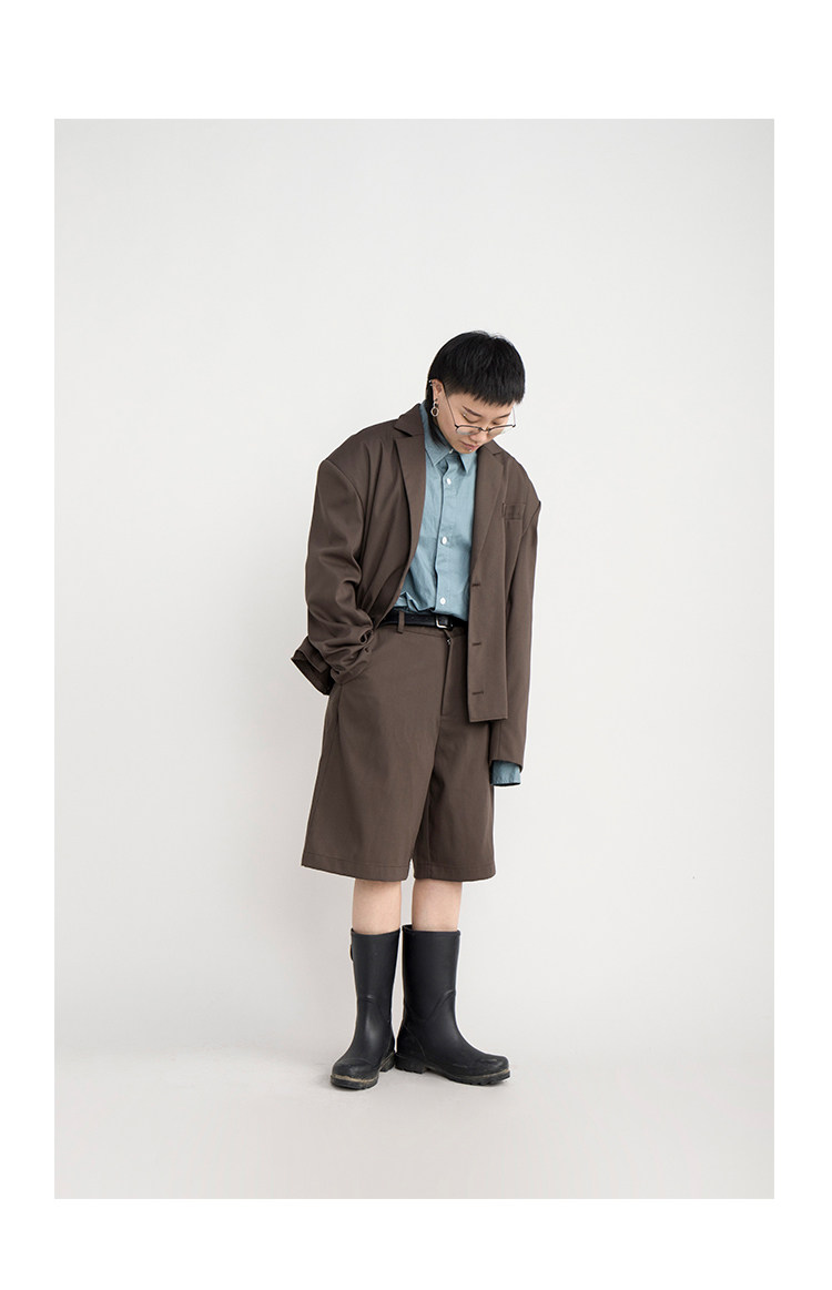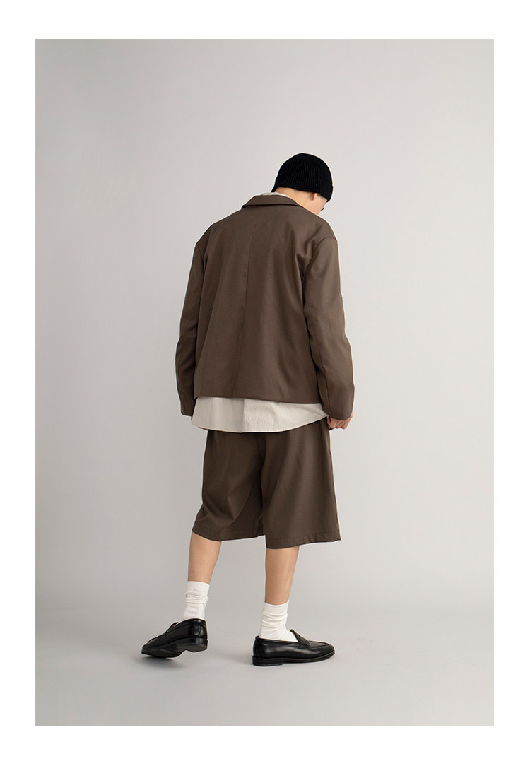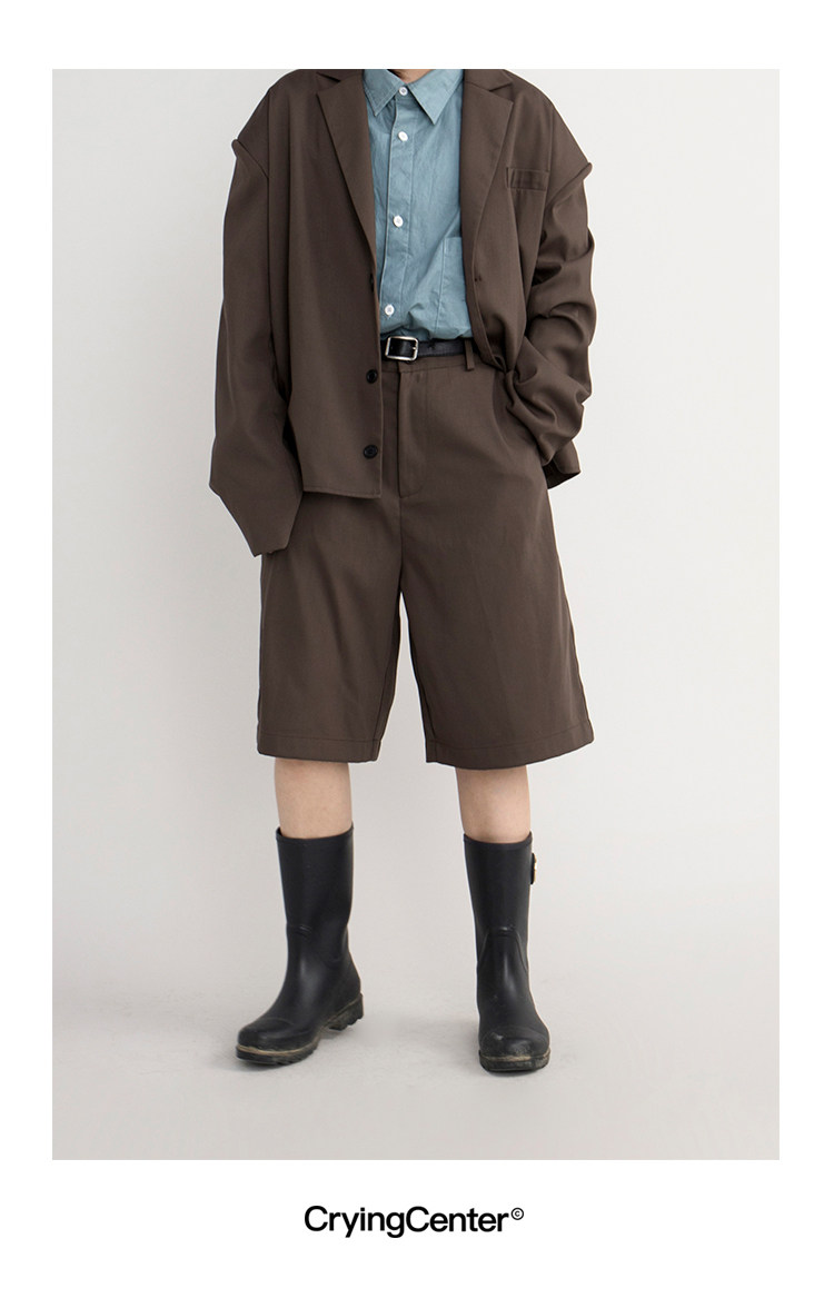 CryingCenter Японский коричневый пиджак классического кроя, ткань, комплект, шорты, свободный прямой крой