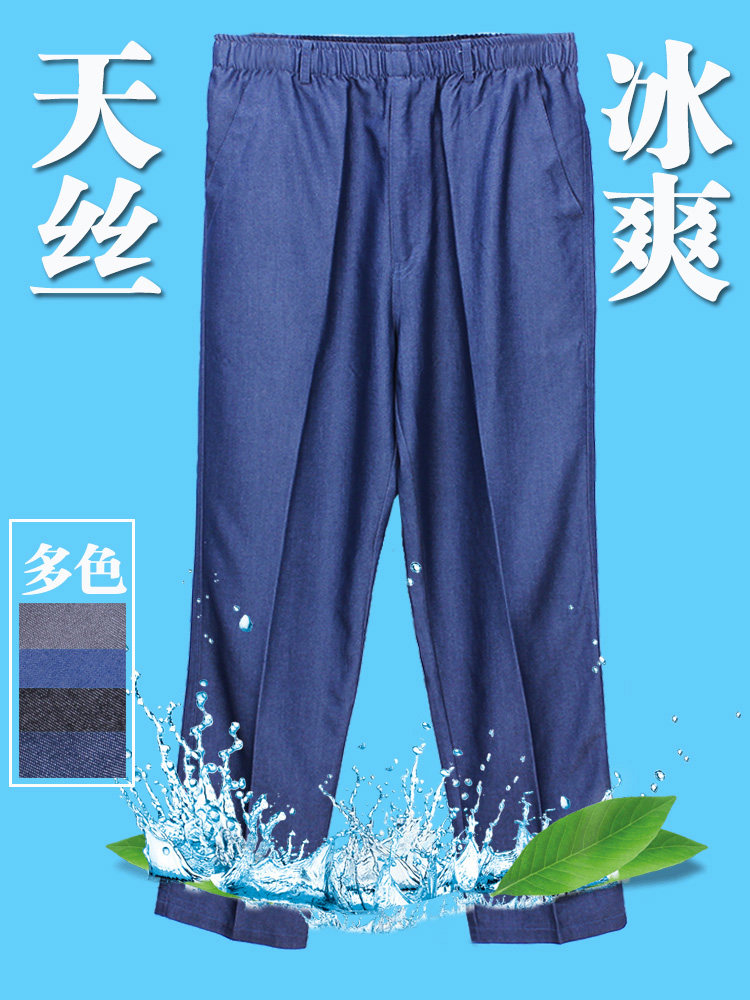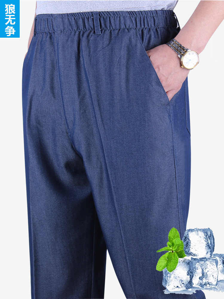 Шелковые джинсы для мальчиков, штаны, для среднего возраста, эластичная талия, высокая талия