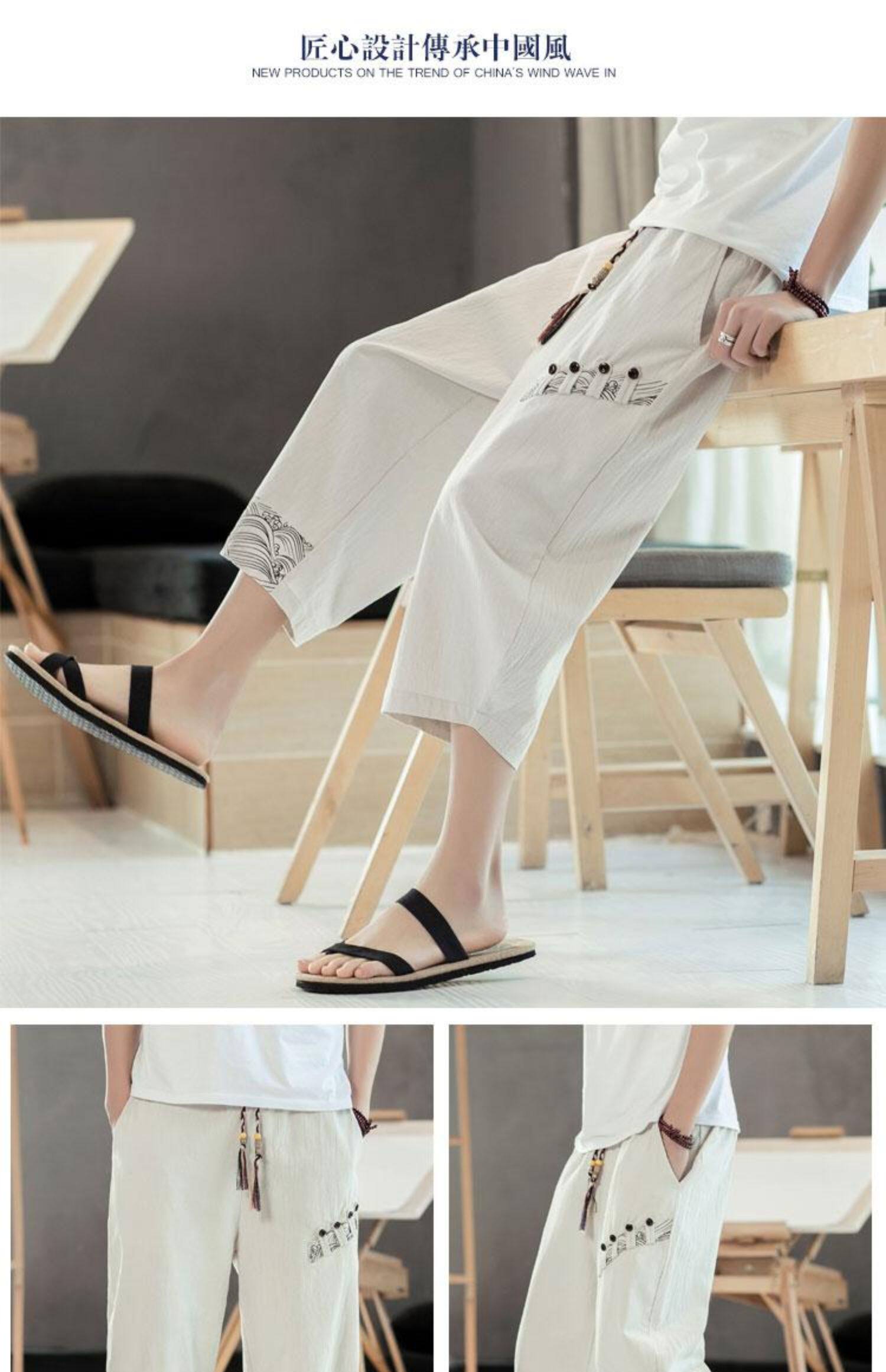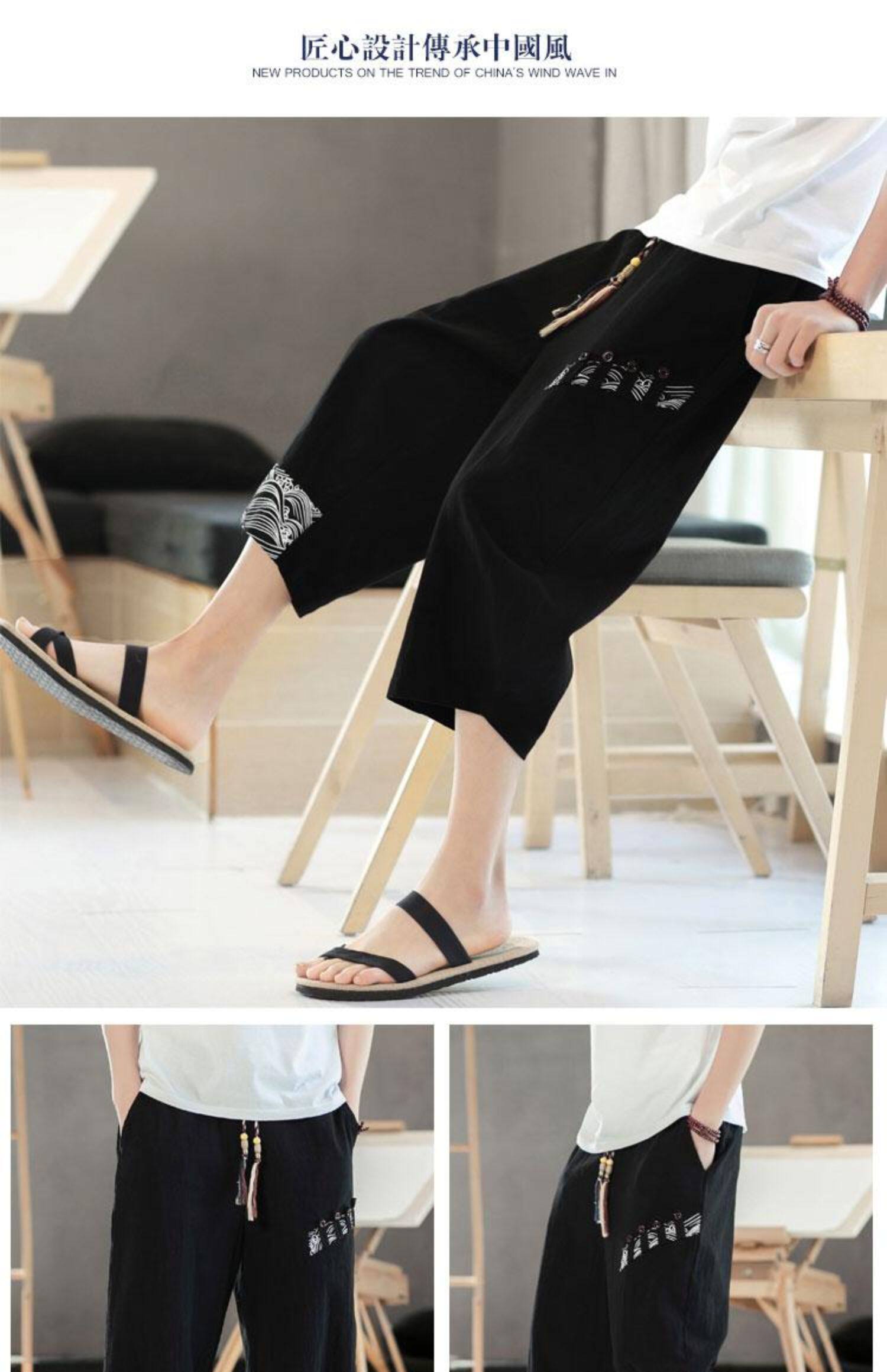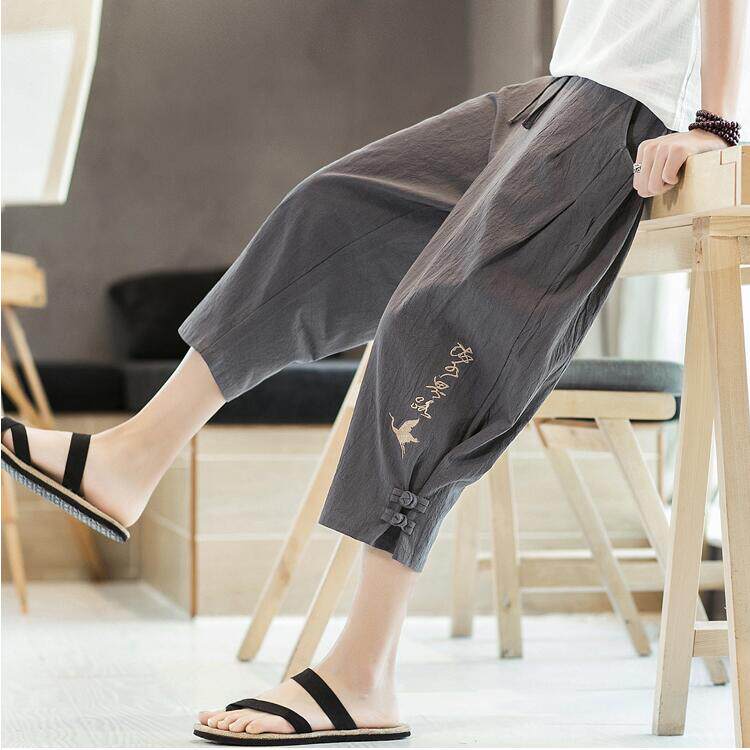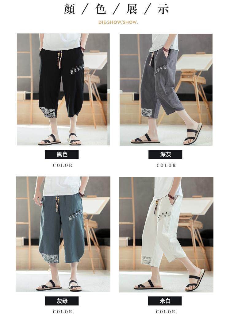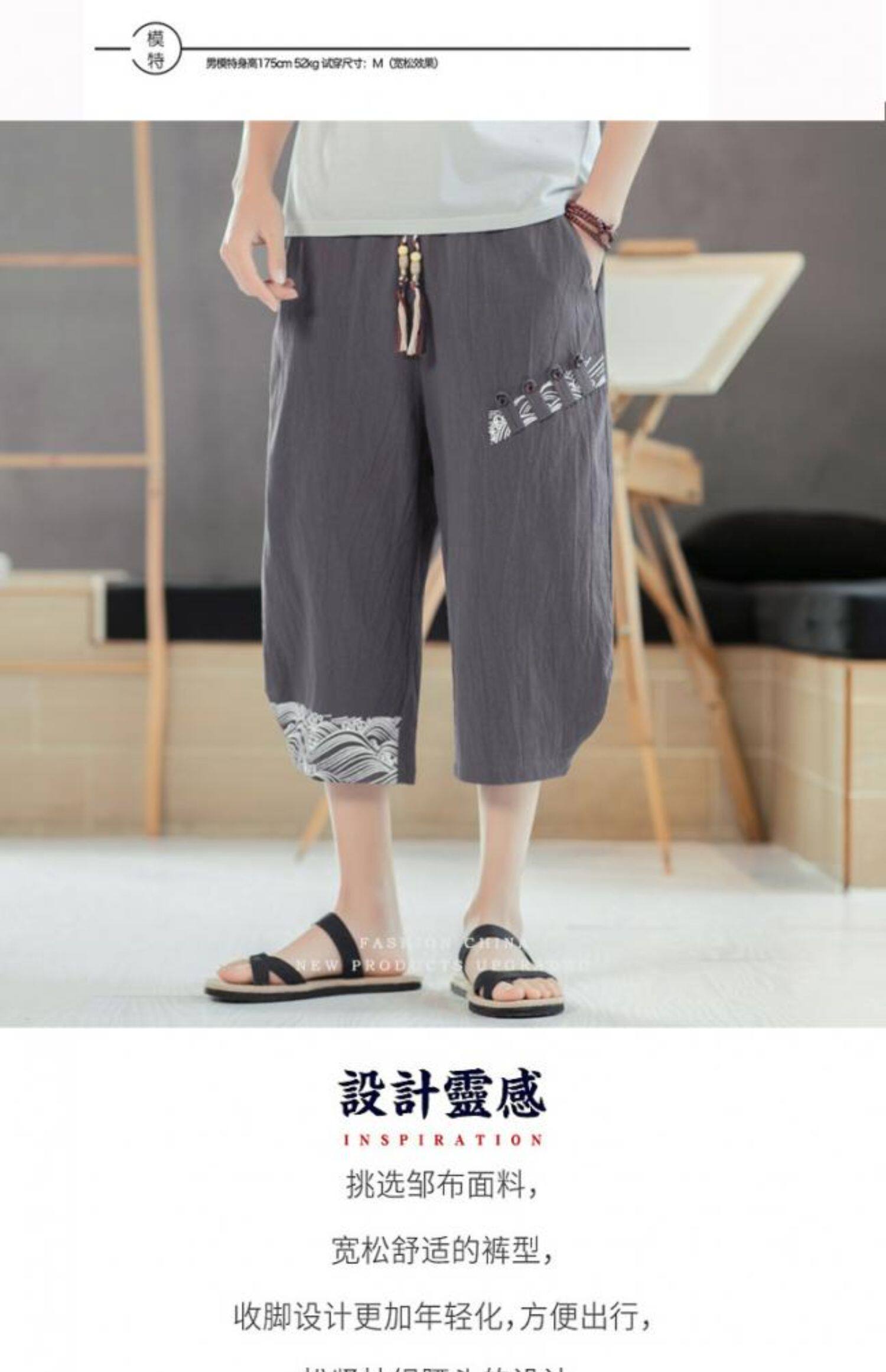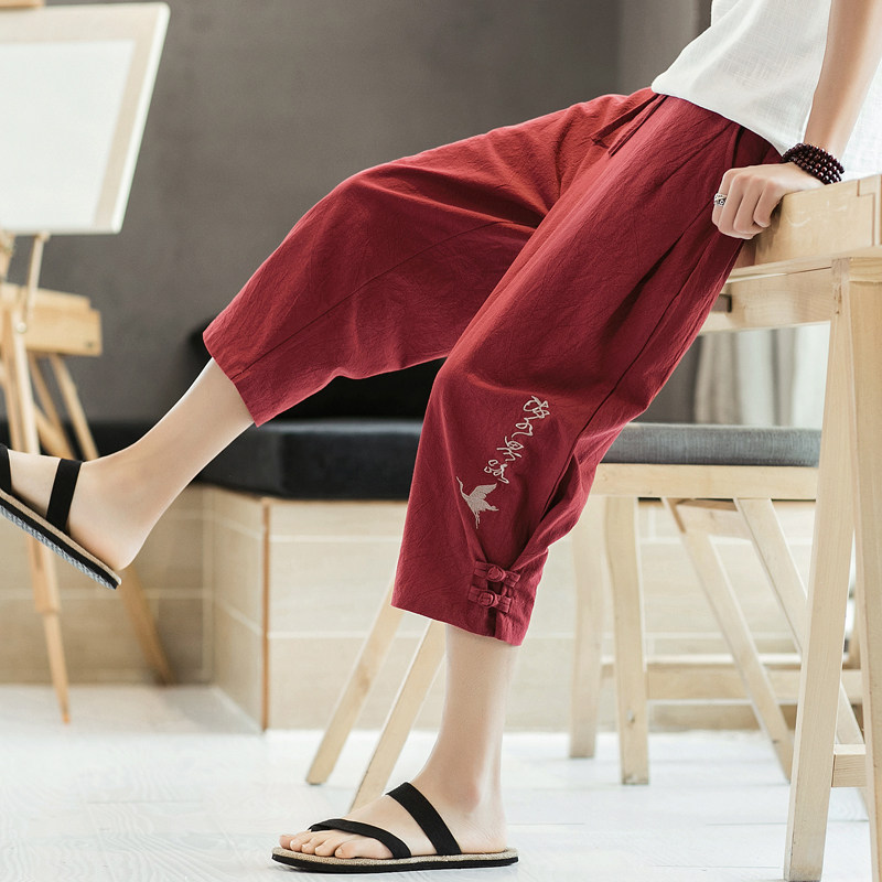 Мужские летние тонкие штаны, пляжные шорты, из хлопка и льна, китайский стиль
