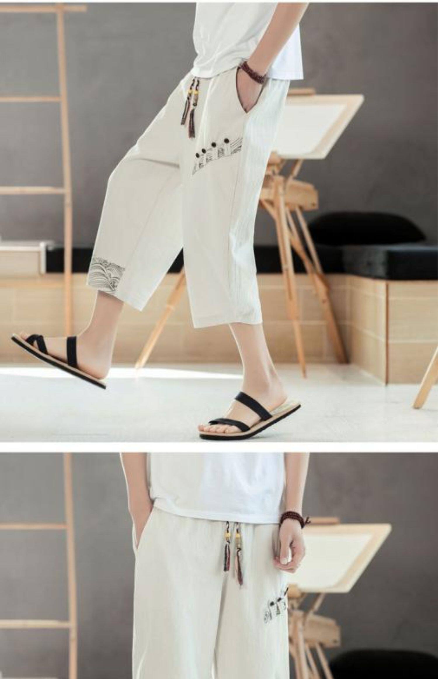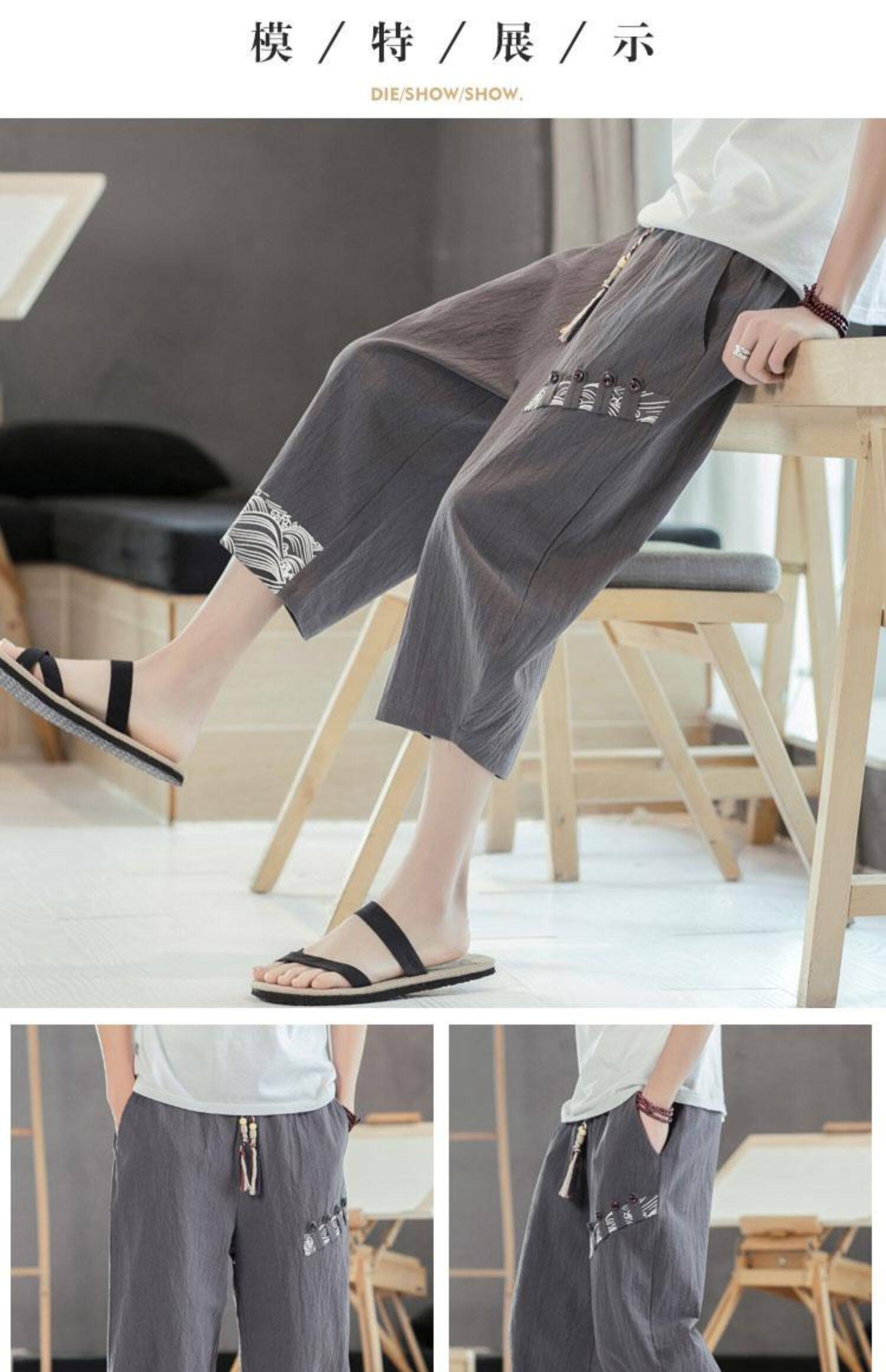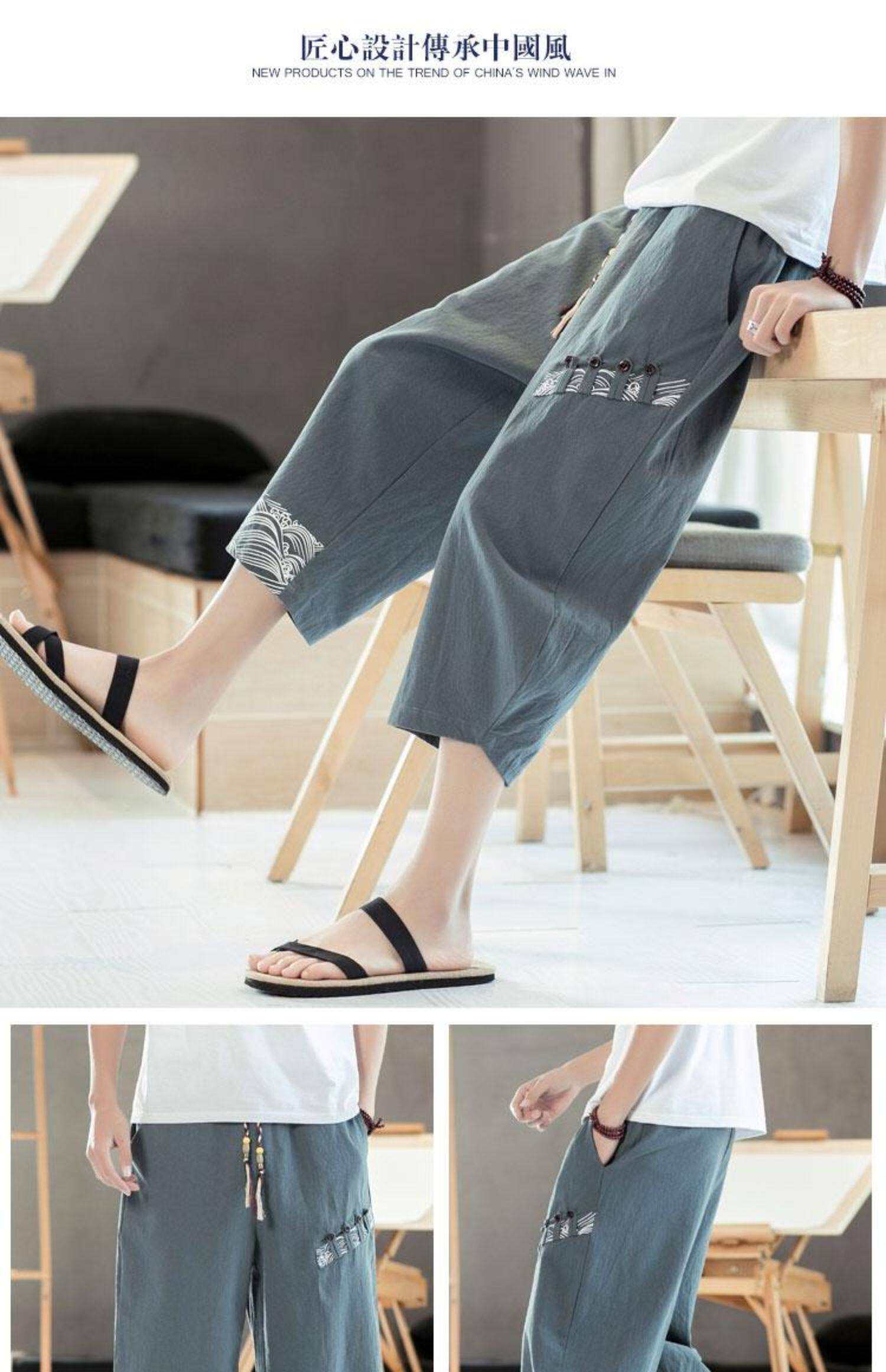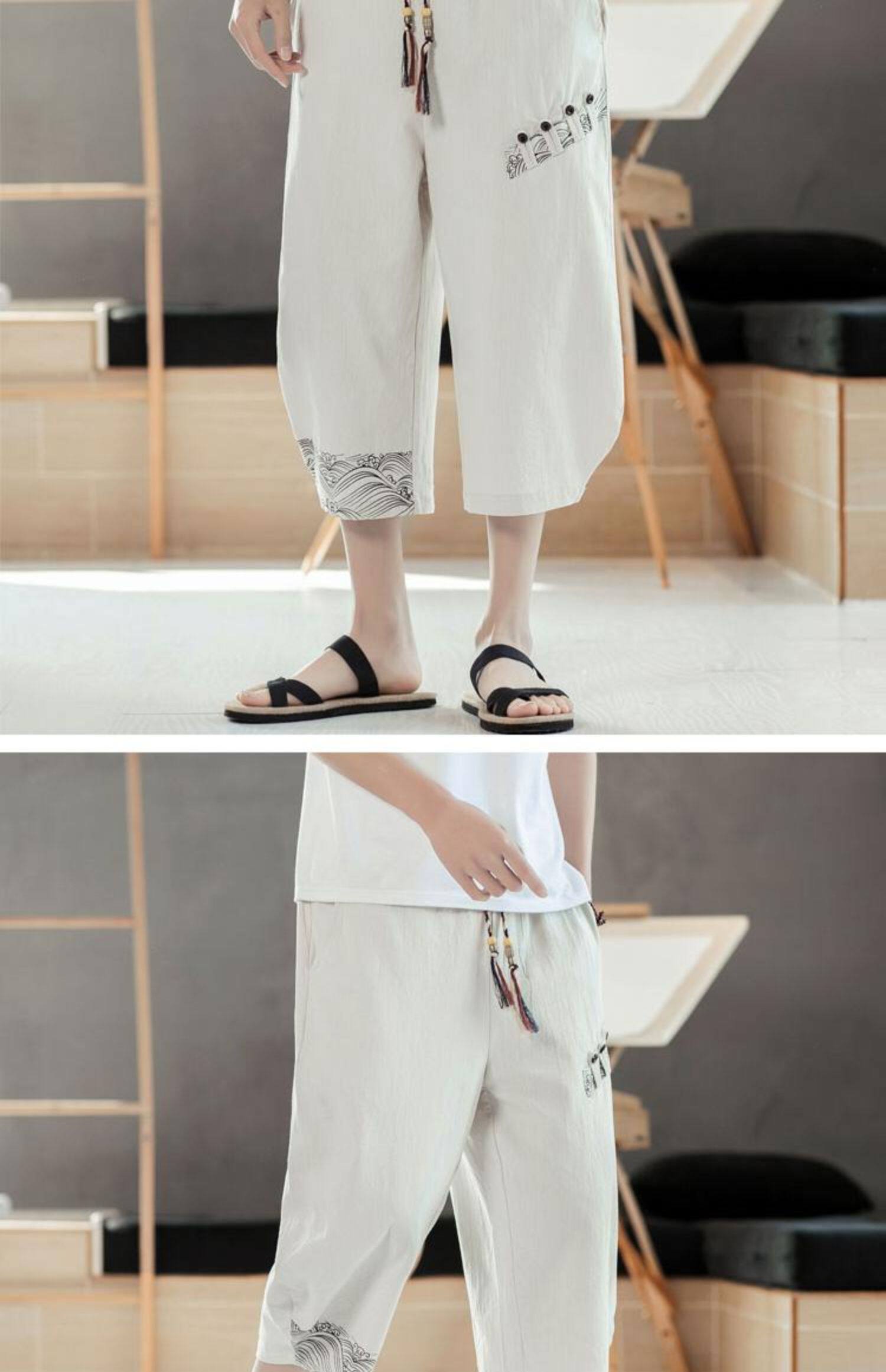 Мужские летние тонкие штаны, пляжные шорты, из хлопка и льна, китайский стиль
