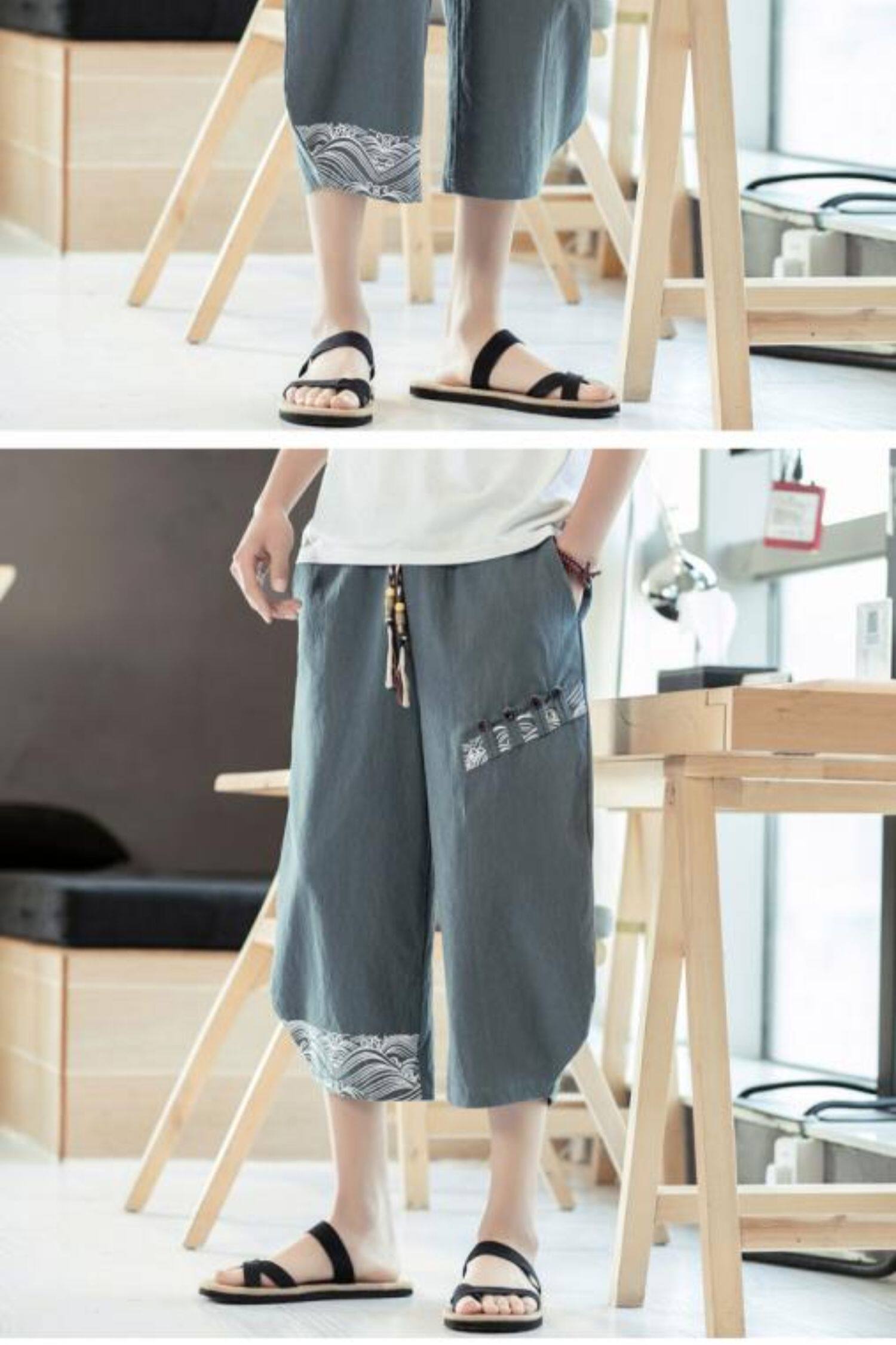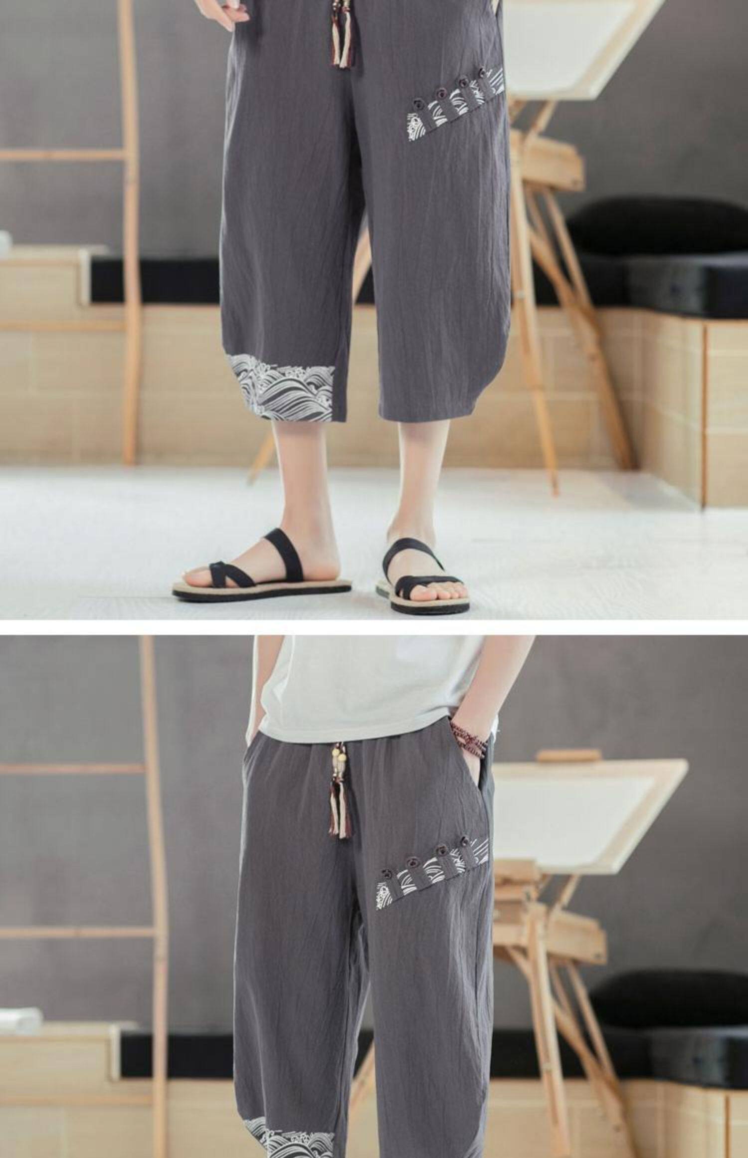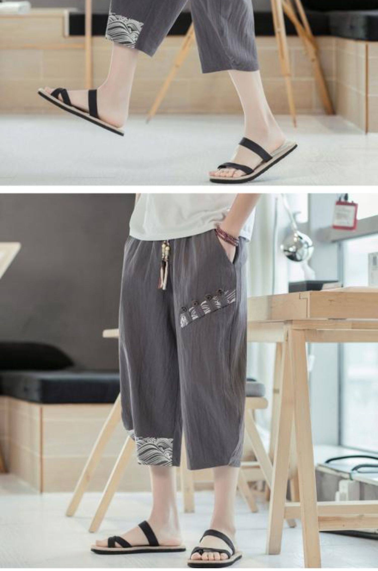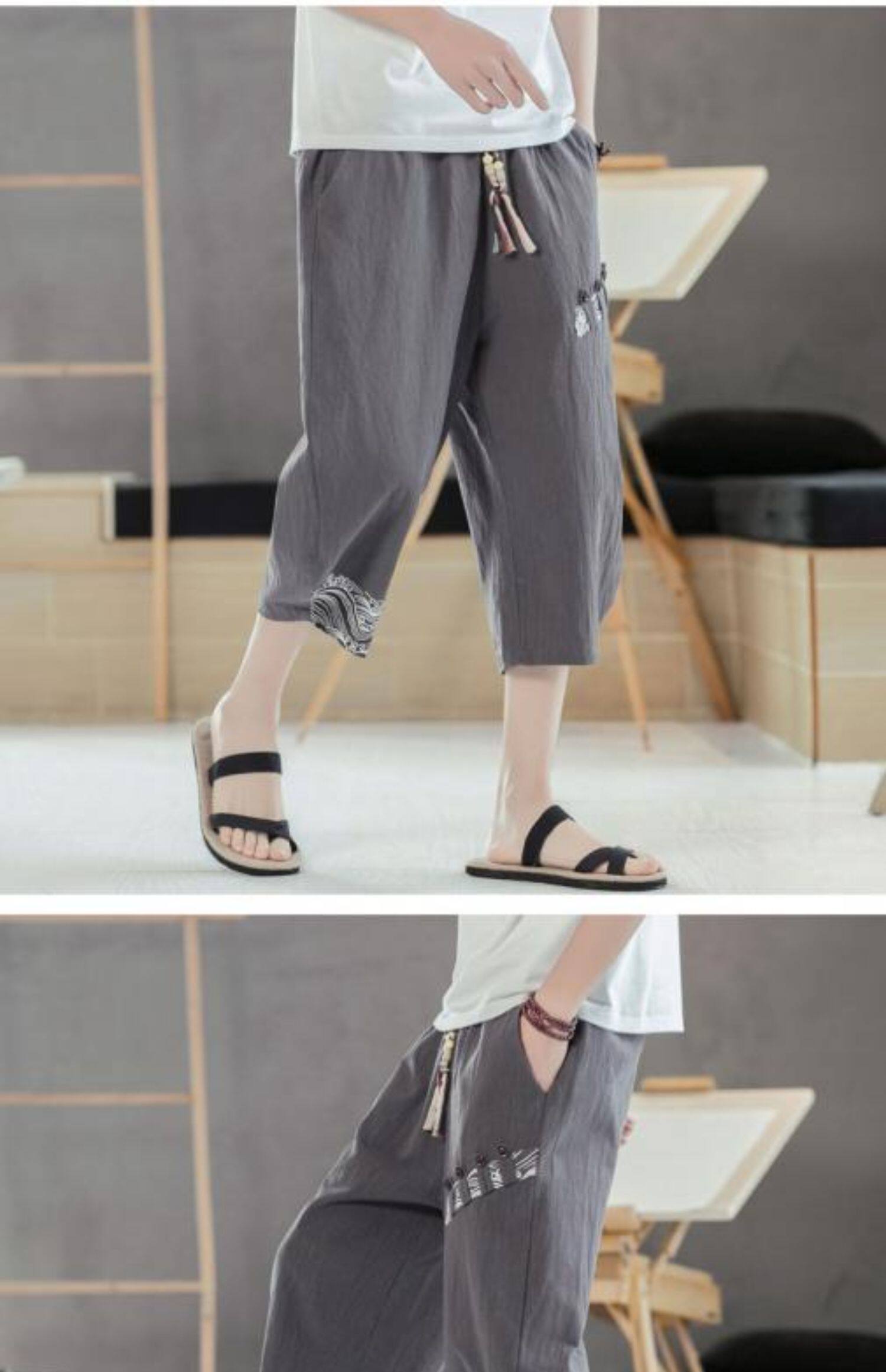 Мужские летние тонкие штаны, пляжные шорты, из хлопка и льна, китайский стиль