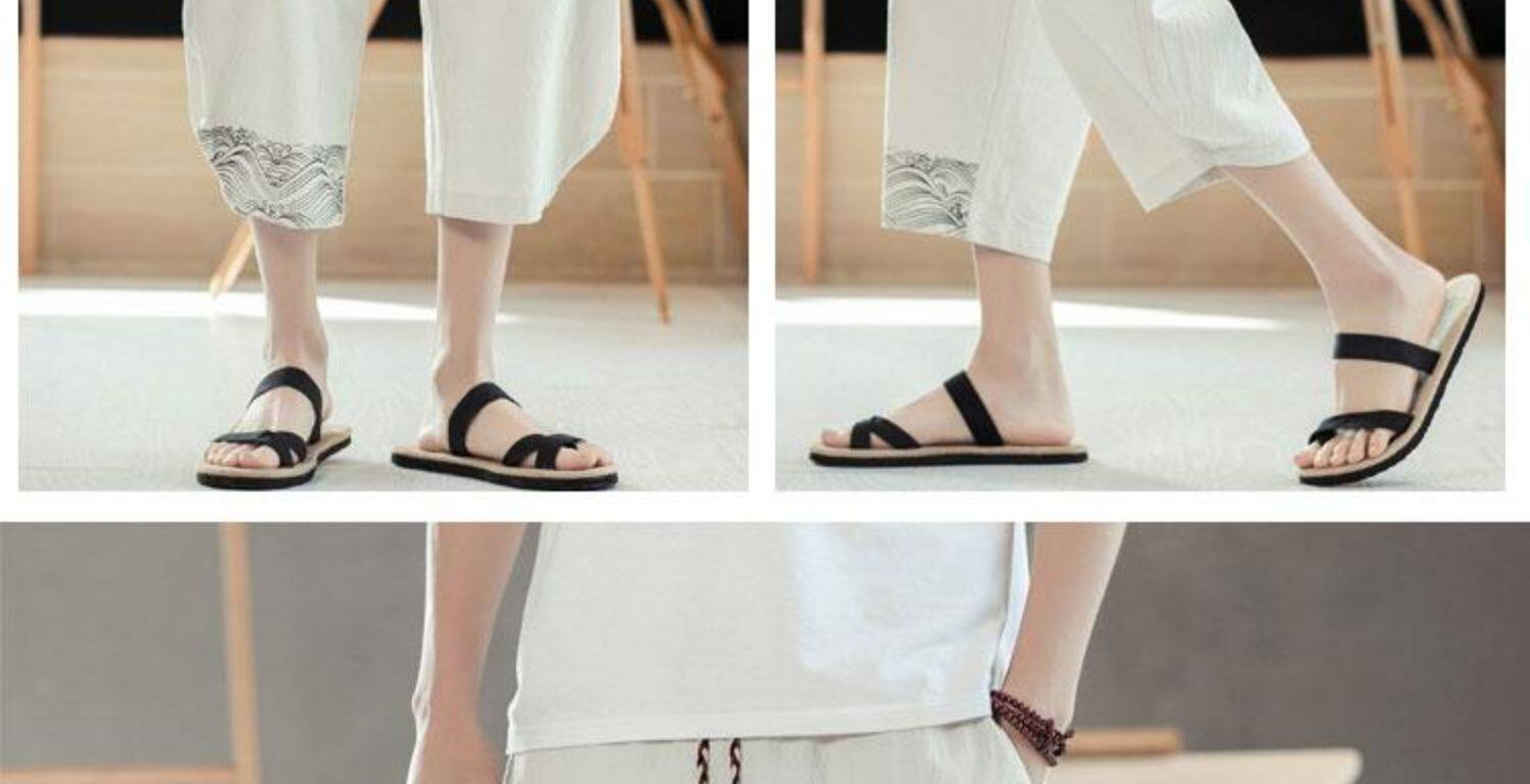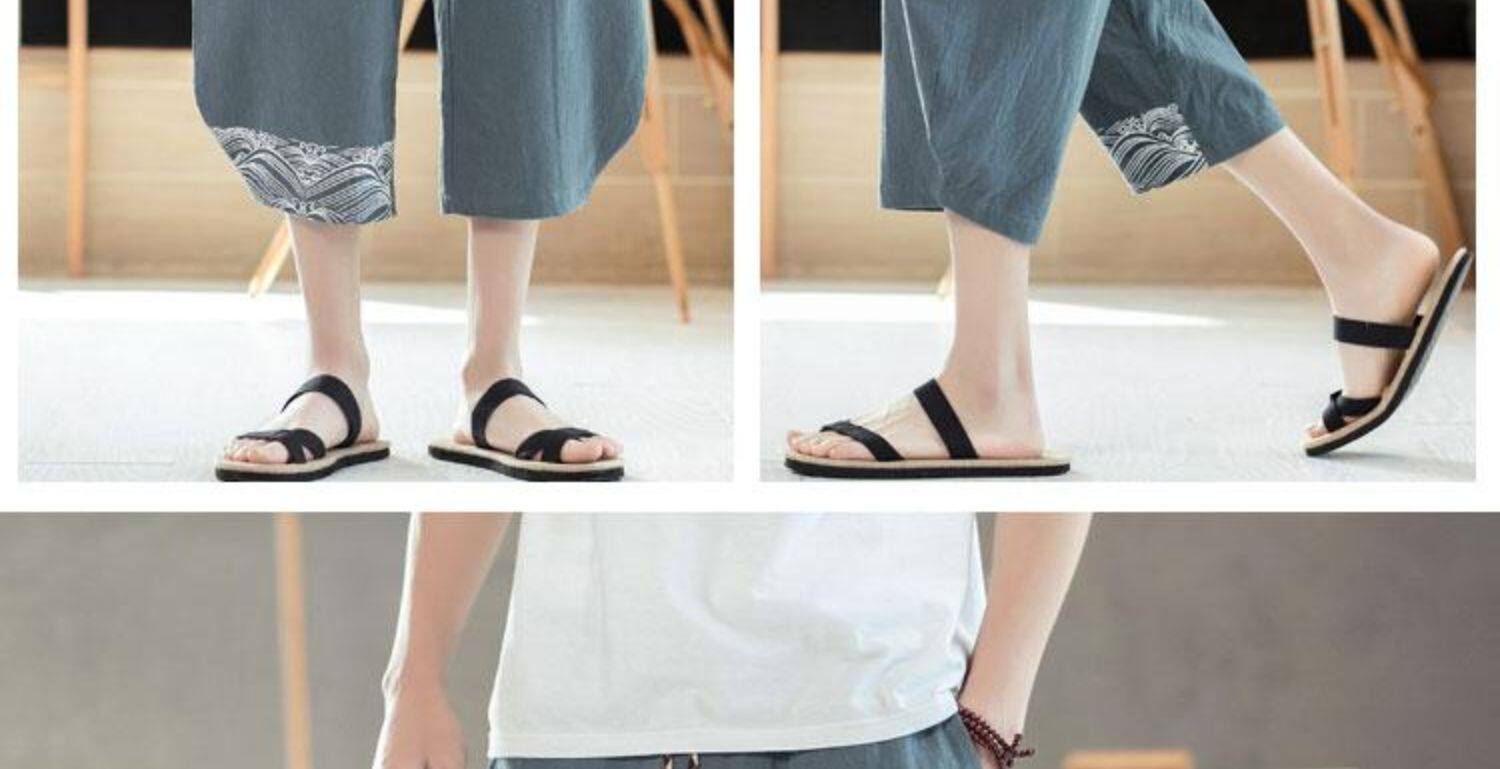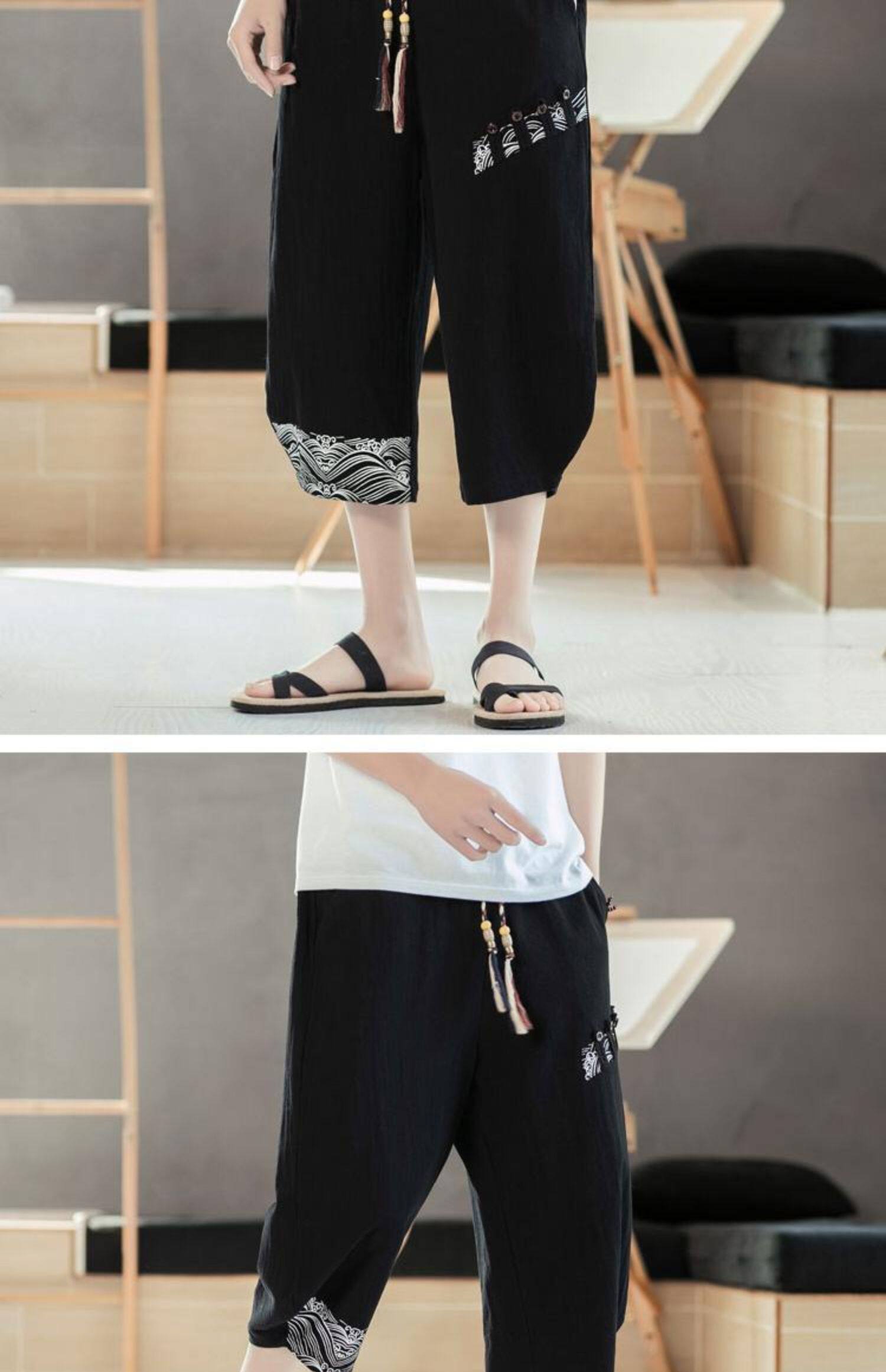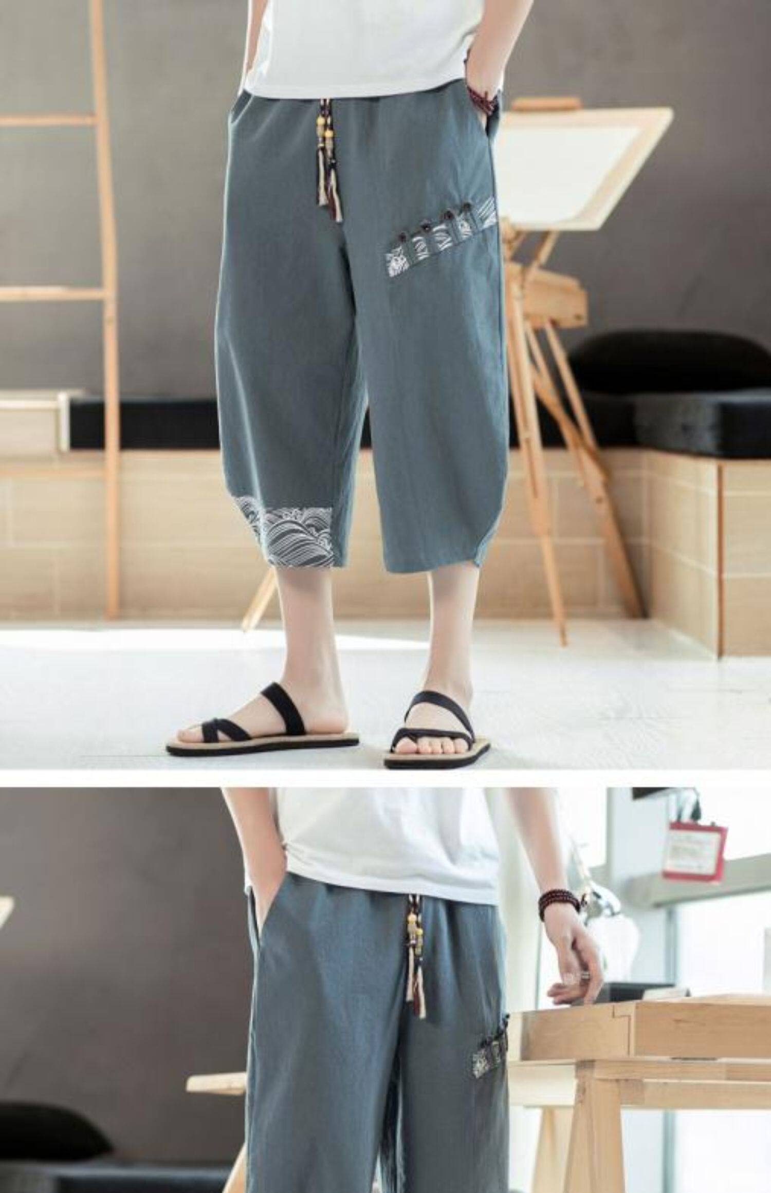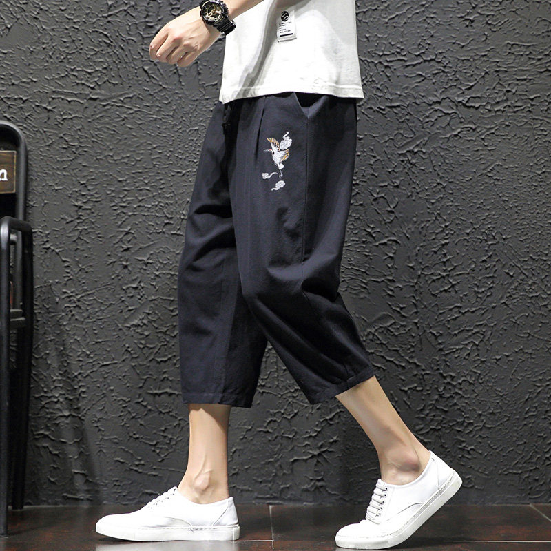 Мужские летние тонкие штаны, пляжные шорты, из хлопка и льна, китайский стиль