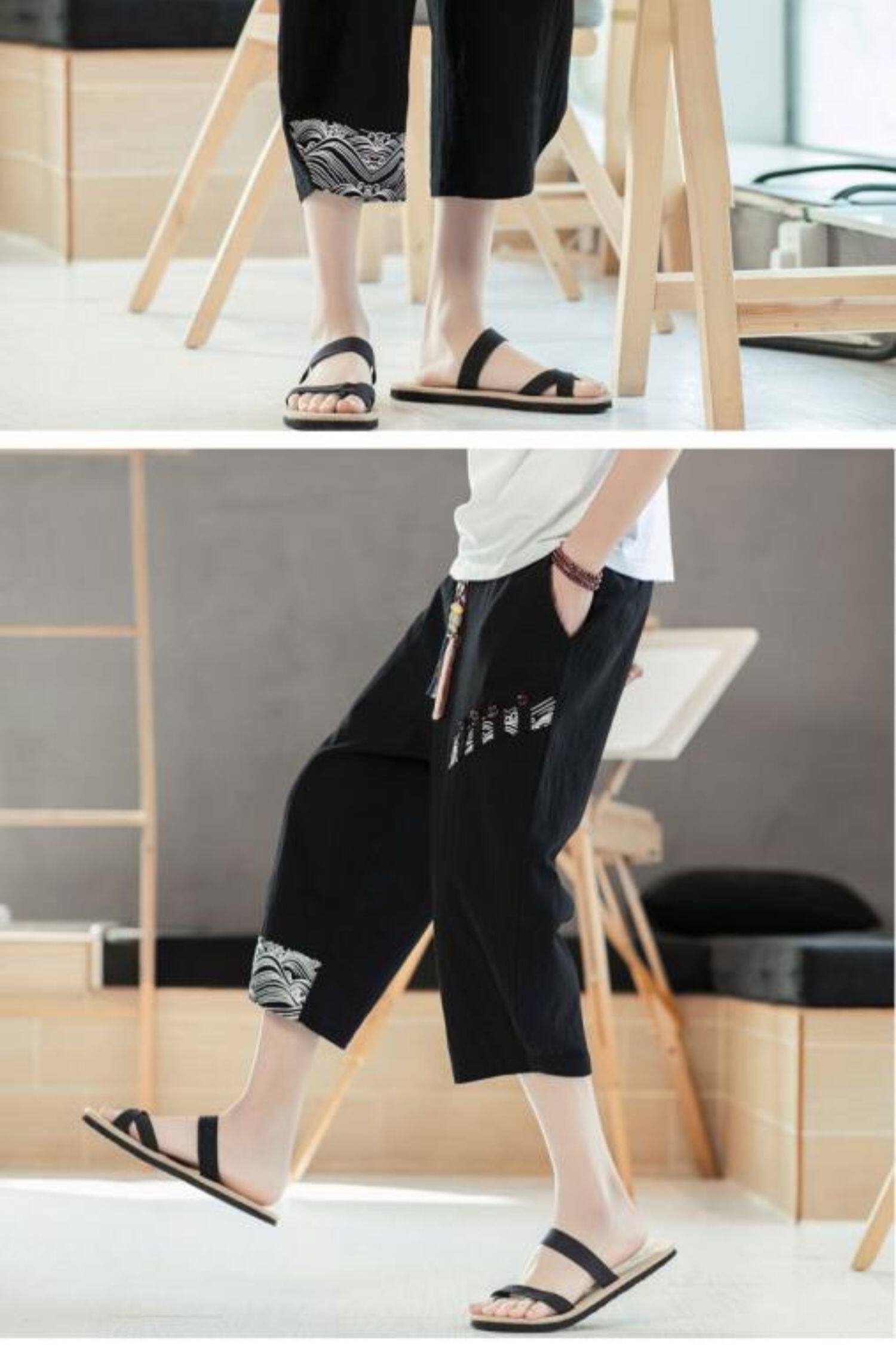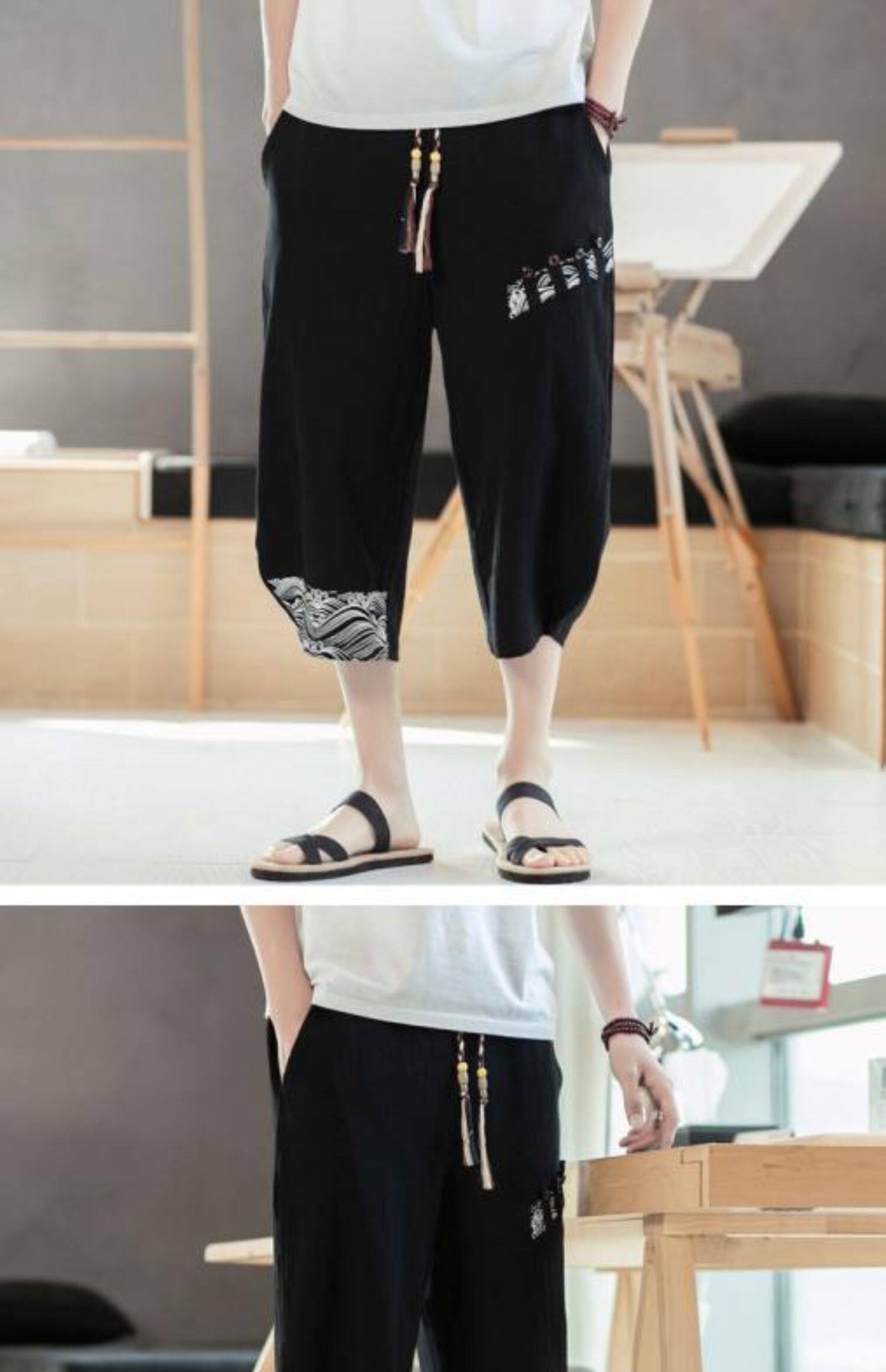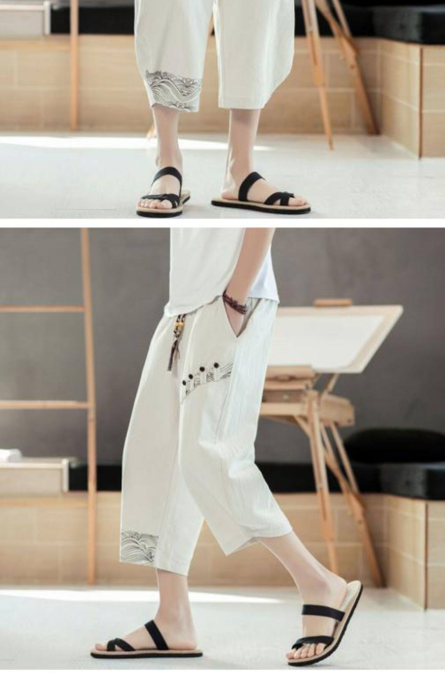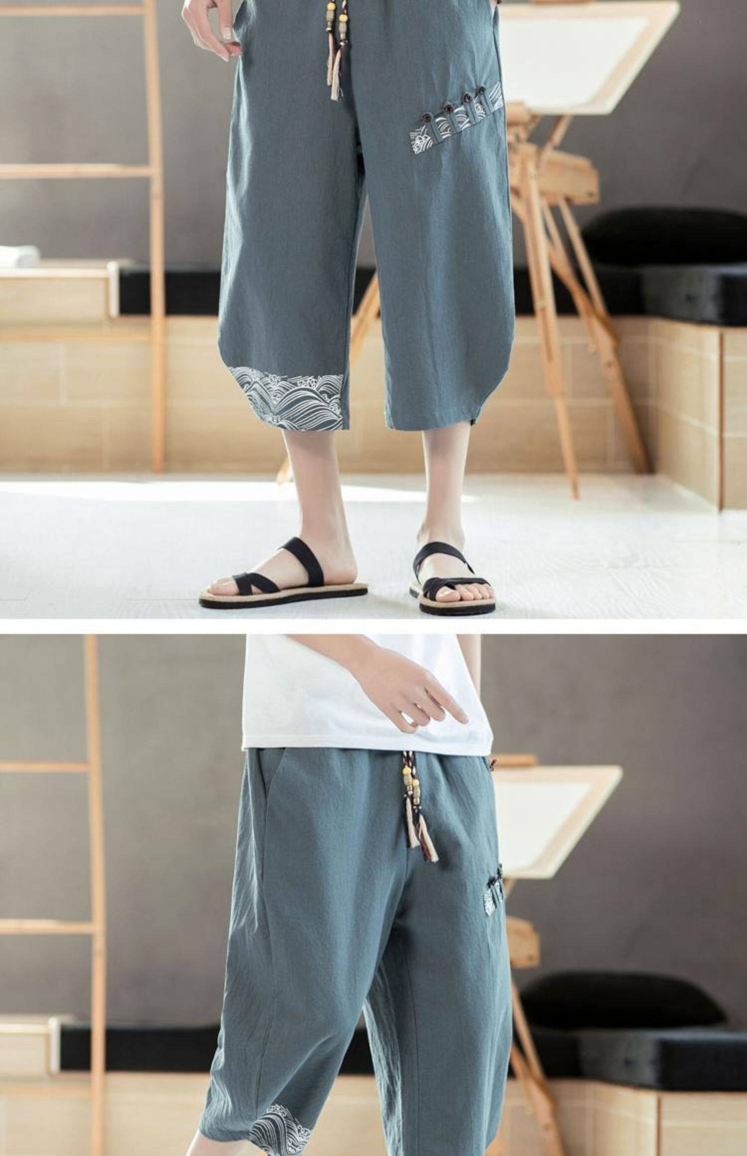 Мужские летние тонкие штаны, пляжные шорты, из хлопка и льна, китайский стиль