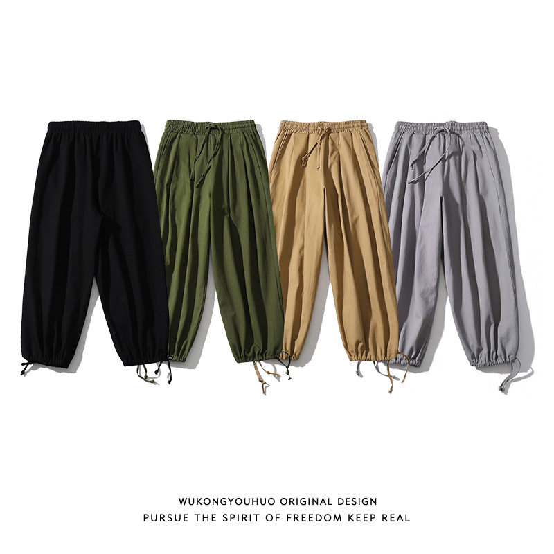 Японские цветные ретро штаны, свободный прямой крой, оверсайз, на шнурках