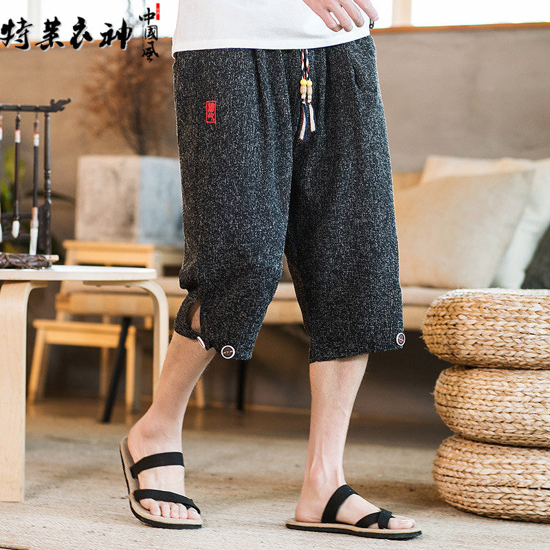 Летние мужские штаны, пляжные шорты, китайский стиль, оверсайз, из хлопка и льна