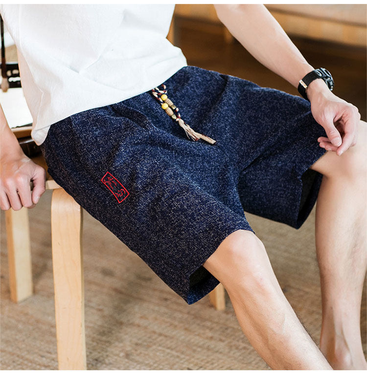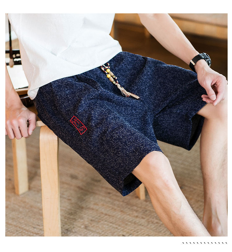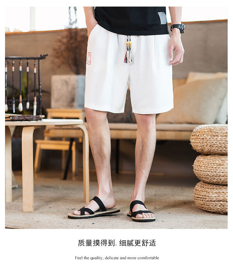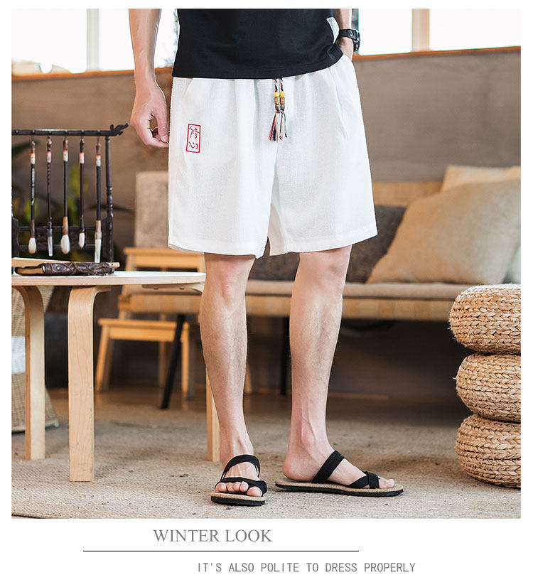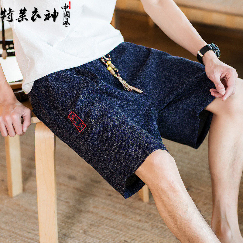 Летние шорты, тонкие ретро пляжные штаны, 2020, китайский стиль, большой размер, с вышивкой, из хлопка и льна