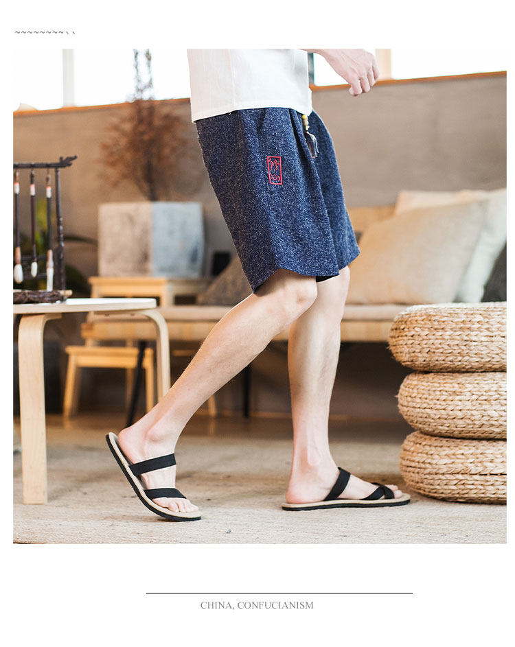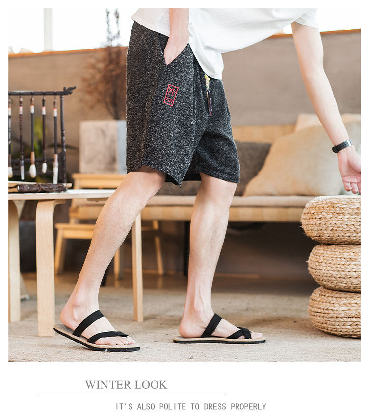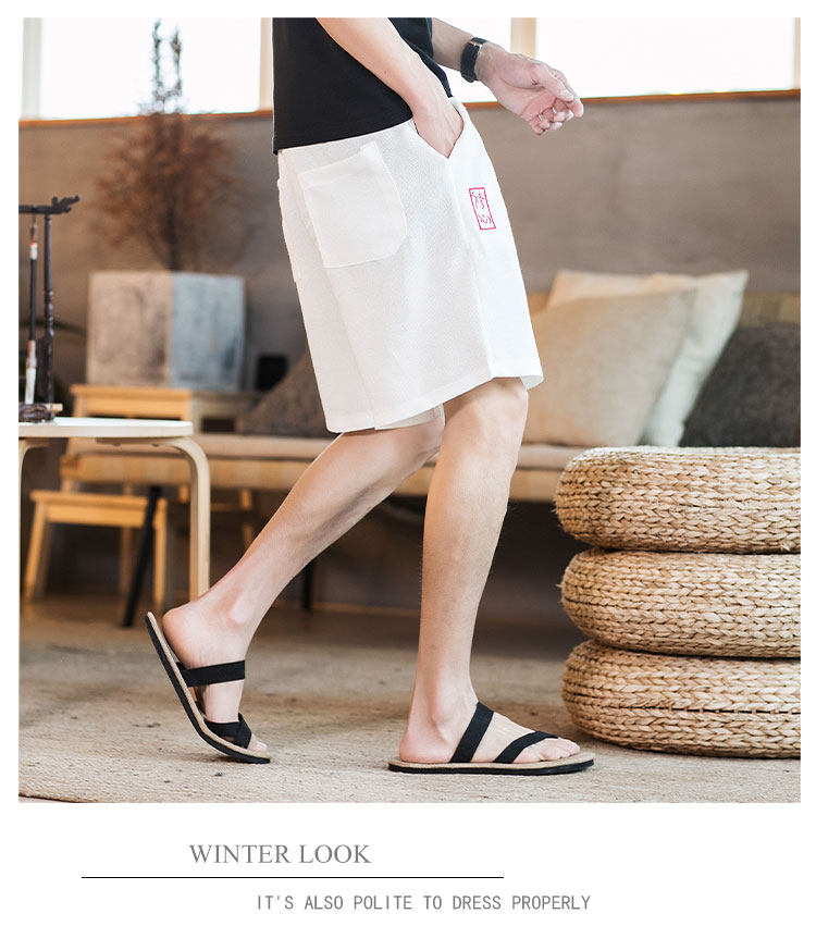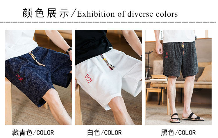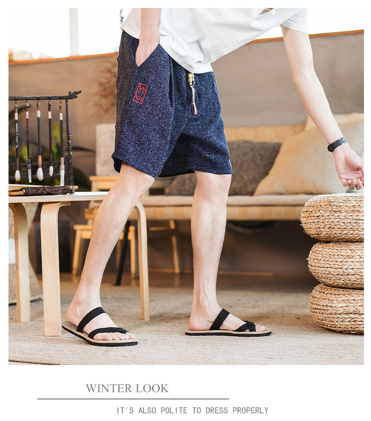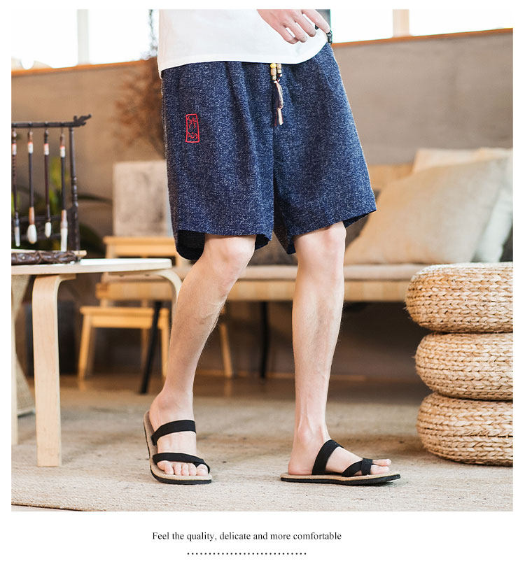 Летние шорты, тонкие ретро пляжные штаны, 2020, китайский стиль, большой размер, с вышивкой, из хлопка и льна