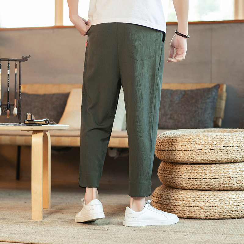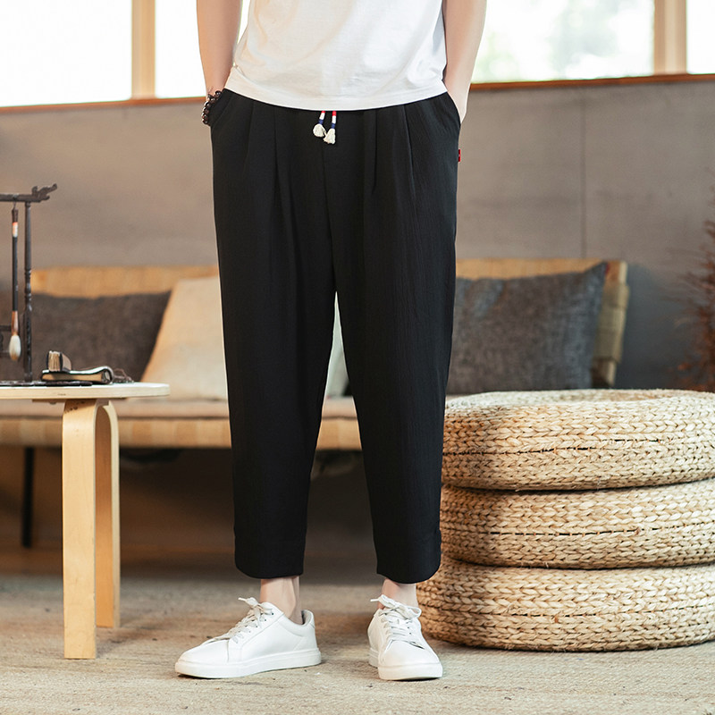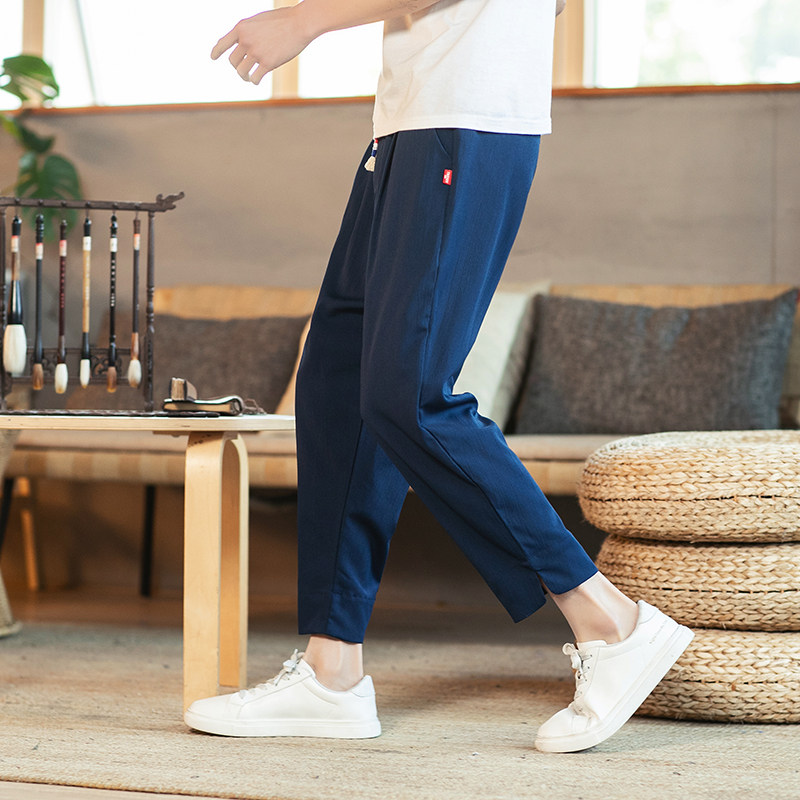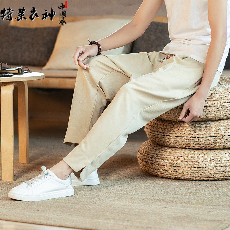 Тонкие штаны, из хлопка и льна, большой размер, китайский стиль, свободный прямой крой, на шнурках