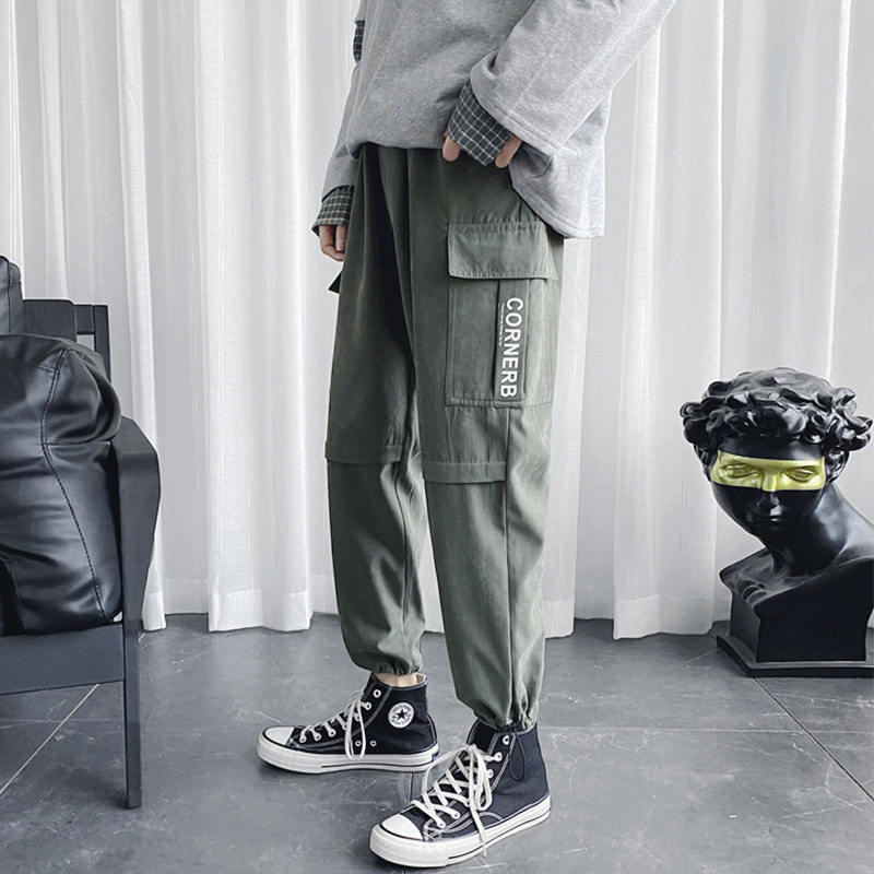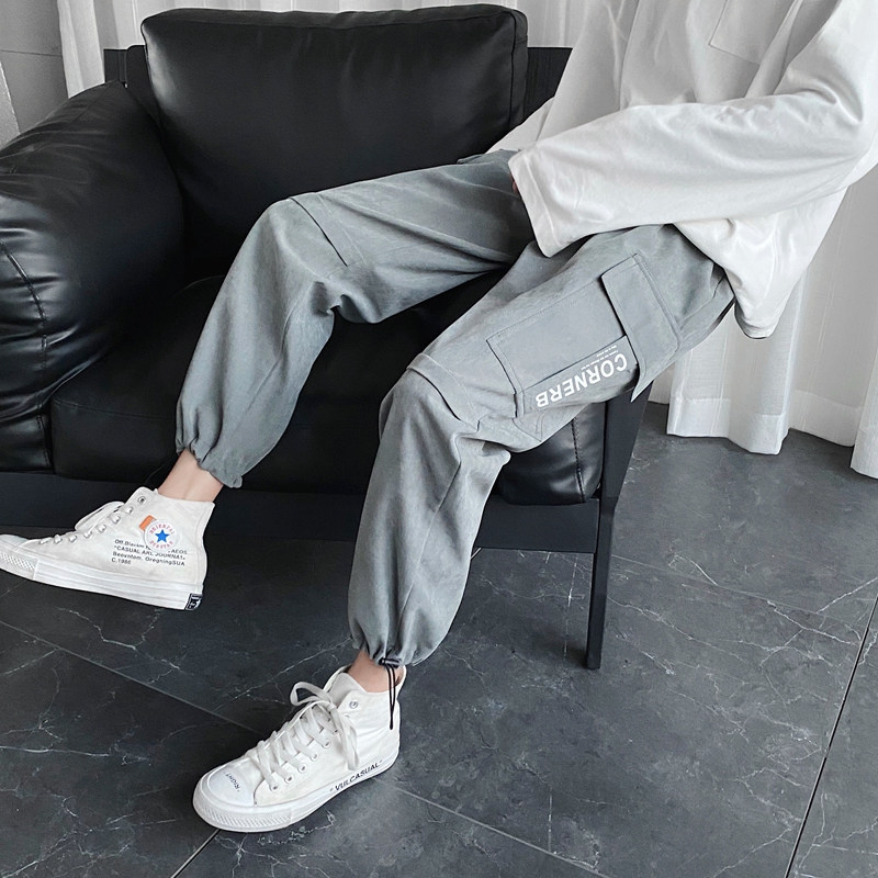 Демисезонные трендовые штаны для школьников, на шнурках, коллекция 2021, в корейском стиле, свободный прямой крой