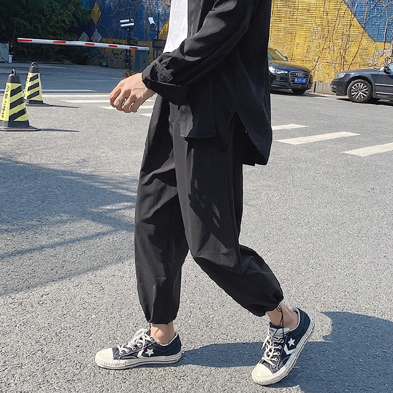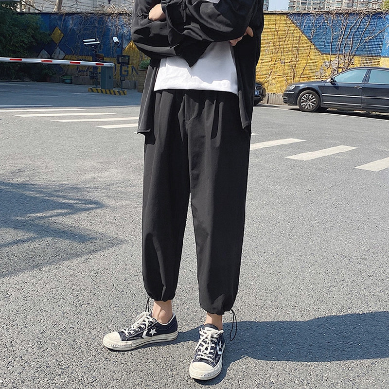 Трендовые тонкие штаны для отдыха, осенние, оверсайз, на шнурках, свободный прямой крой