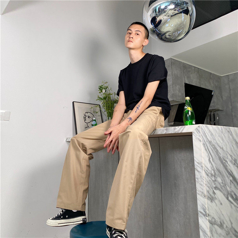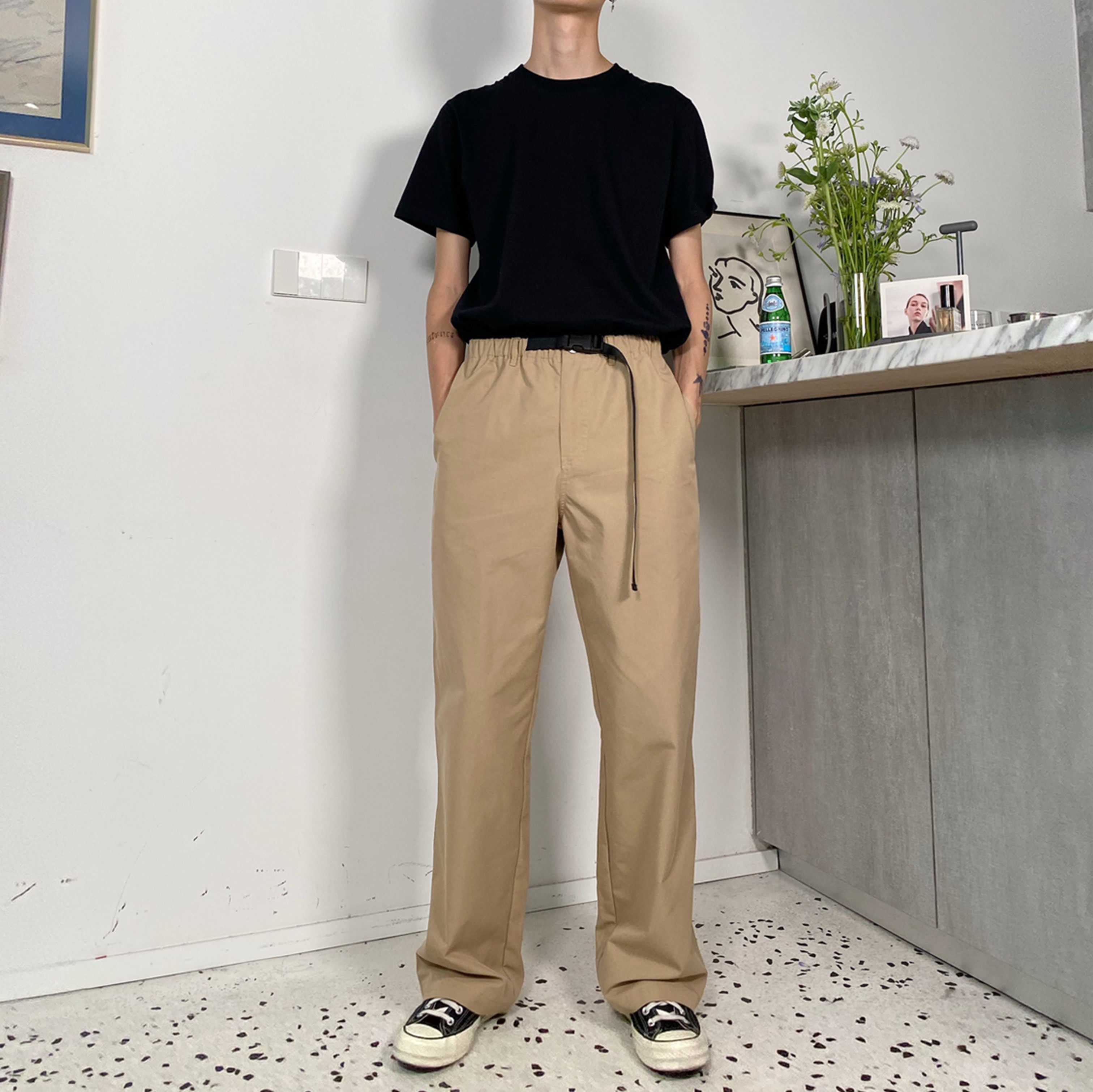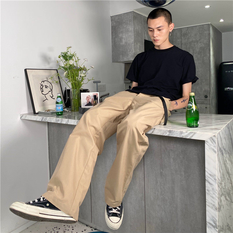 Длинные штаны, японский ремень, свободный прямой крой