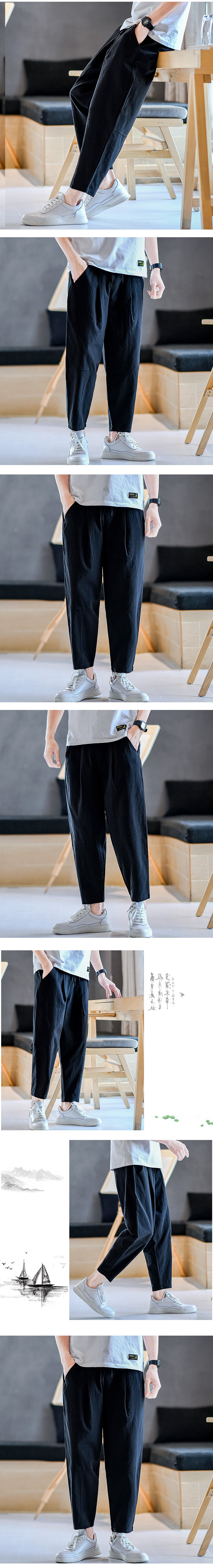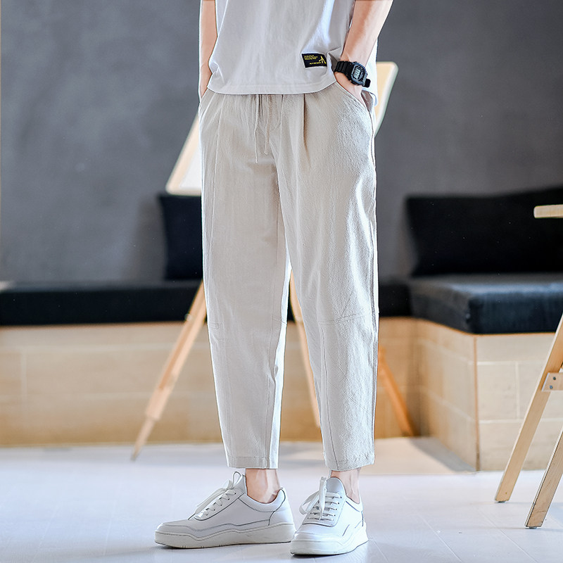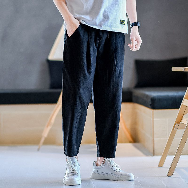 Летние тонкие мужские универсальные штаны для мальчиков, китайский стиль, большой размер, из хлопка и льна