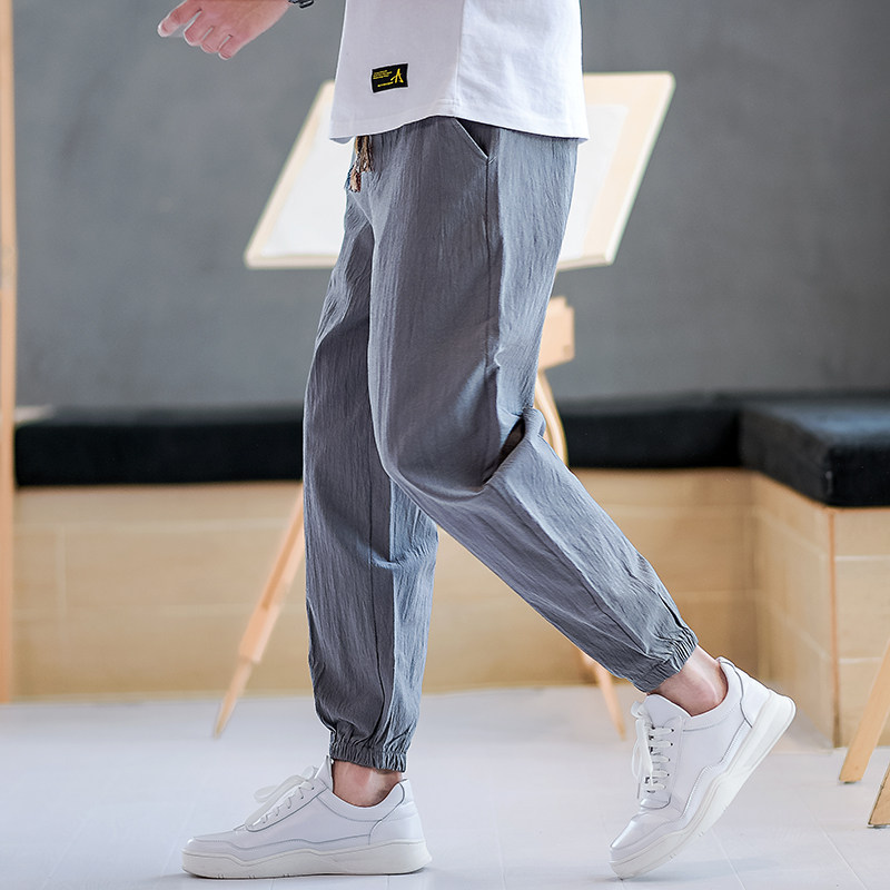 Летние тонкие однотонные штаны для мальчиков, китайский стиль, свободный крой, большой размер, из хлопка и льна
